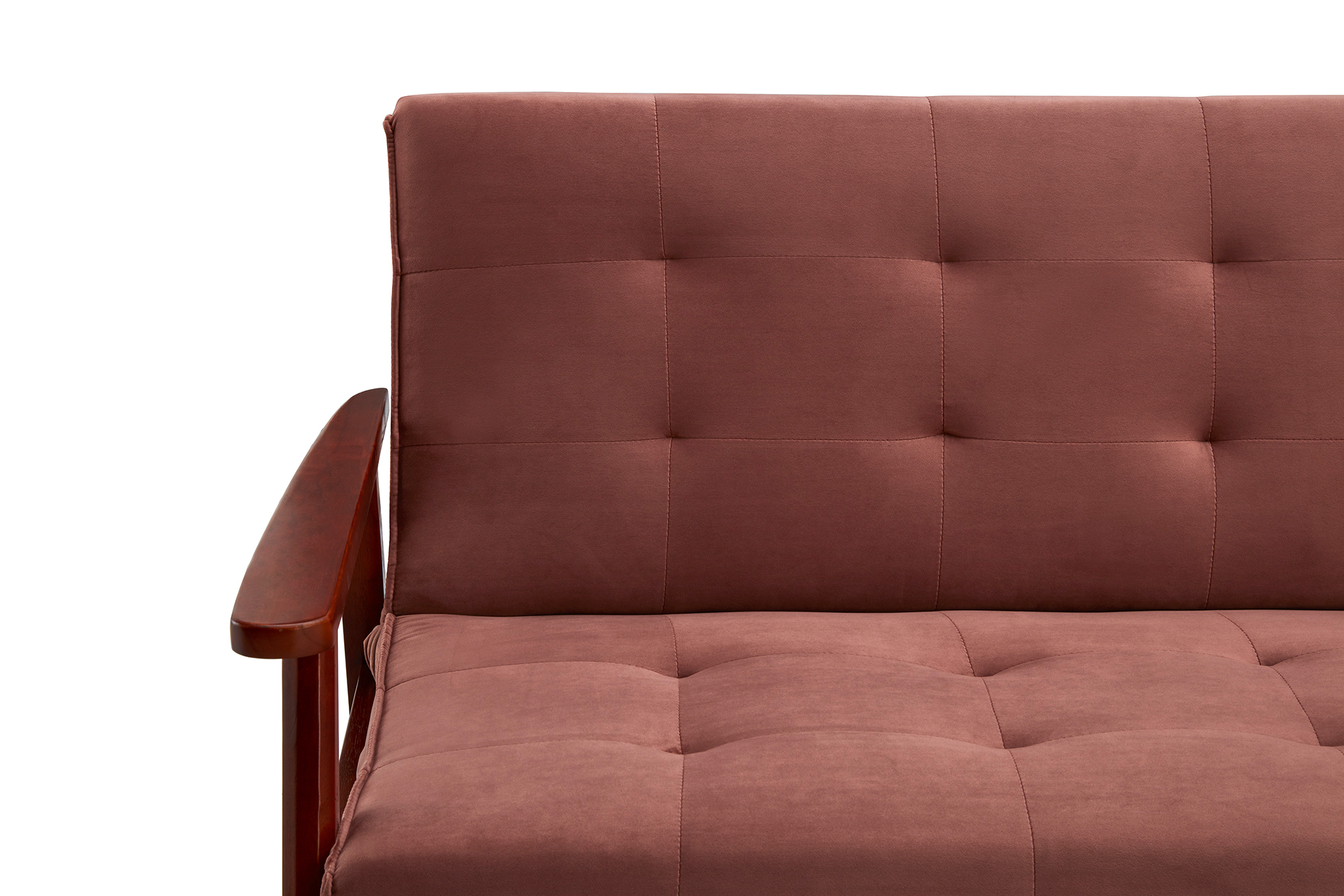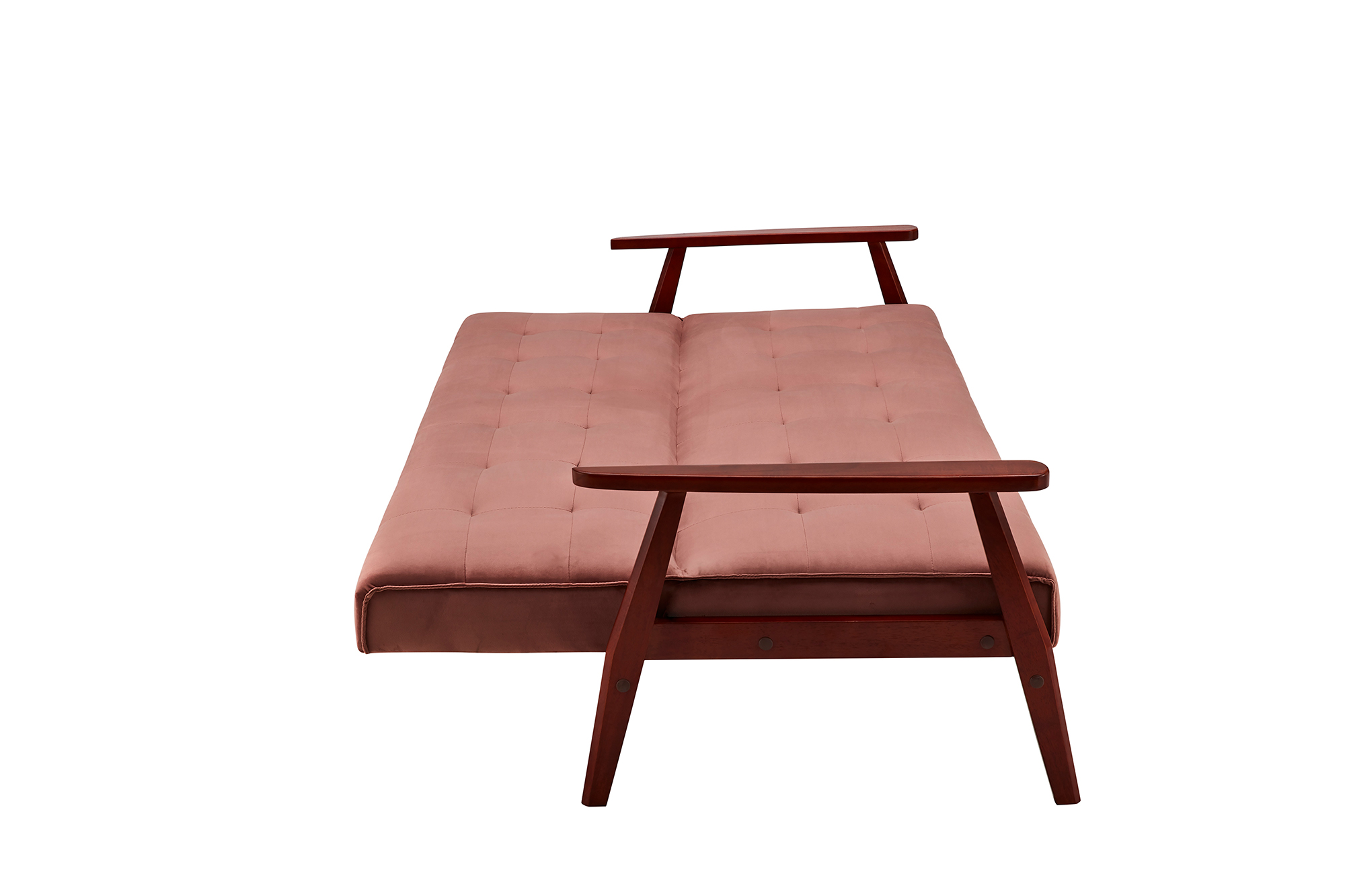 Le canapé convertible à accoudoirs de style scandinave arbore un revêtement élégant aspect velours et une structure robuste en bois massif d’eucalyptus. Ce modèle séduit particulièrement par ses 3 fonctions différentes permettant de s’asseoir, se relaxer et s’allonger. La fonction de rabattement du dossier à 60° permet de placer le canapé en position relax, tandis que la fonction à 180° permet d’utiliser la position allongée. Deux supports au niveau du dossier assurent une bonne stabilité lorsque le canapé est entièrement déplié. La structure en bois massif d’eucalyptus ton merisier garantit non seulement une bonne stabilité, mais offre également un superbe contraste avec le tissu velours. Grâce aux fonctions assise, relax et couchage, ainsi qu'aux accoudoirs, vous bénéficierez d’un niveau de détente optimal. Ce petit bijou en matière de design sera non seulement un élément phare dans votre intérieur, mais également votre nouvel espace de bien-être.