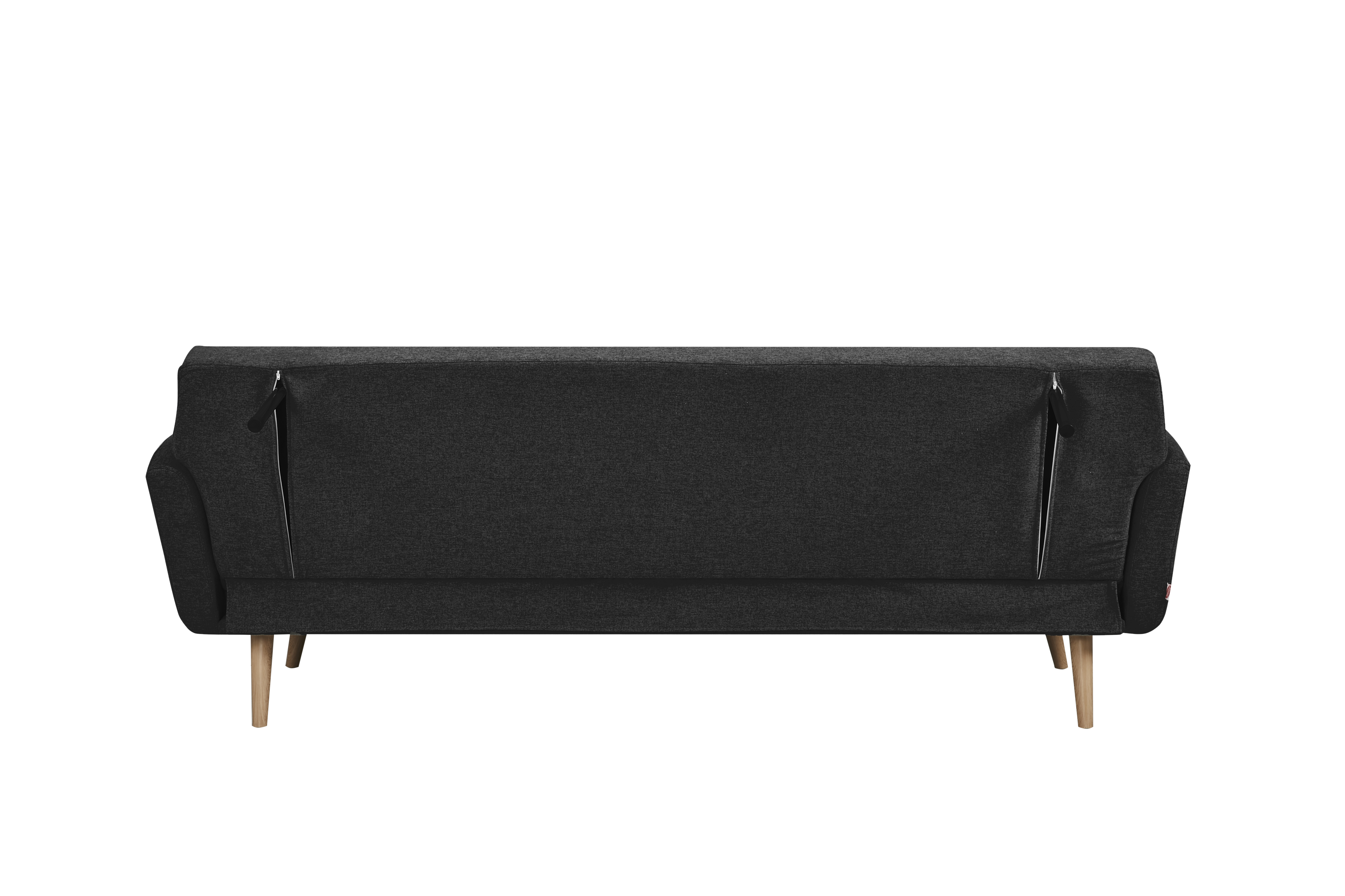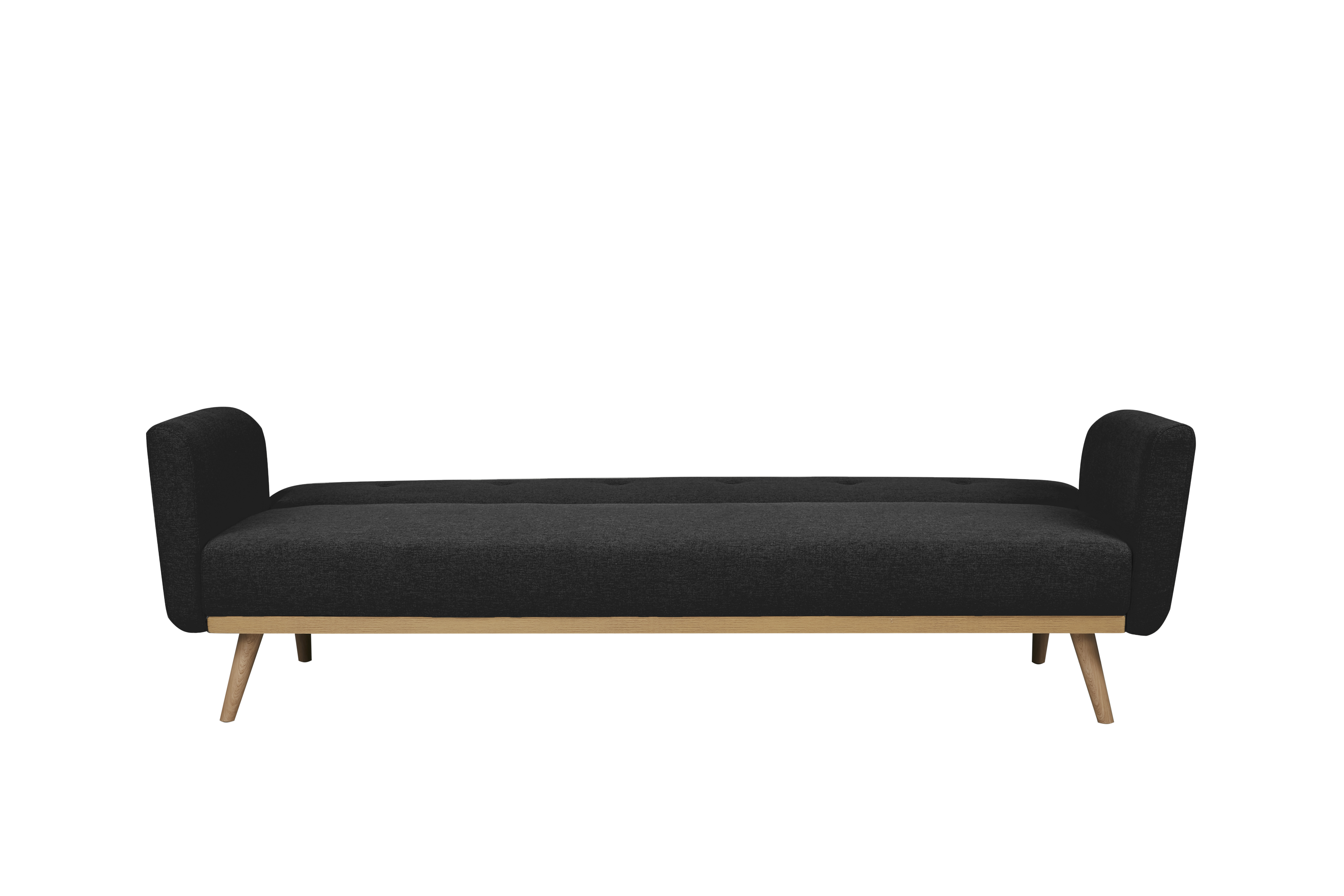 Le canapé-lit 3 places se présente dans un tissu chiné fin et stylé ton noir avec des pieds stables en bois massif. Grâce au dossier rabattable, le canapé peut être rapidement transformé en lit. La structure en bois massif garantit une bonne stabilité tout en offrant un superbe contraste avec le revêtement en tissu. La housse revêt entièrement le canapé et le dos est habillé. Grâce au rembourrage de ce canapé convertible, vous bénéficiez d'un confort d'assise ou de couchage haut de gamme. Les boutons décoratifs au niveau du dossier sont un véritable point fort. Ce petit bijou en matière de design deviendra vite un élément phare de votre intérieur ainsi que votre nouvel espace de détente.