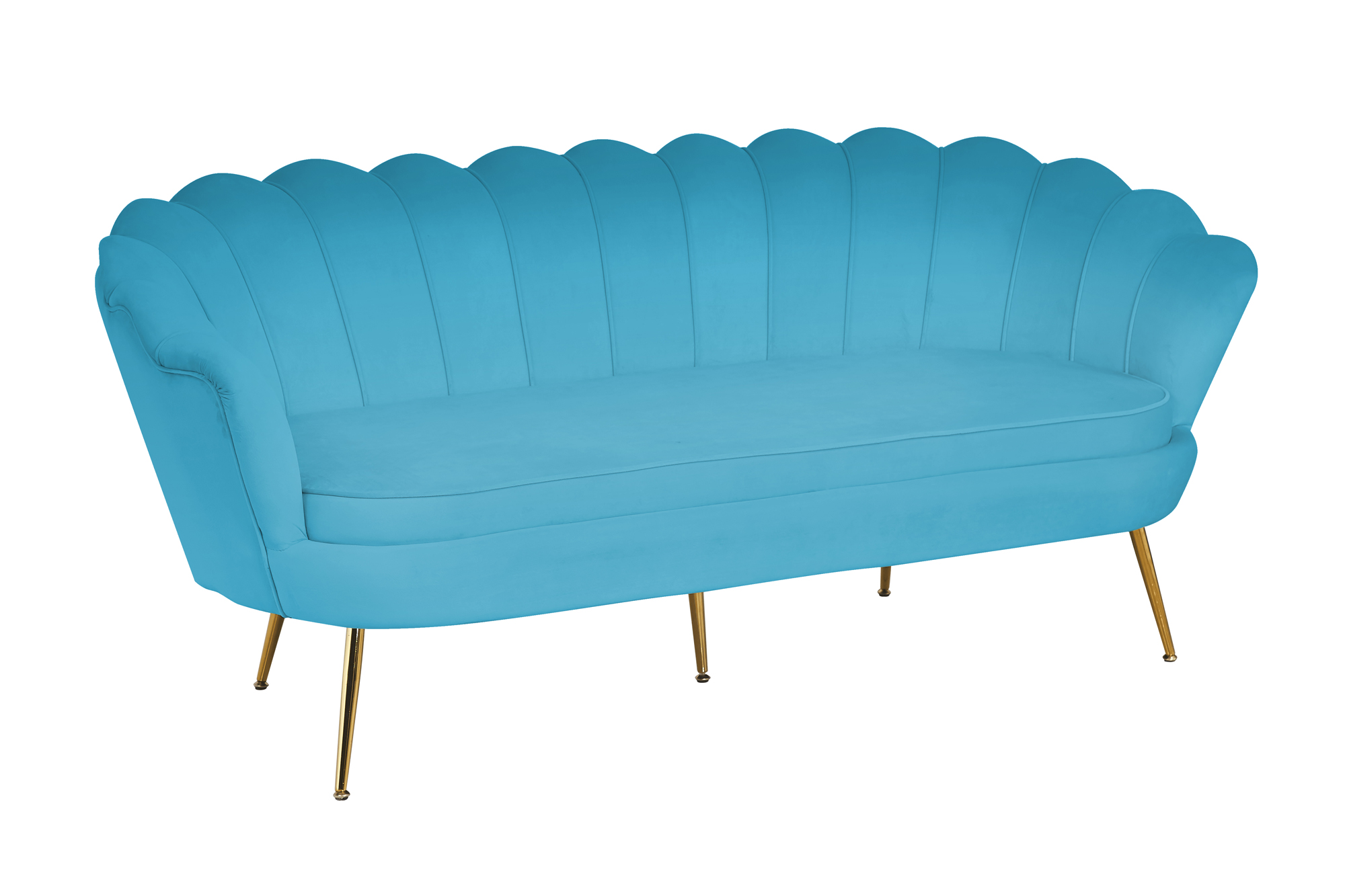 Échappez au quotidien et profitez d'une petite pause. Ce canapé 3 places moderne au design coquillage est revêtu d’un tissu élégant aspect velours et séduit par son assise et son dossier arrondis. Le piètement à 4 pieds en métal ton doré garantit une excellente stabilité tout en offrant un superbe contraste avec le revêtement du canapé. Grâce au rembourrage de l’assise et du dossier, au coussin d’assise surélevé et à la forme stylée, vous bénéficierez d’un niveau de détente optimal. Sa forme arrondie lui donne un look tout en douceur. Ce canapé coquillage est un véritable petit bijou qui sera à la fois un élément phare dans votre intérieur et votre nouvel espace bien-être.