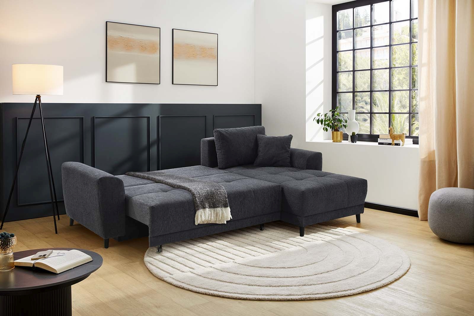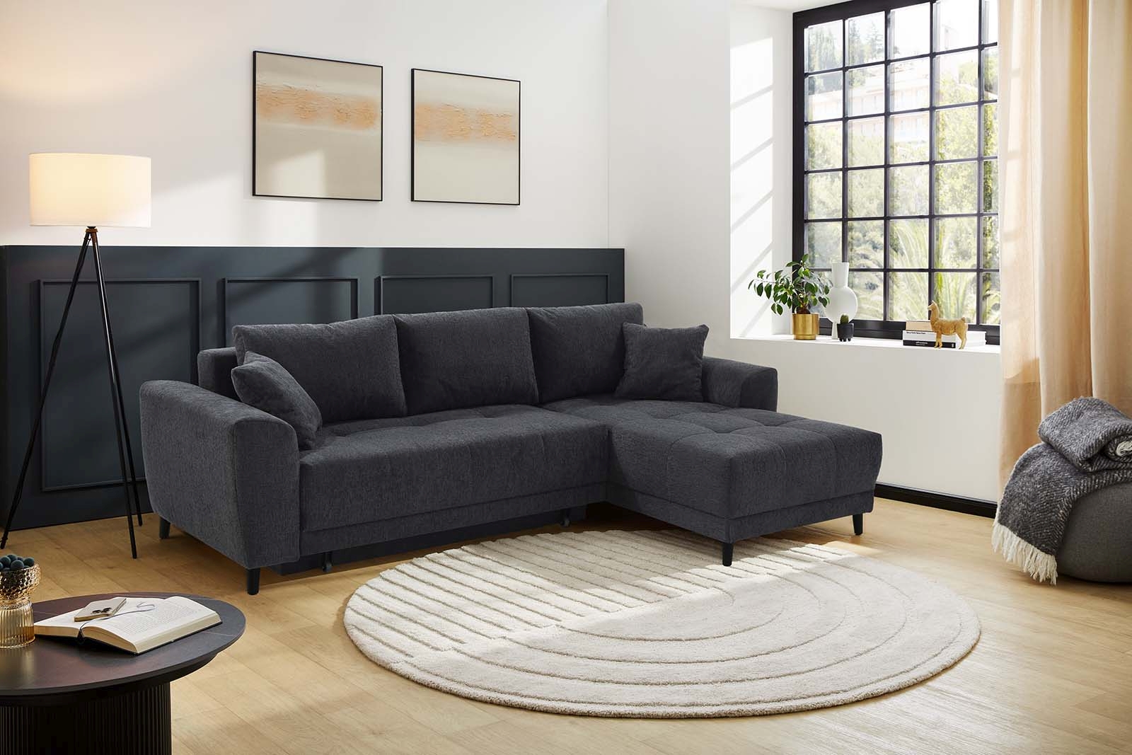 | Equipement canapés: | Dos habillé, Méridienne à droite ou à gauche, incl. coffre de lit, incl. coussins | ||