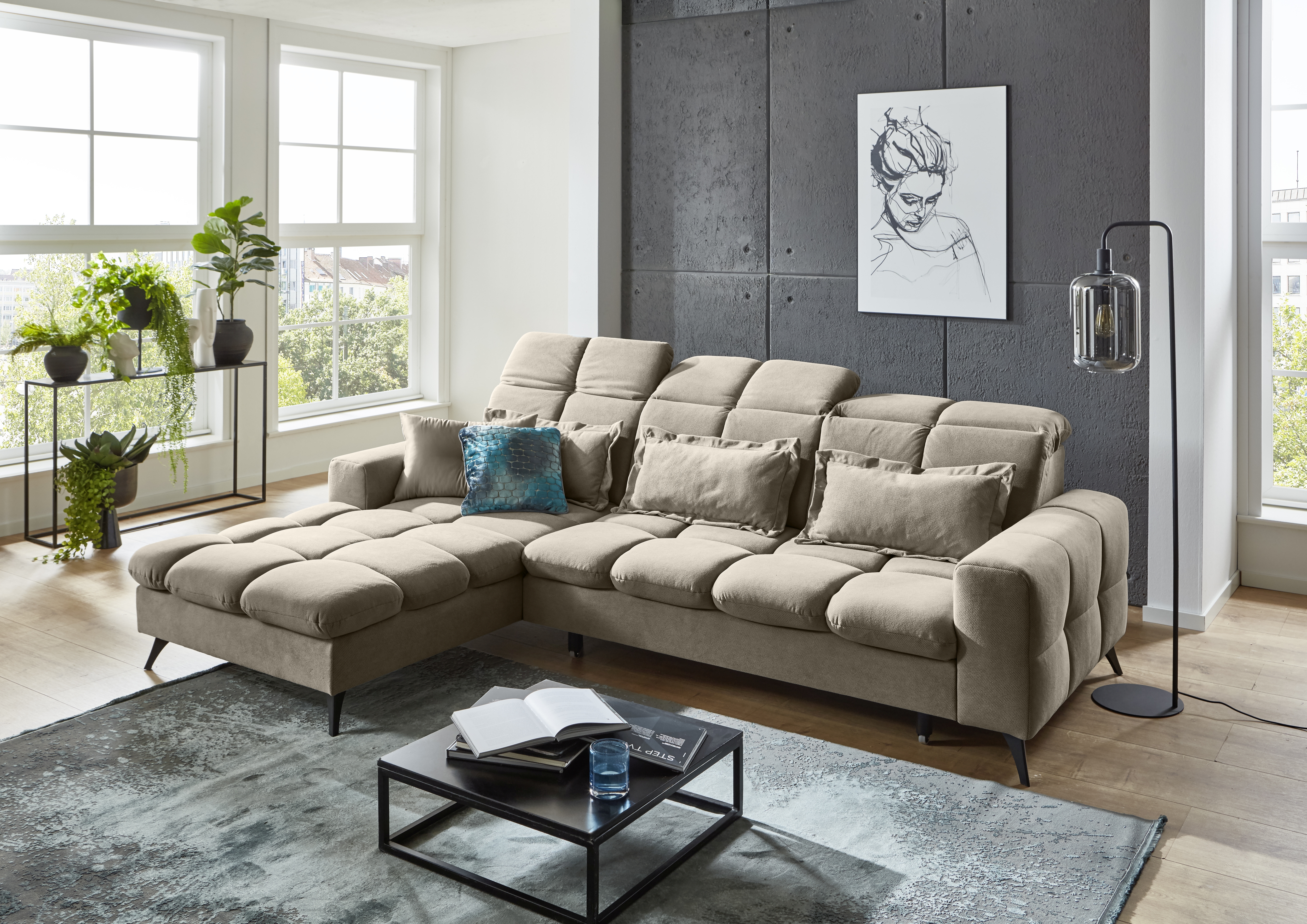 | Equipement canapés: | Appuie-tête(s), Dos habillé, Méridienne à gauche, Prolongement de l'assise manuellement, incl. coussins | ||
