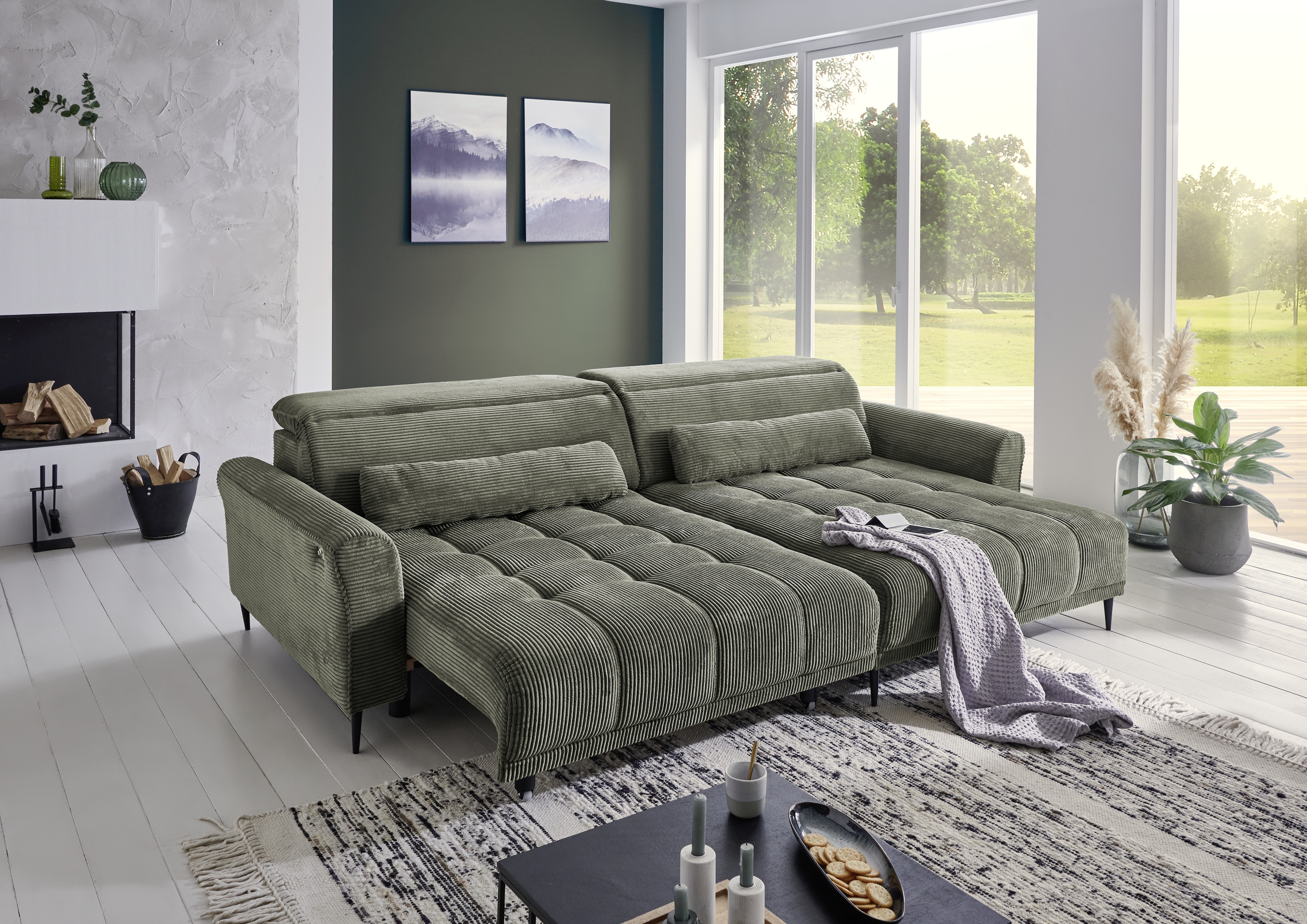| Equipement canapés: | Appuie-tête(s), Méridienne à droite, Prolongement de l'assise motorisé, incl. coussins | ||