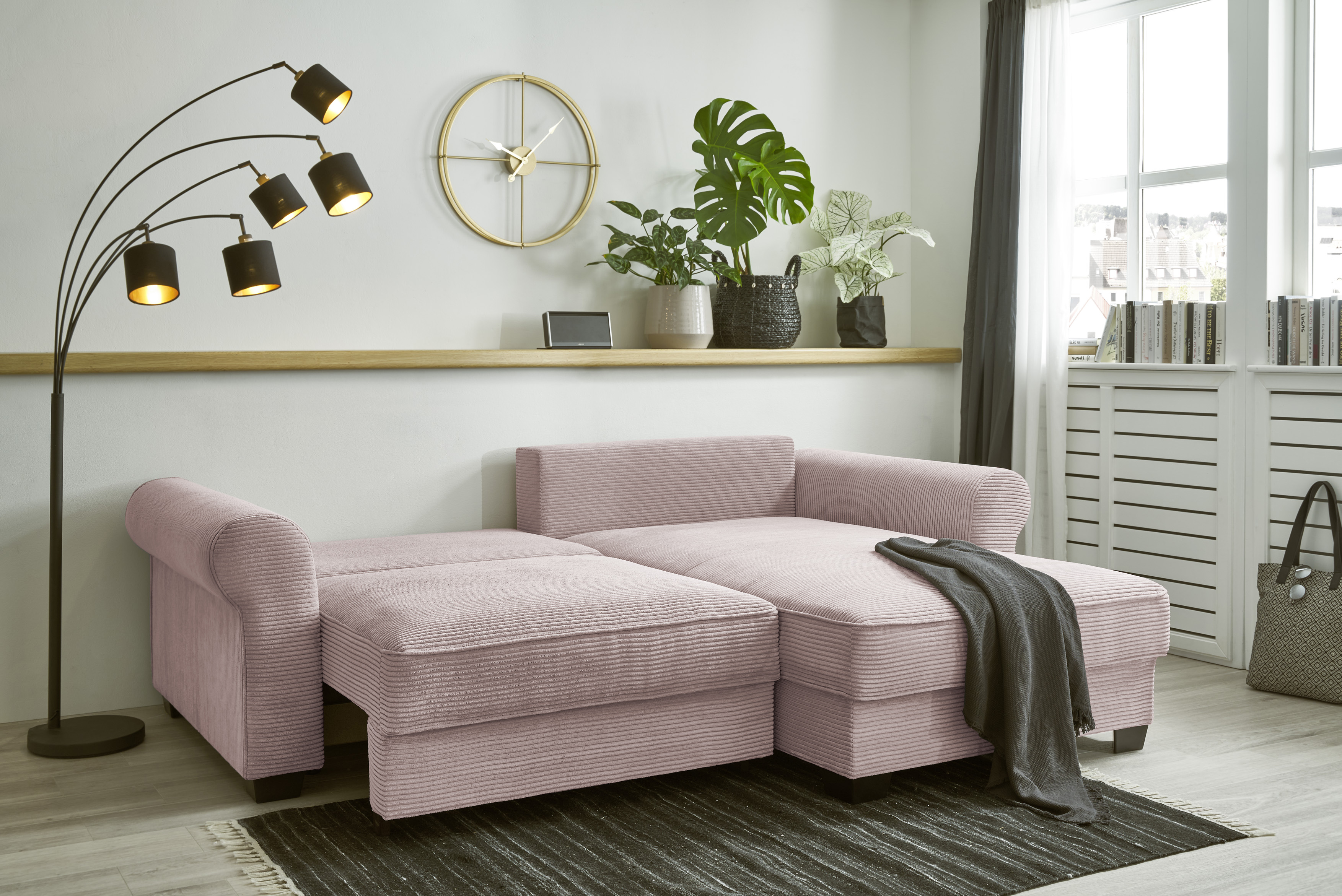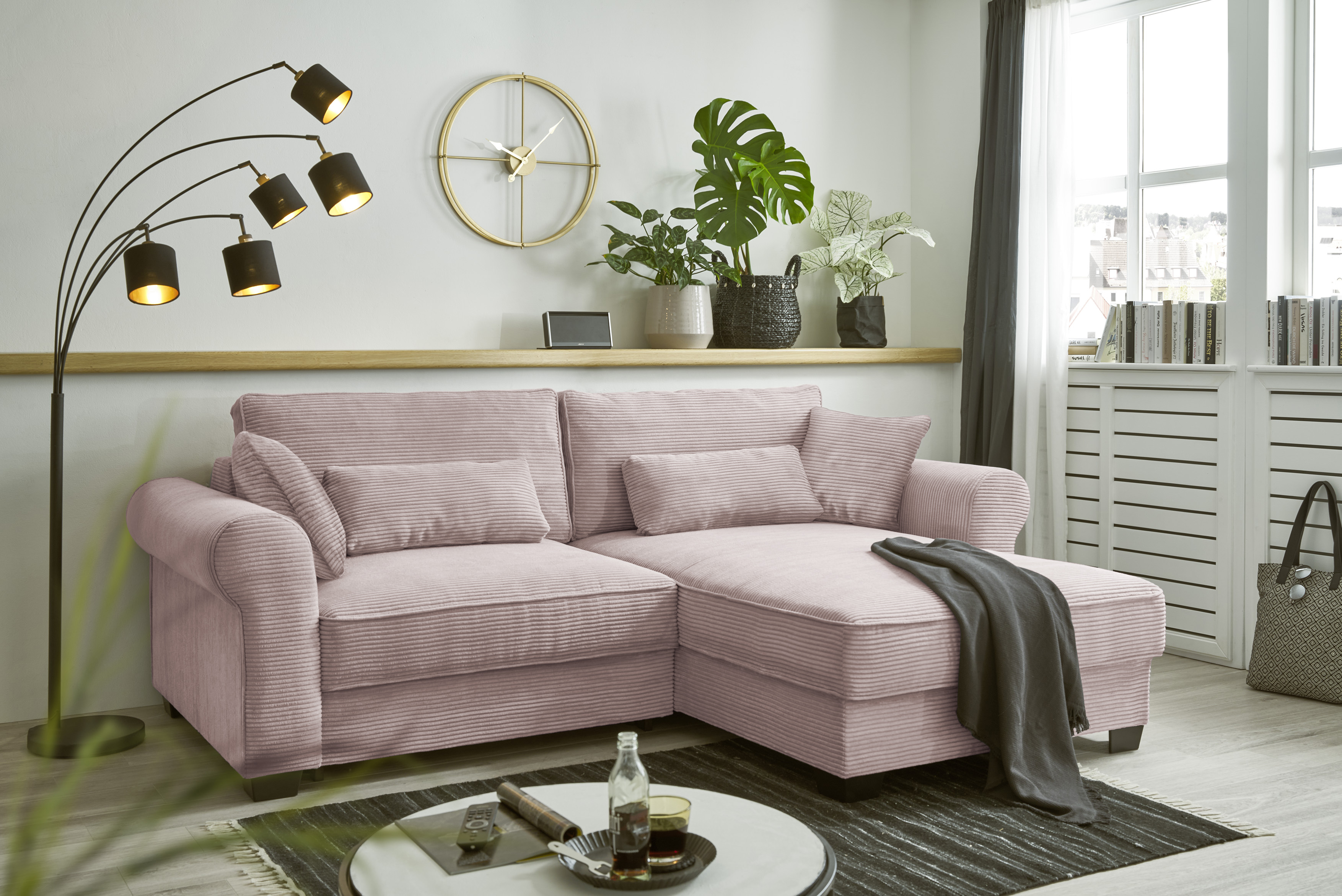 | Equipement canapés: | Dos habillé, Méridienne à droite ou à gauche, incl. coffre de lit, incl. coussins | ||