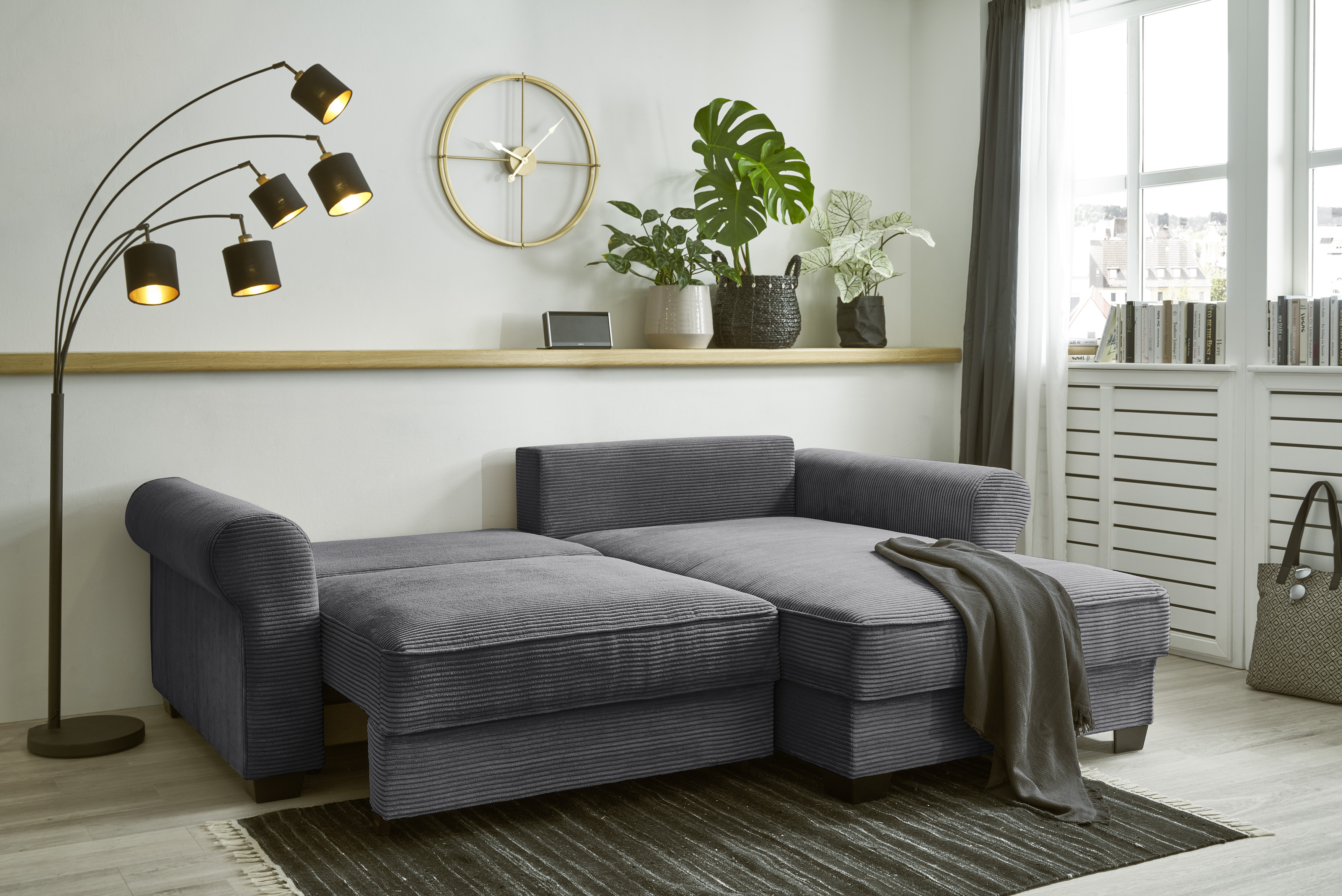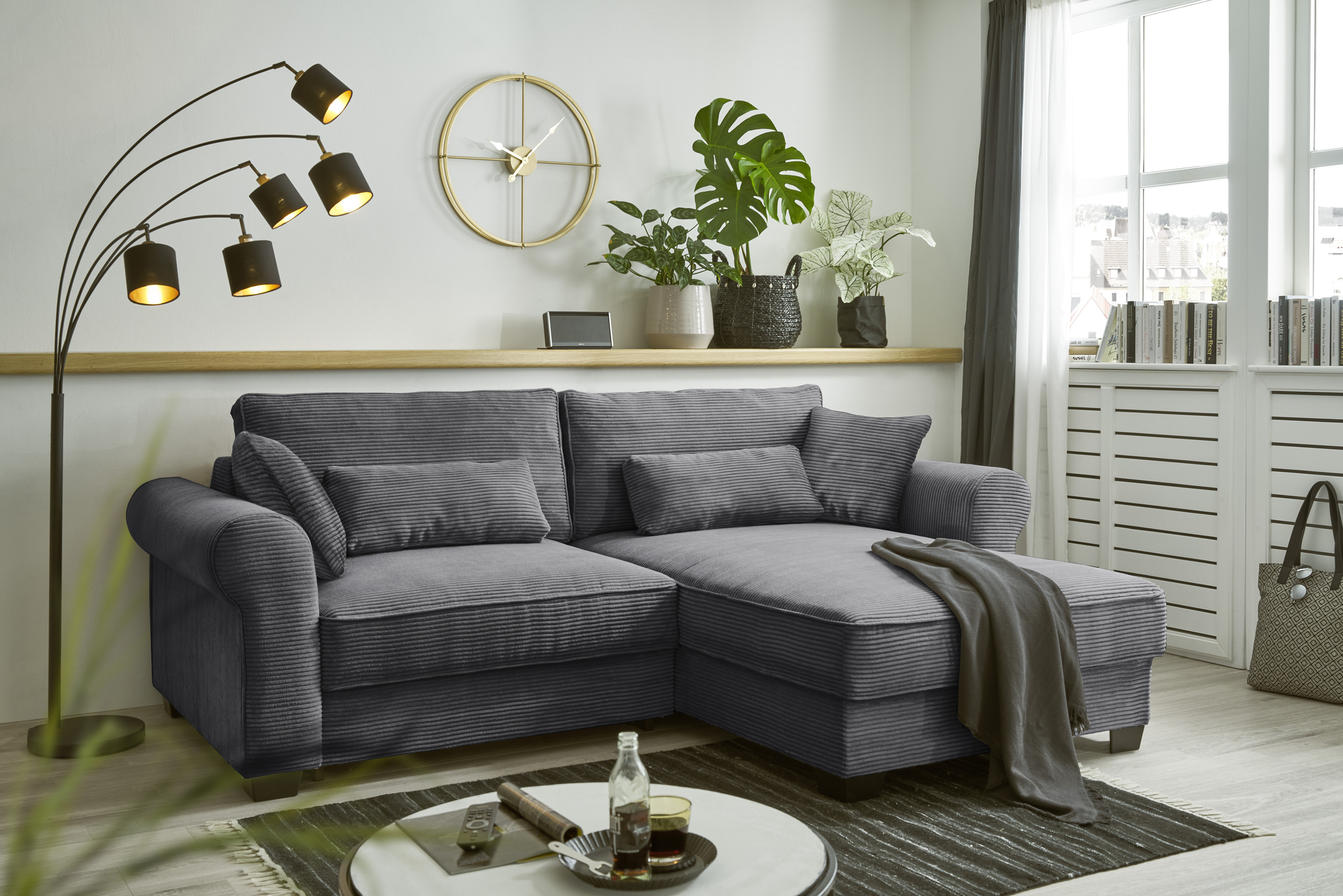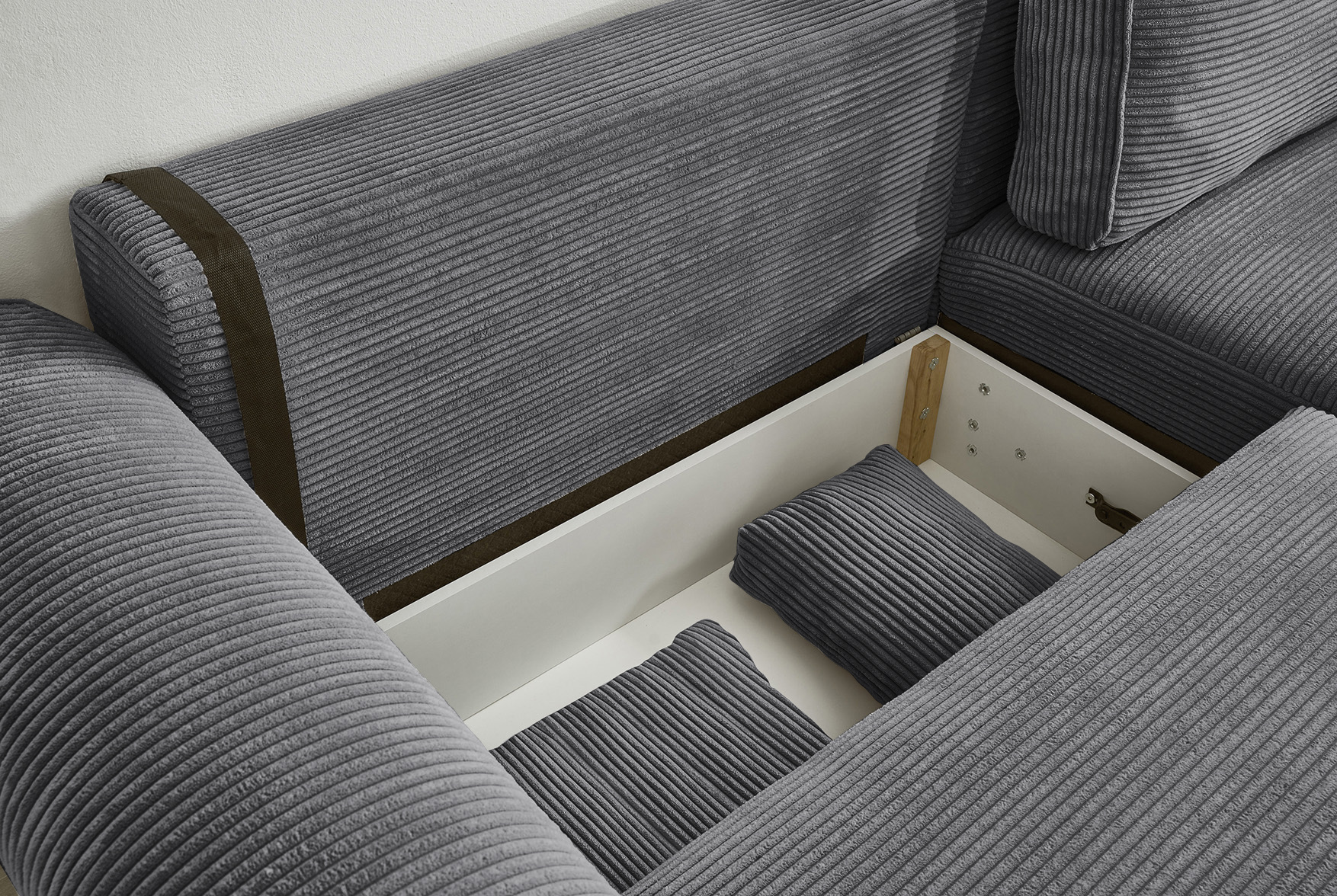Equipement canapés: | Dos habillé, Méridienne à droite ou à gauche, incl. coffre de lit, incl. coussins |