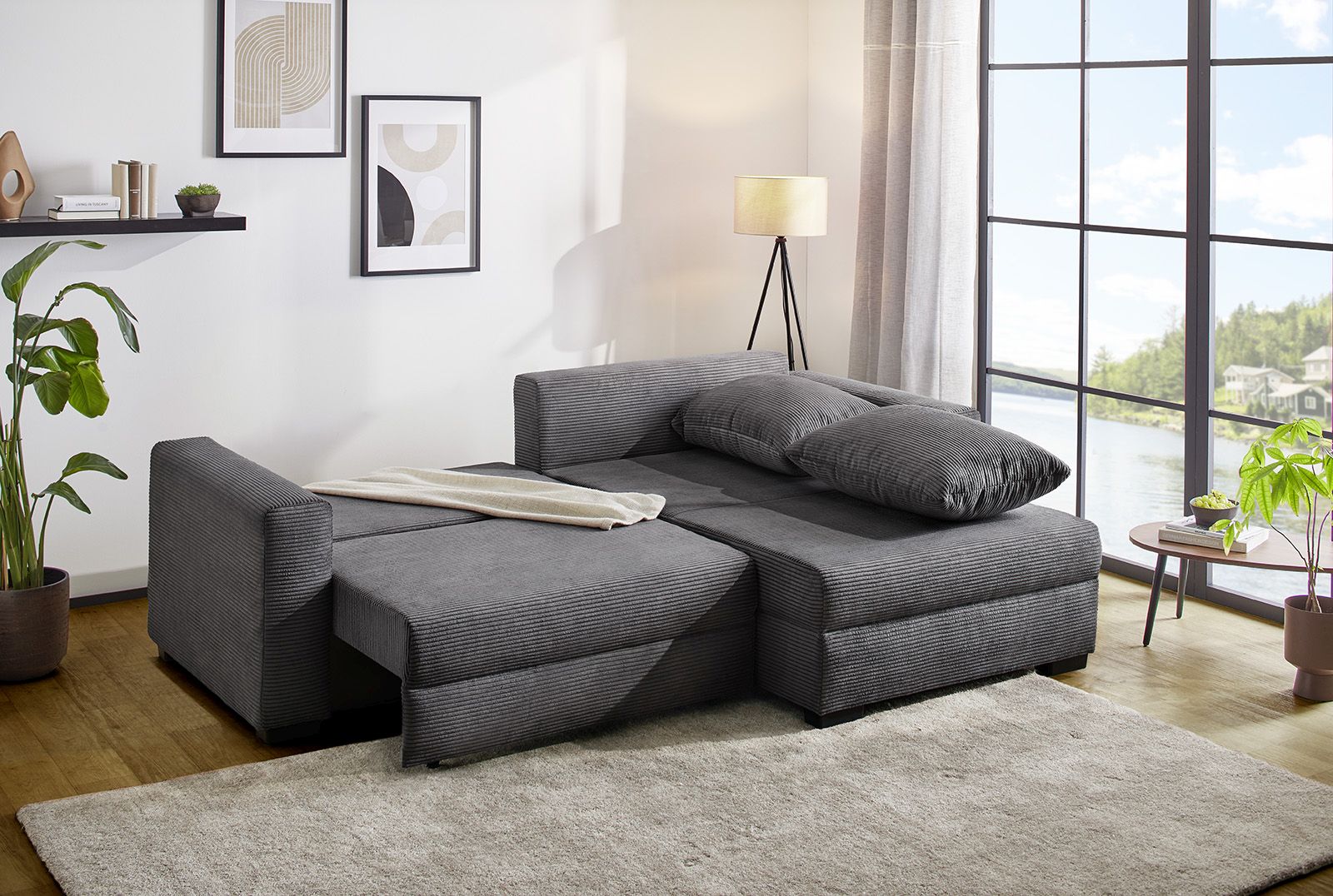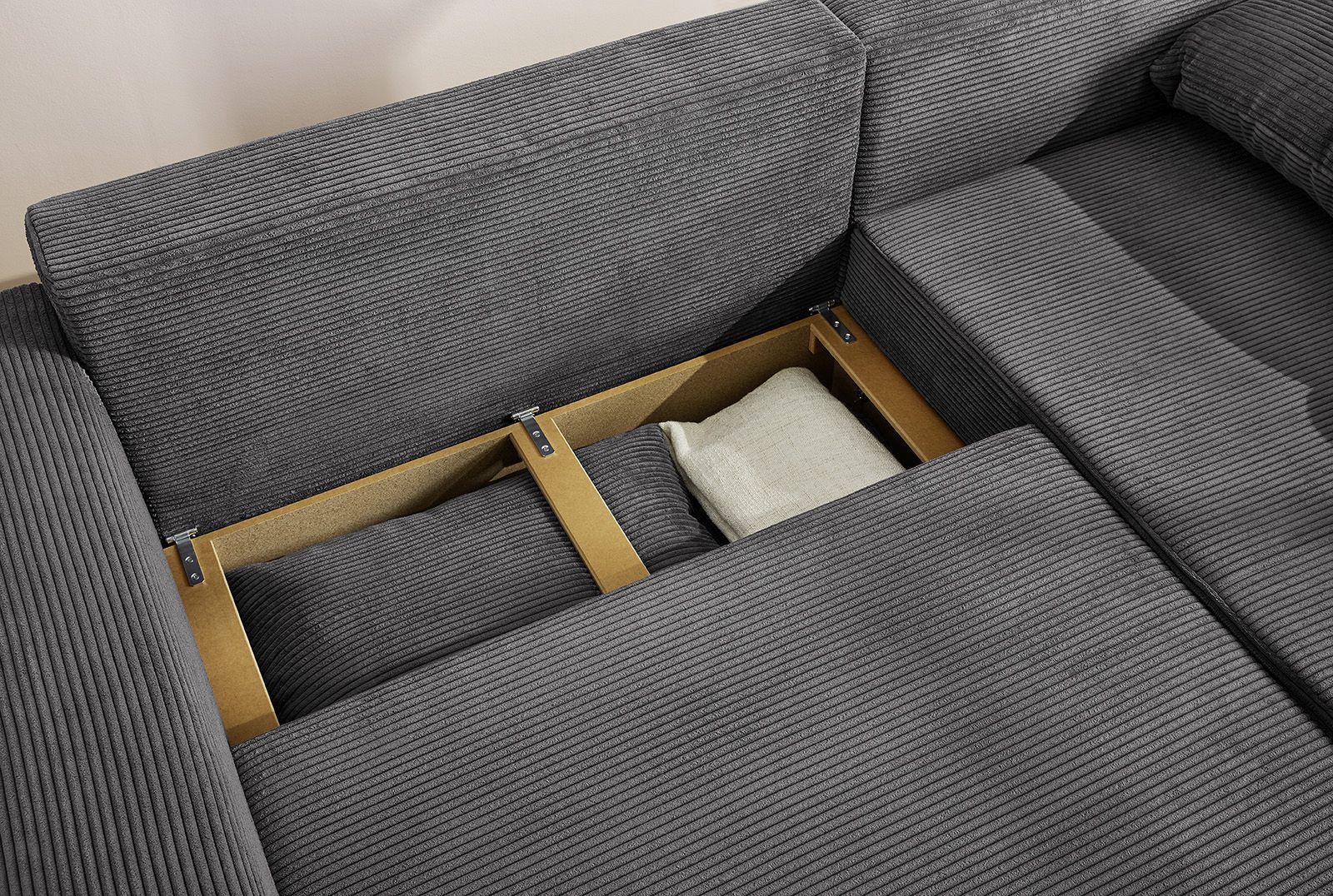 Equipement canapés: | Dos habillé, Méridienne à droite ou à gauche, incl. coffre de lit, incl. coussins |