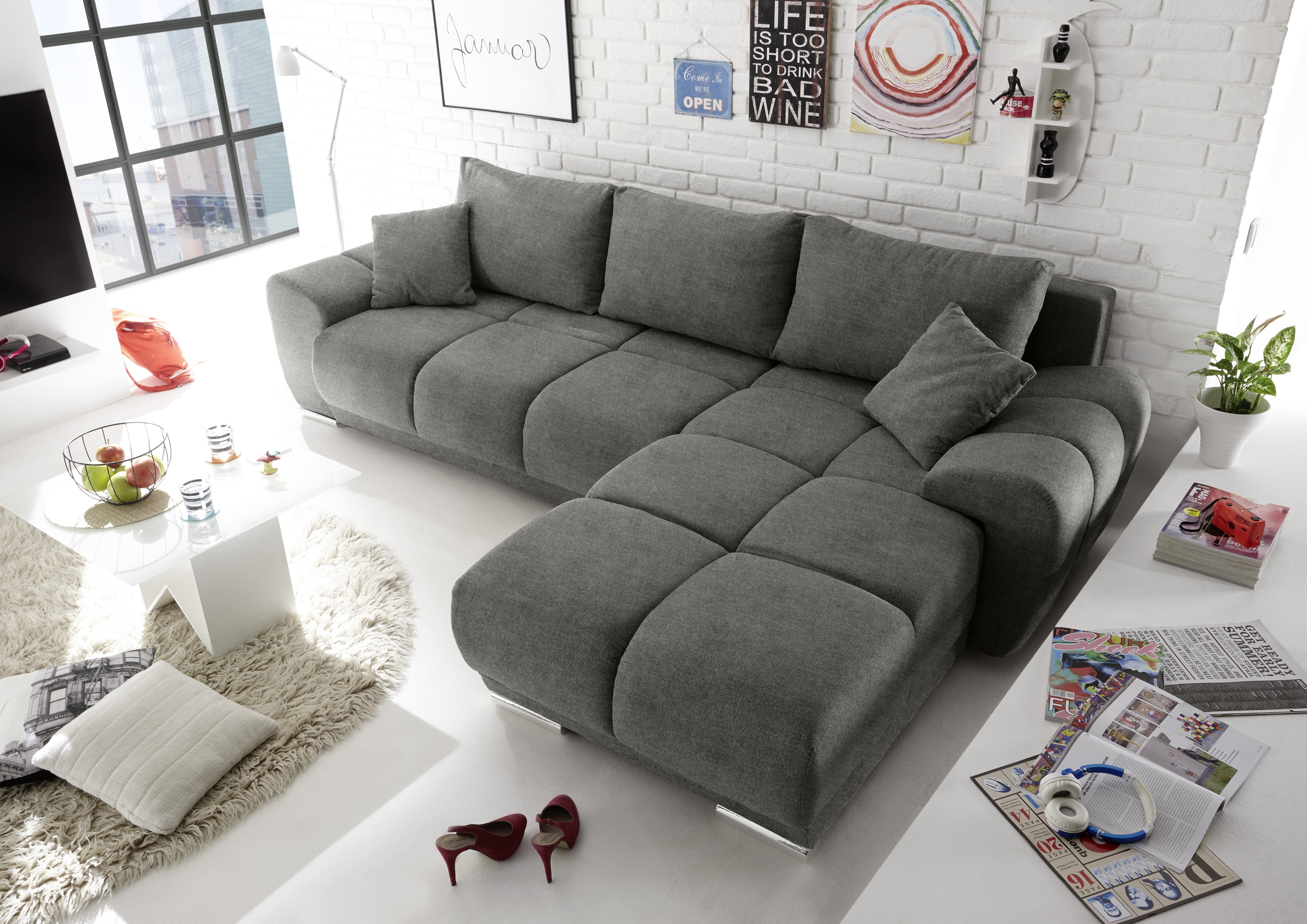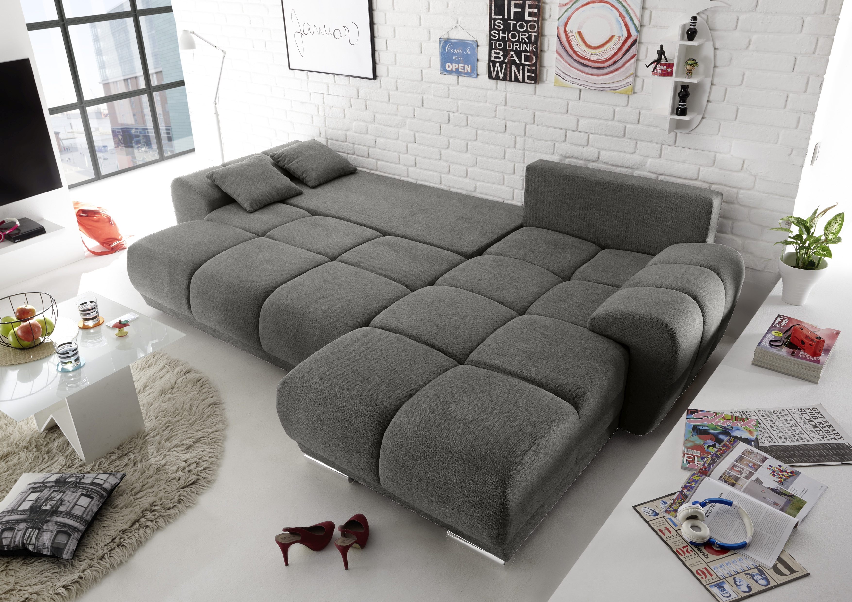 | Equipement canapés: | Dos habillé, Méridienne à droite ou à gauche, incl. coffre de lit, incl. coussins | ||