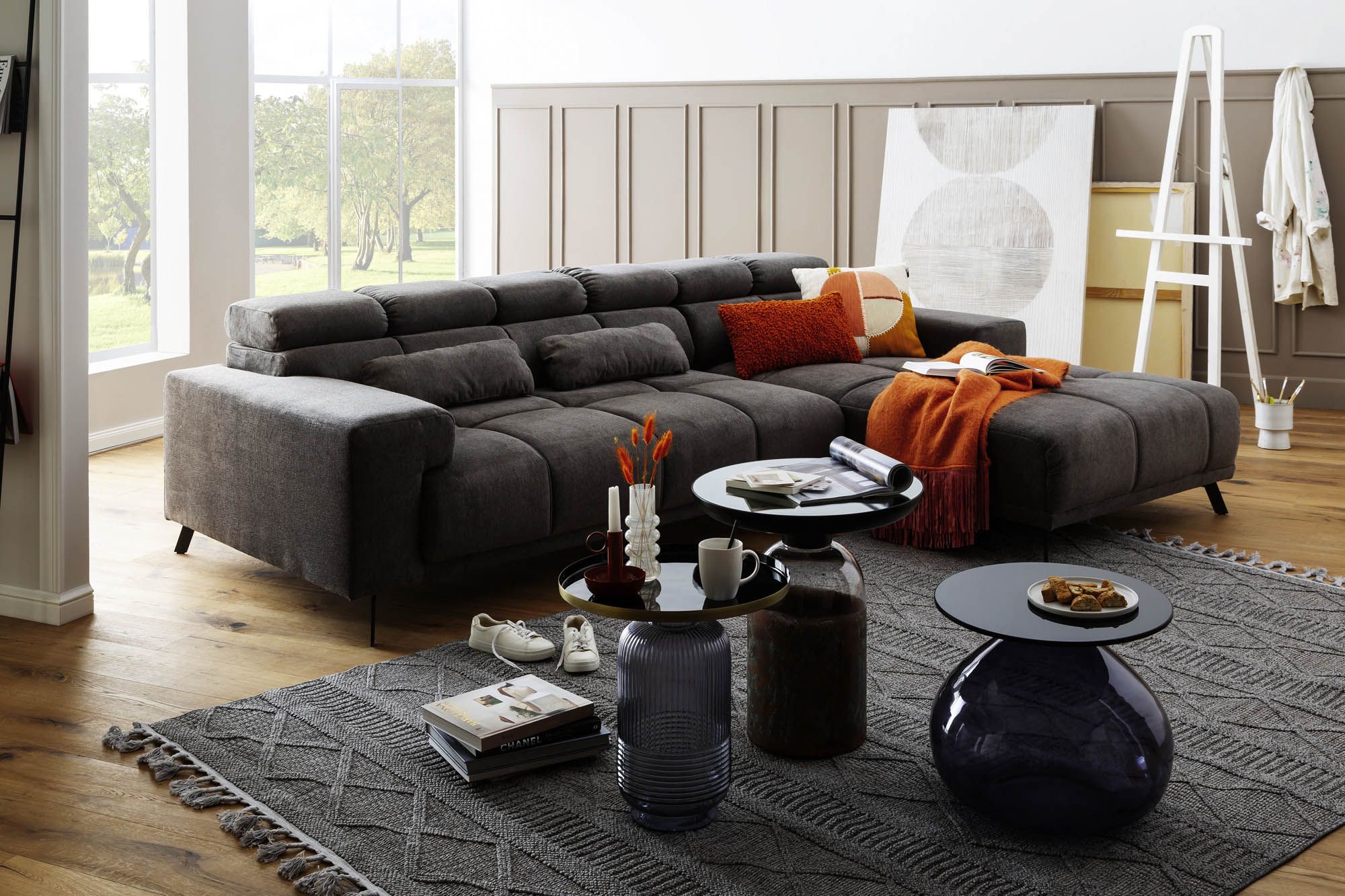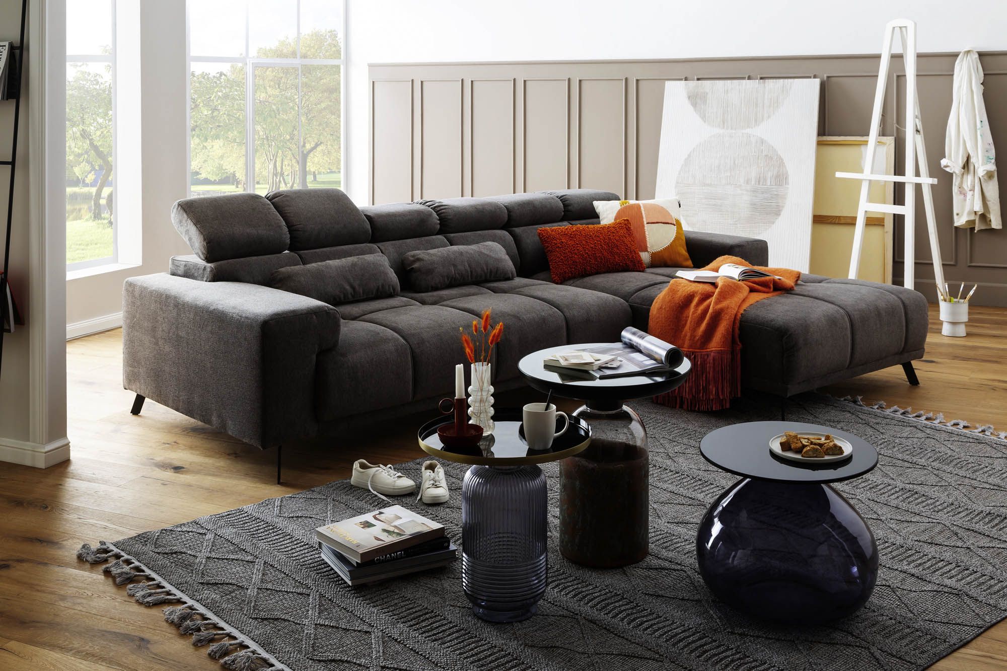 | Equipement canapés: | Appuie-tête(s), Méridienne à droite, incl. coussins | ||