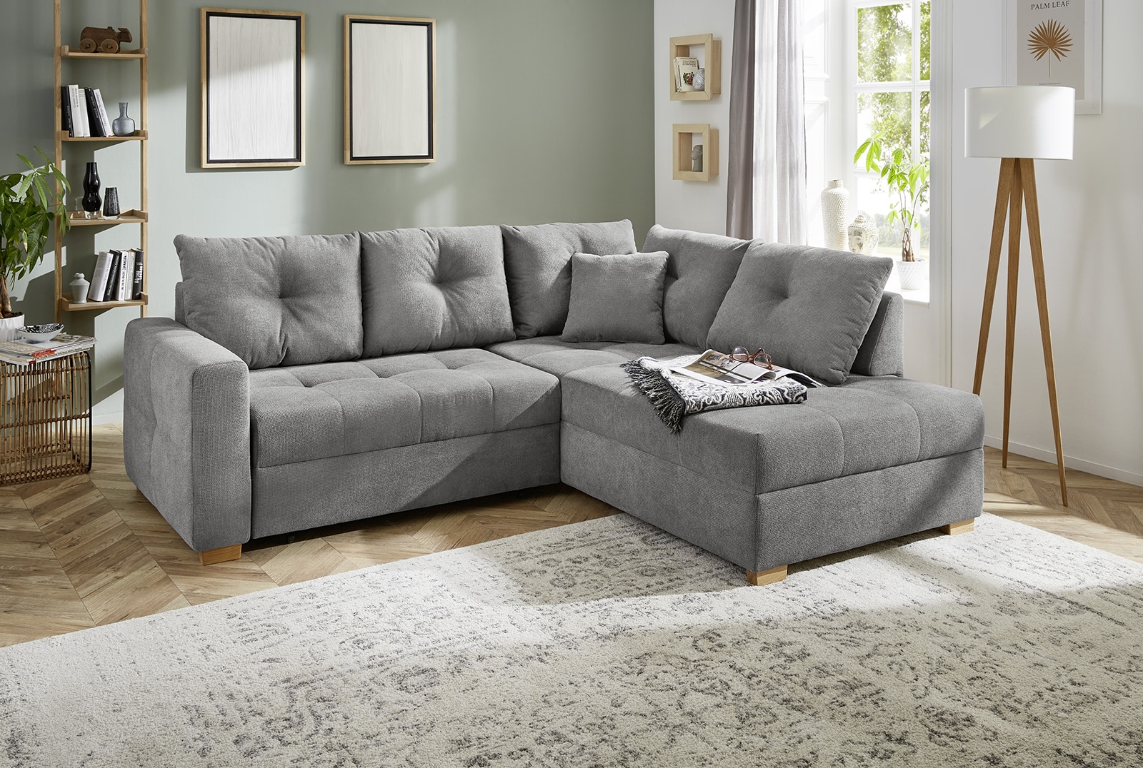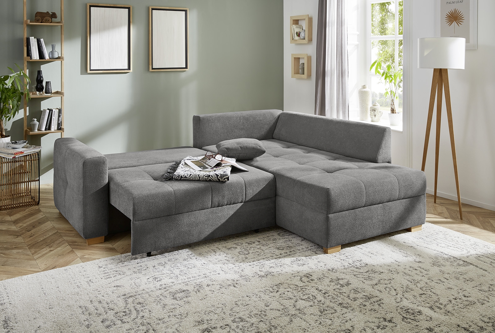 | Equipement canapés: | Dos habillé, Méridienne à droite ou à gauche, incl. coffre de lit, incl. coussins | ||