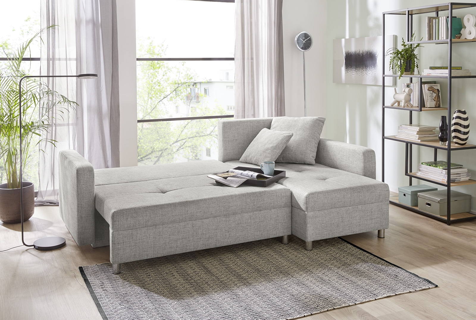 | Equipement canapés: | Dos habillé, Méridienne à droite ou à gauche, incl. coffre de lit, incl. coussins | ||