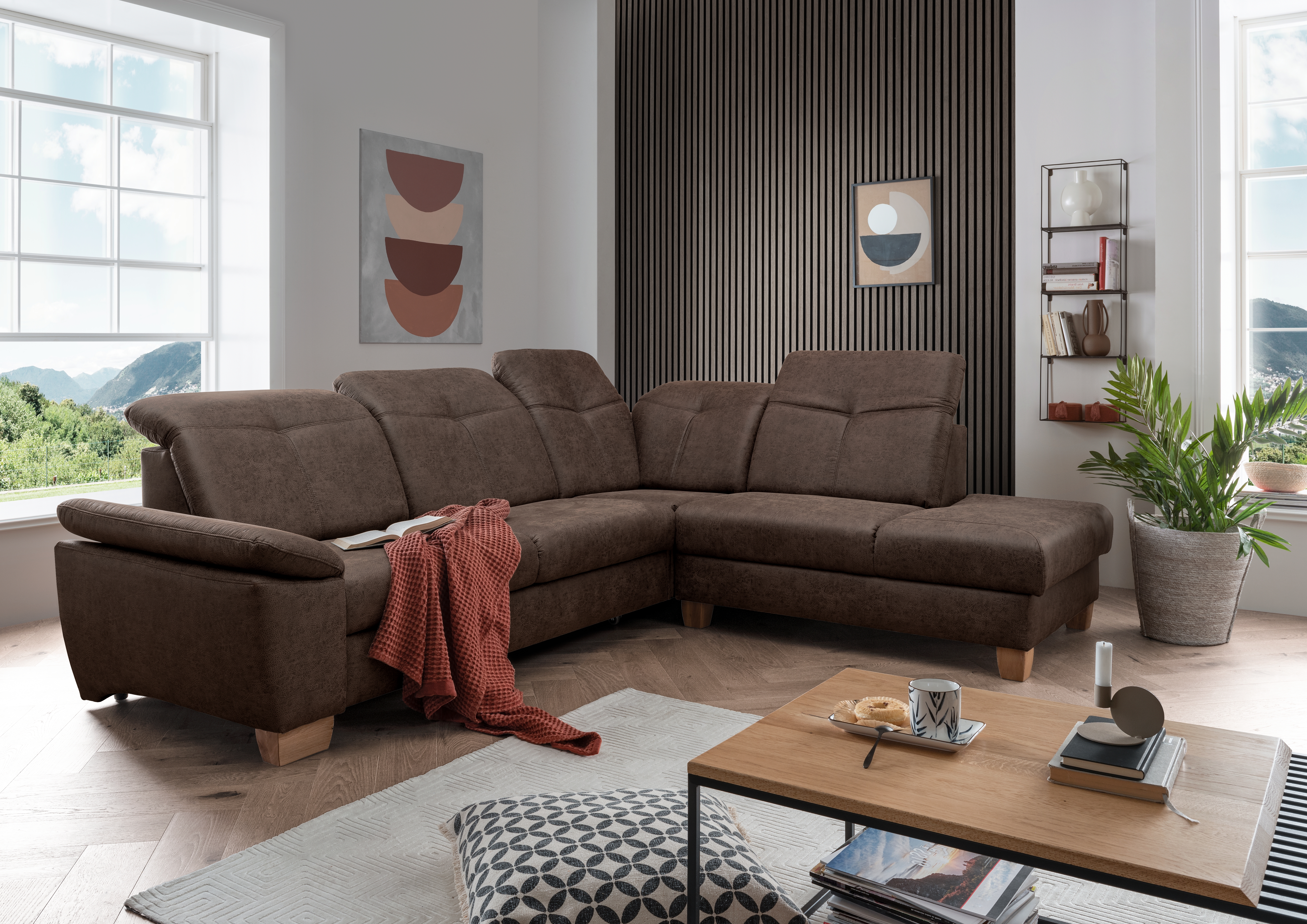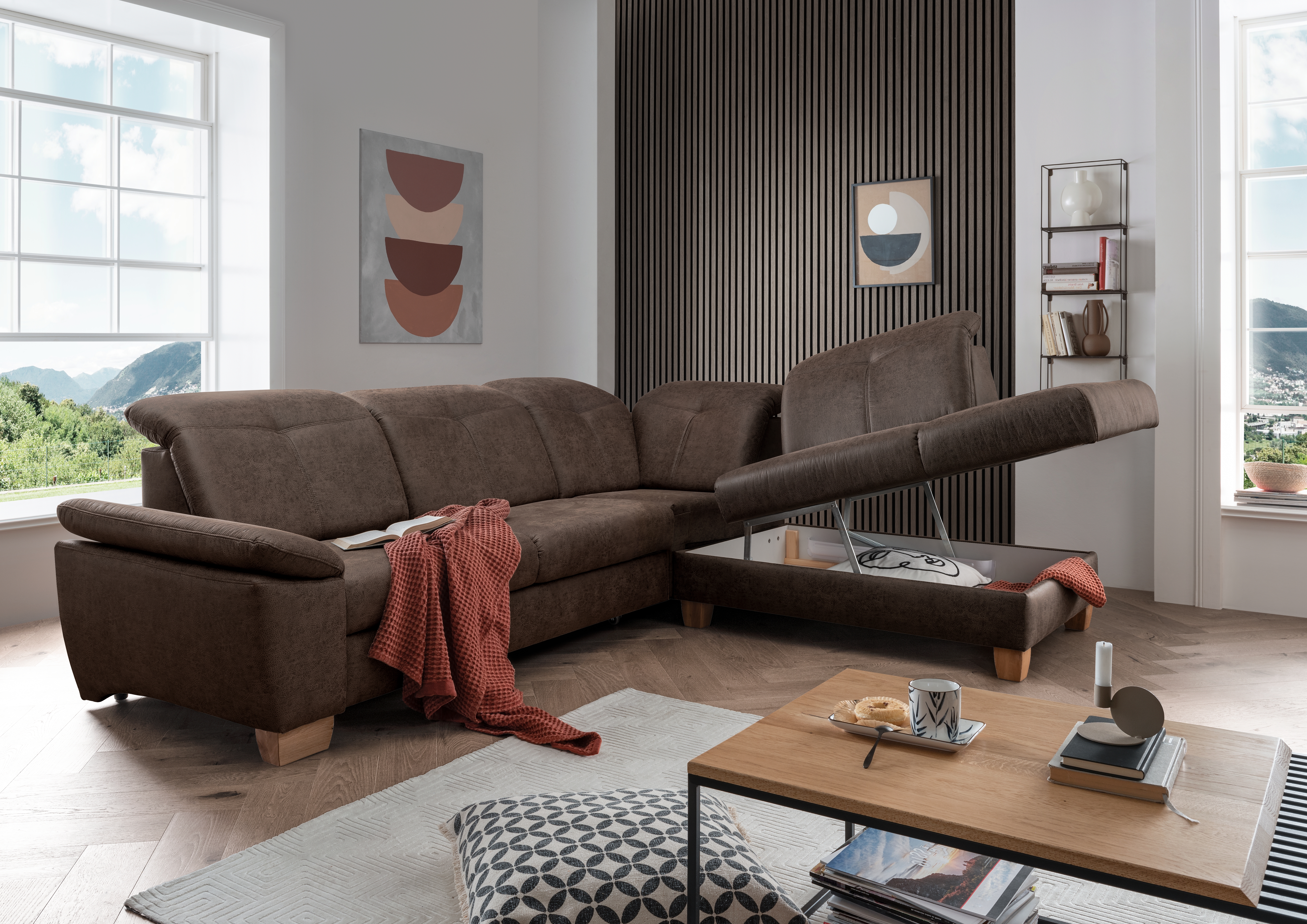 | Equipement canapés: | Appuie-tête(s), Dos habillé, Méridienne à droite, incl. coffre de lit | ||