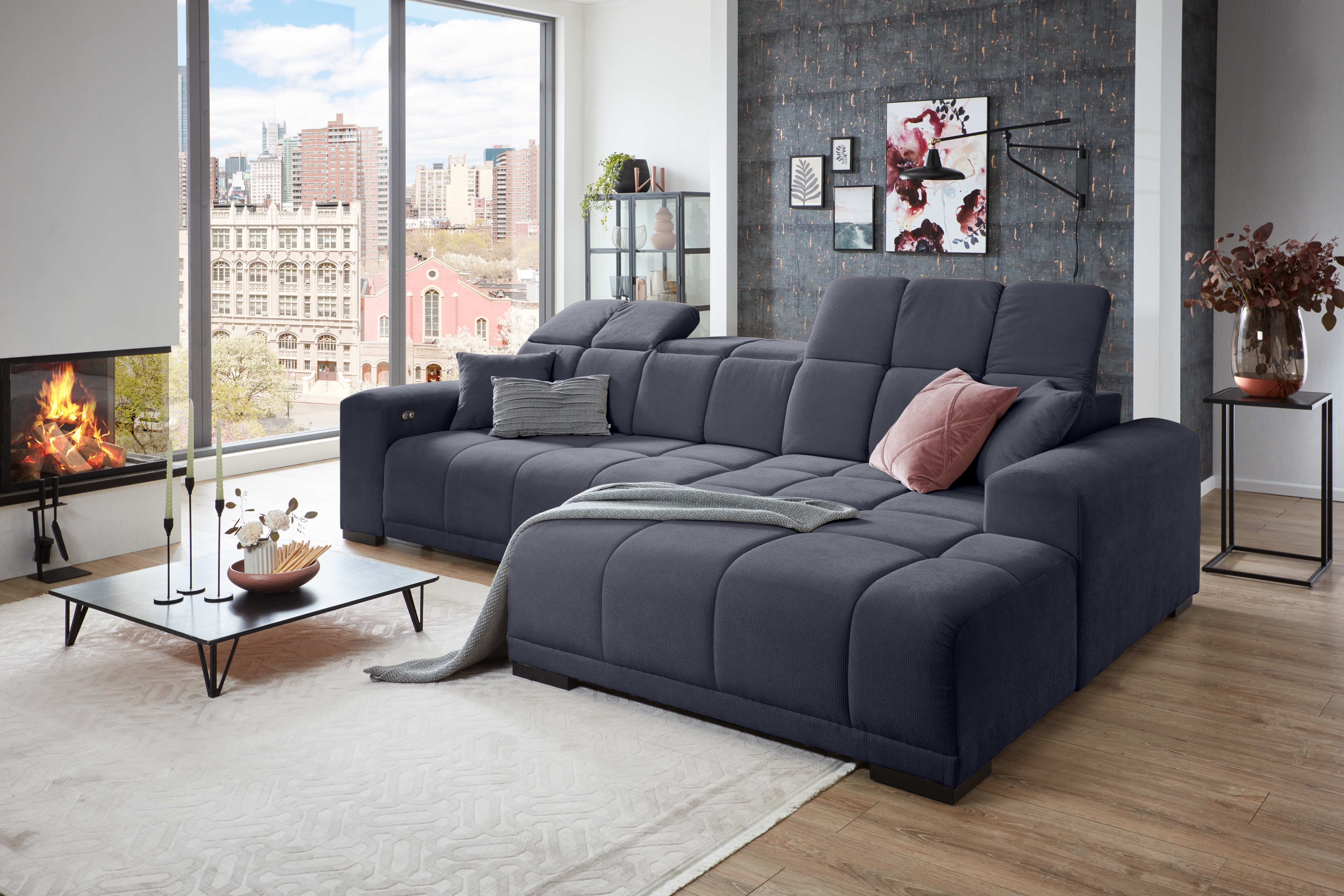 Equipement canapés: | Appuie-tête(s), Méridienne à droite, Prolongement de l'assise motorisé, incl. coussins |