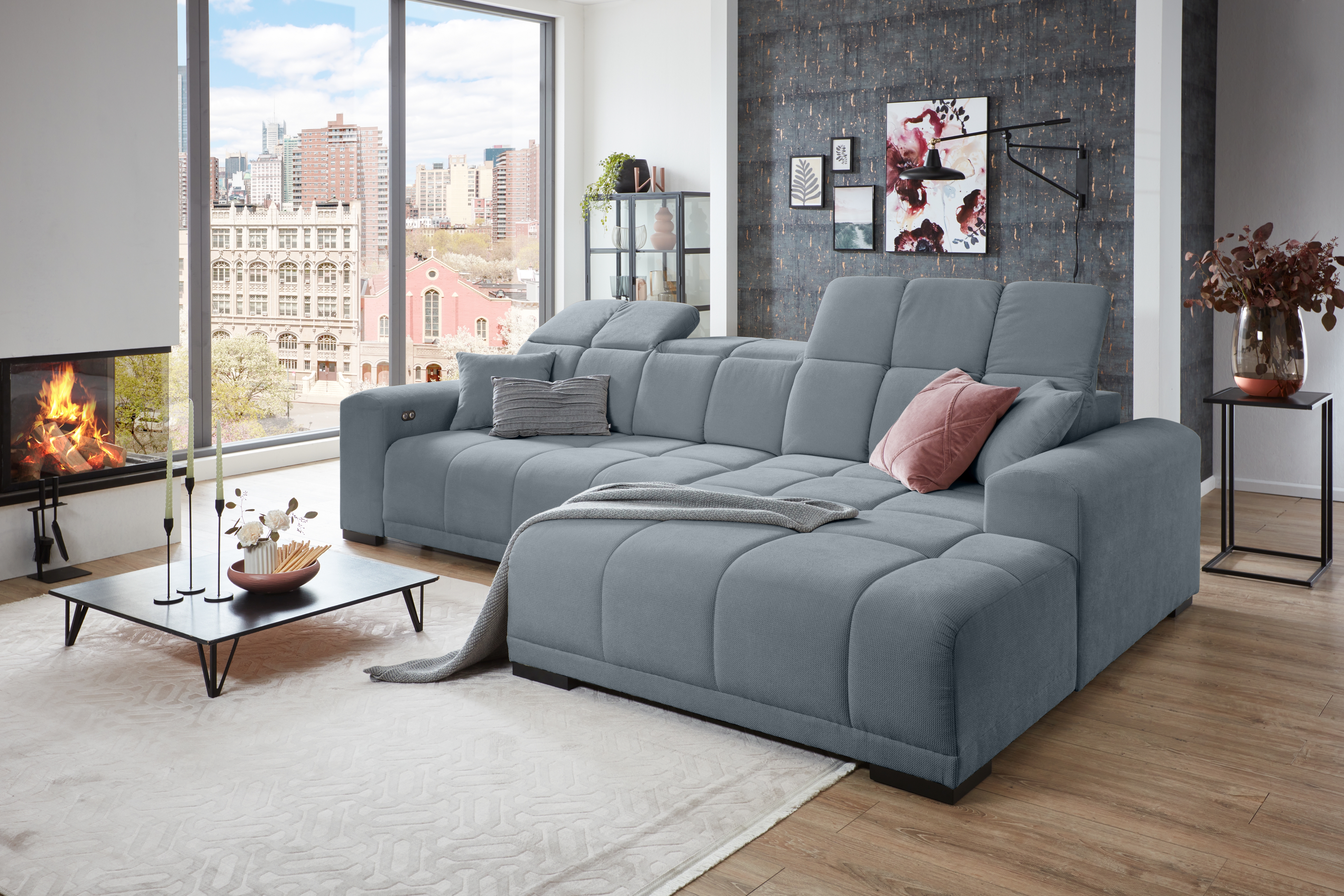 Equipement canapés: | Appuie-tête(s), Méridienne à droite, Prolongement de l'assise motorisé, incl. coussins |