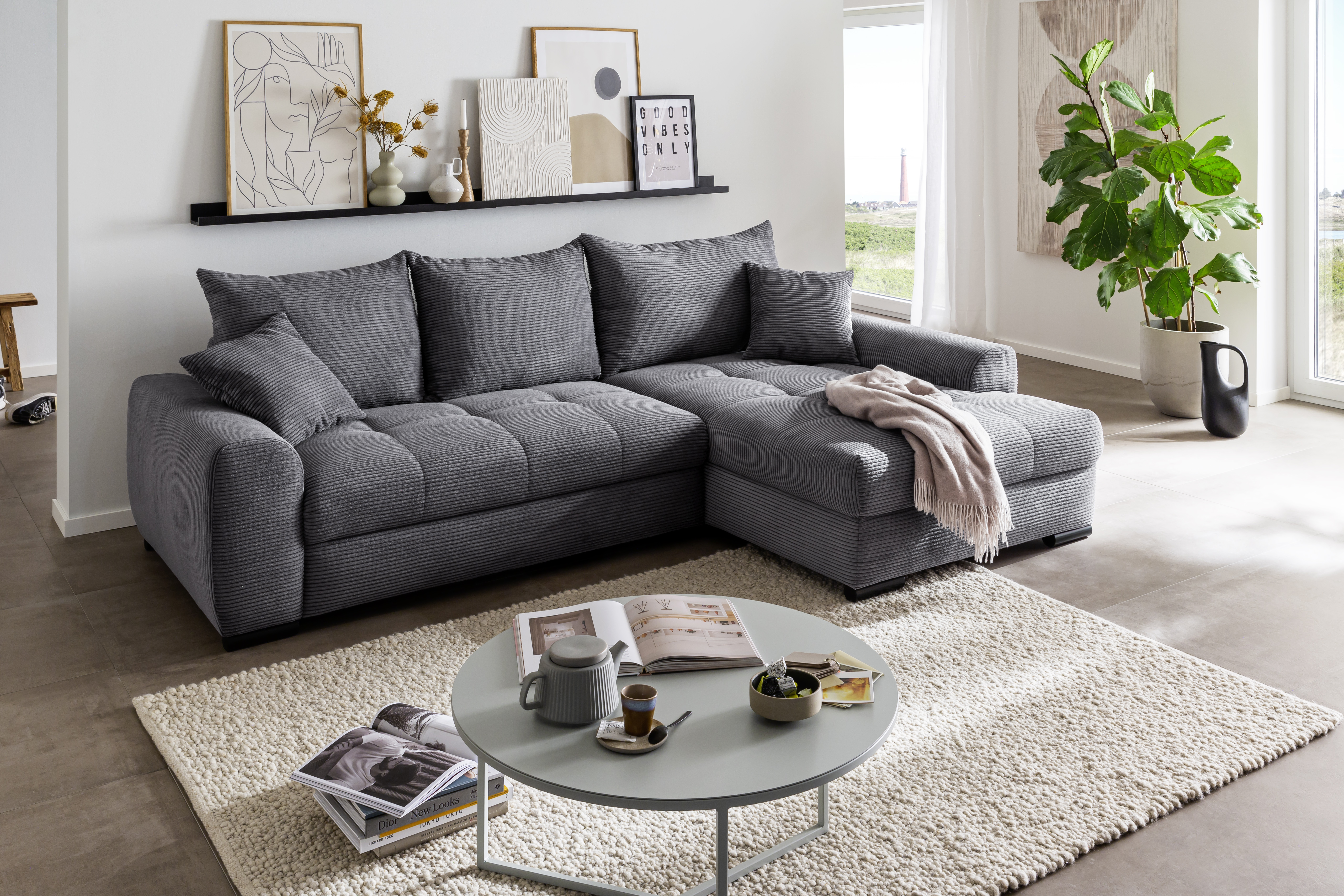 | Equipement canapés: | Dos habillé, Méridienne à droite ou à gauche, incl. coffre de lit, incl. coussins | ||