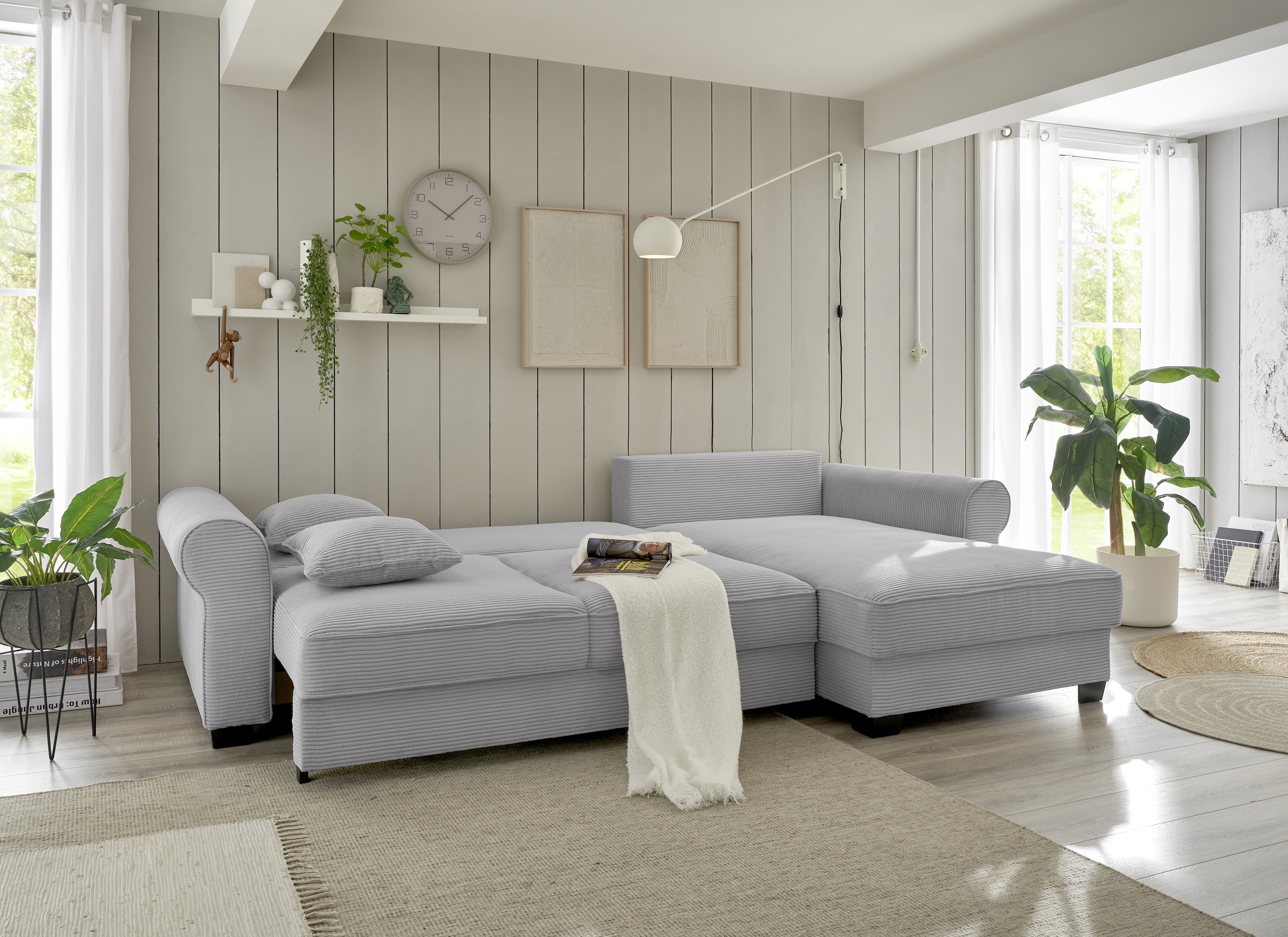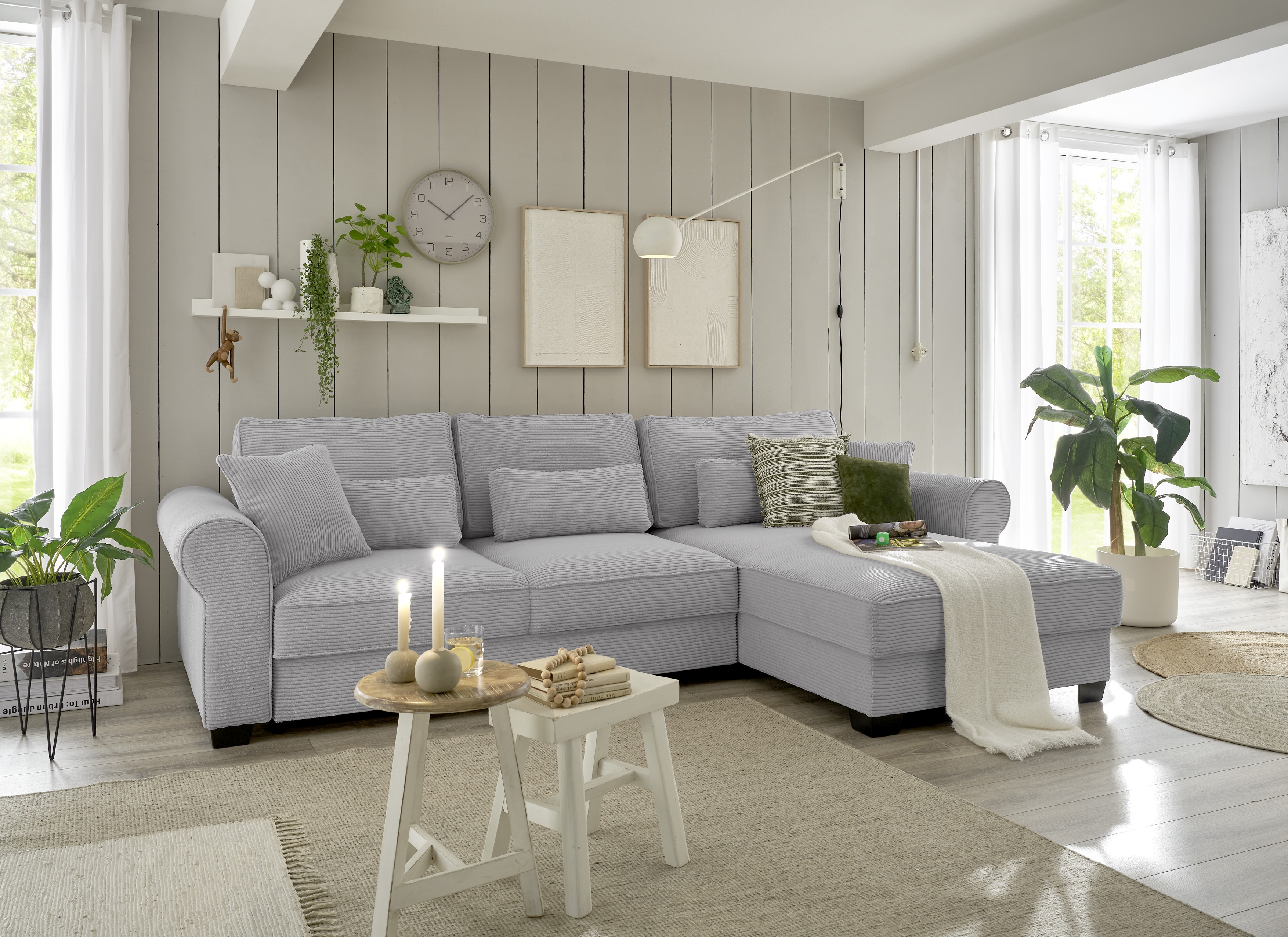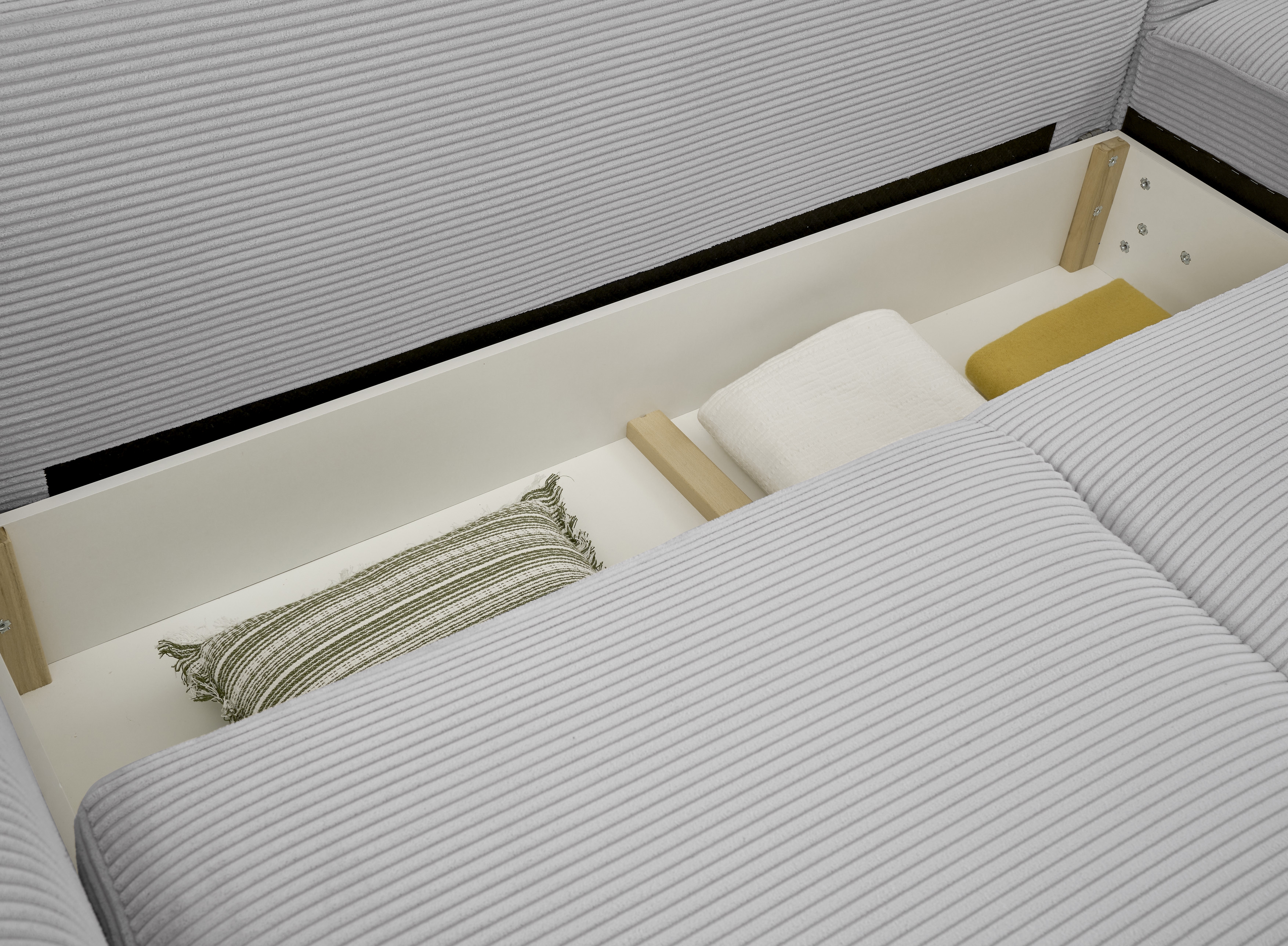 | Equipement canapés: | Dos habillé, Méridienne à droite ou à gauche, incl. coffre de lit, incl. coussins | ||
