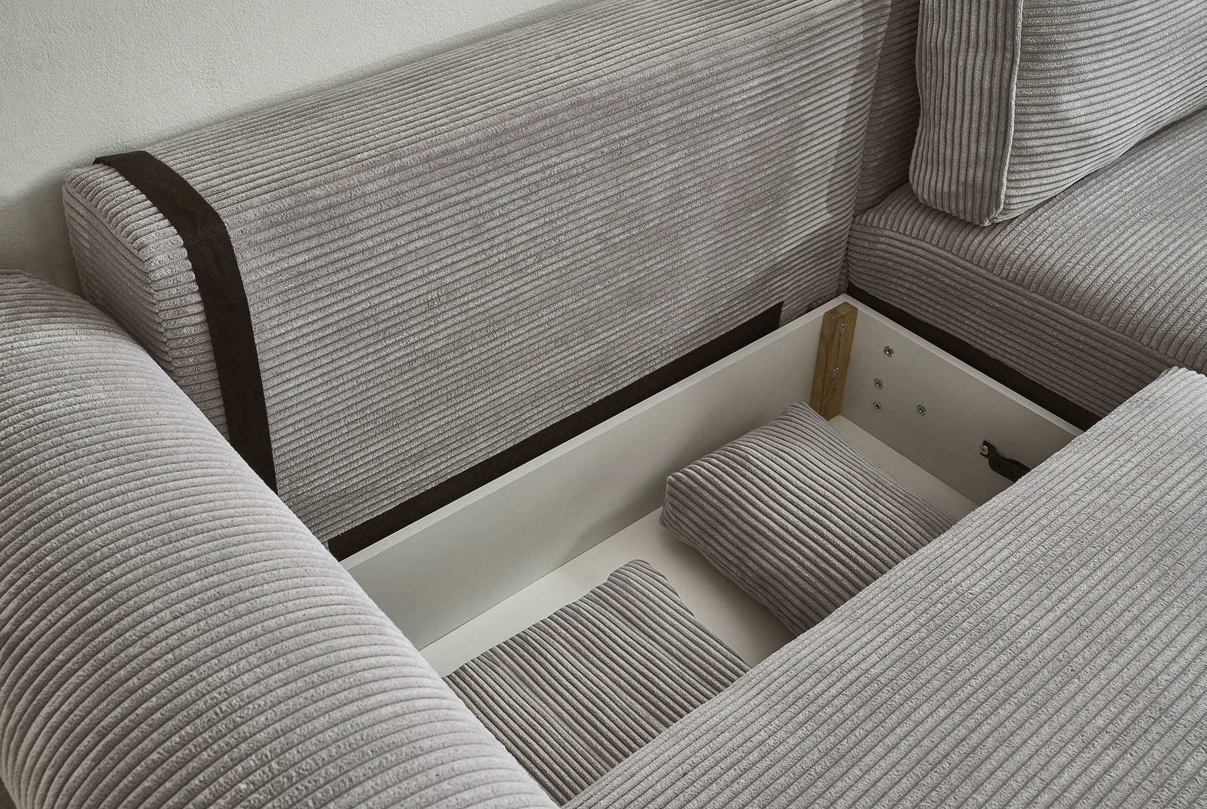 | Equipement canapés: | Dos habillé, Méridienne à droite ou à gauche, incl. coffre de lit, incl. coussins | ||
