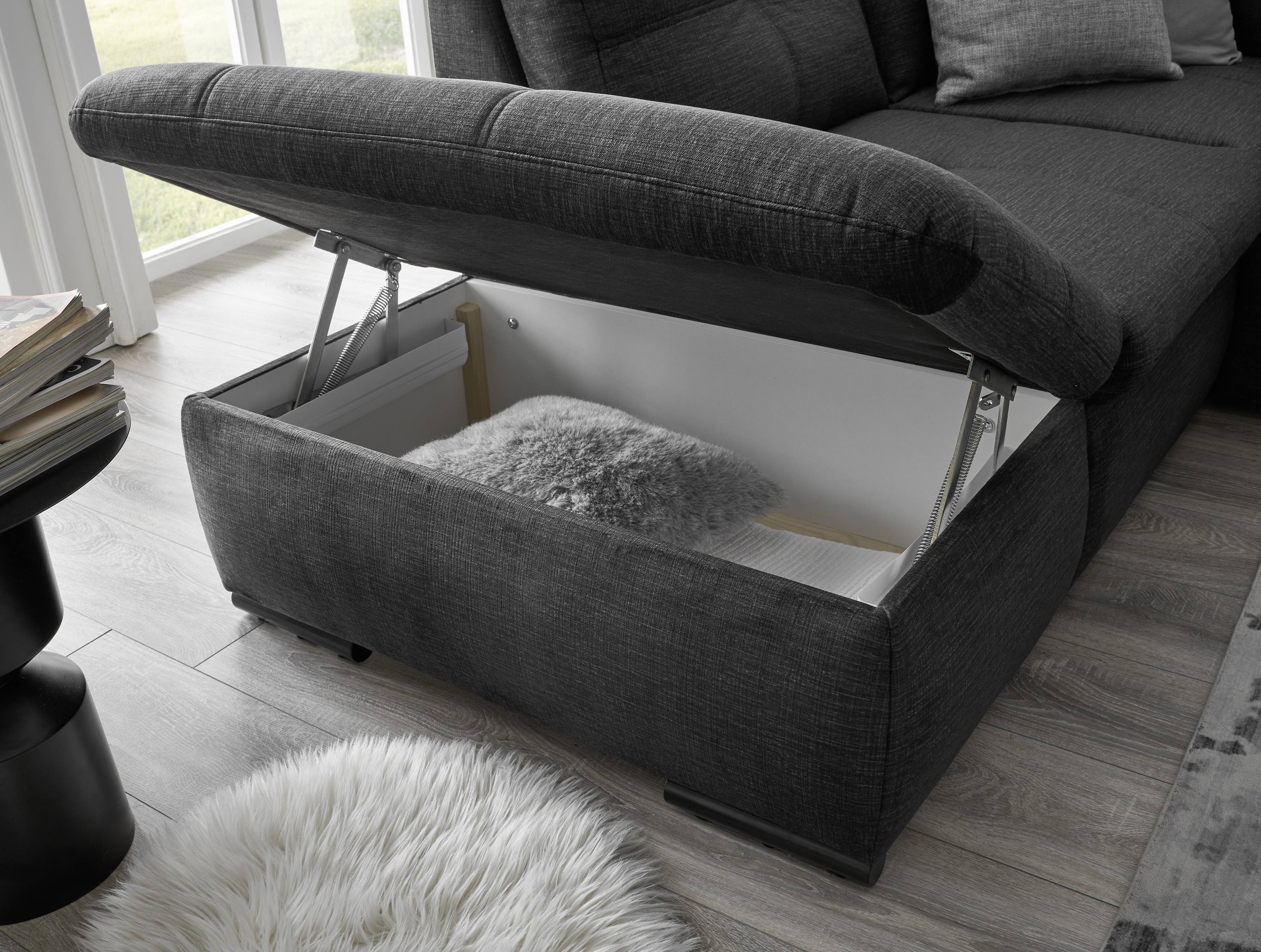 | Equipement canapés: | Appuie-tête(s), Dos habillé, Méridienne à gauche, incl. coffre de lit | ||