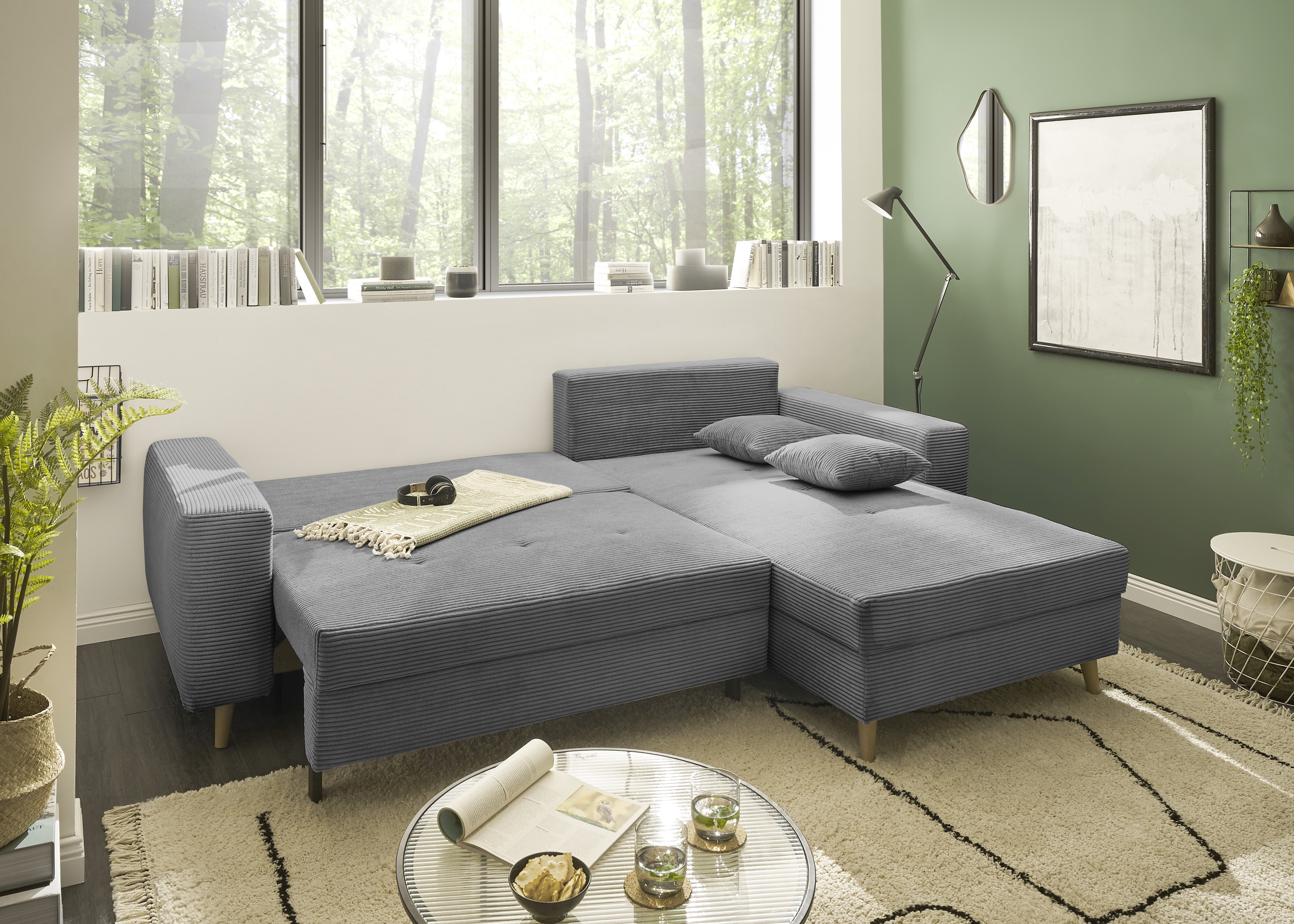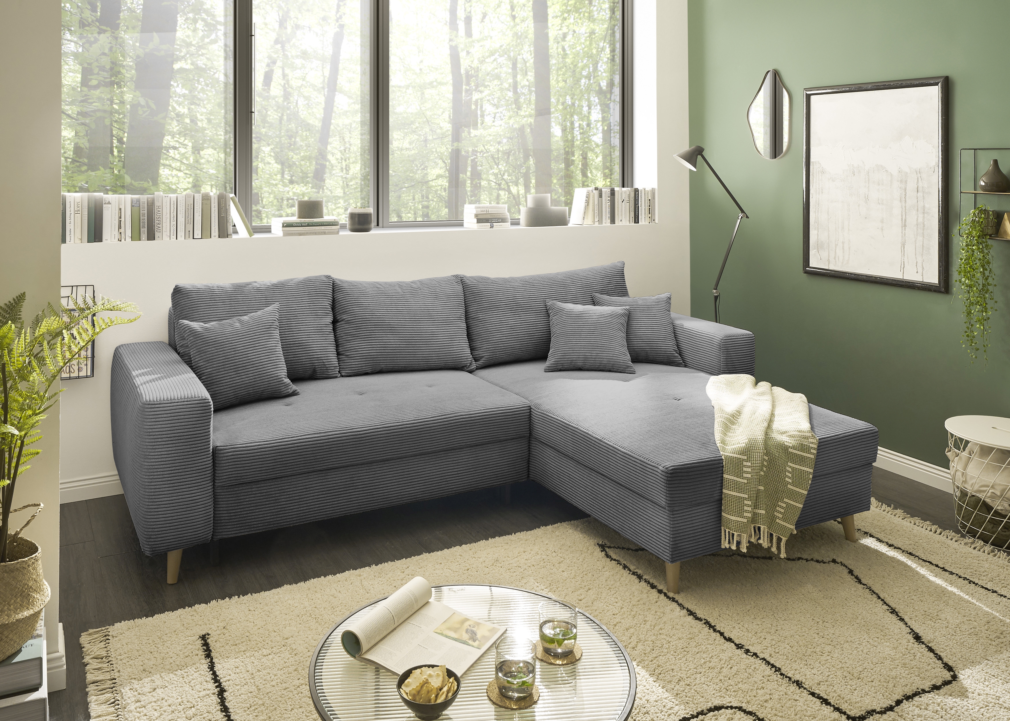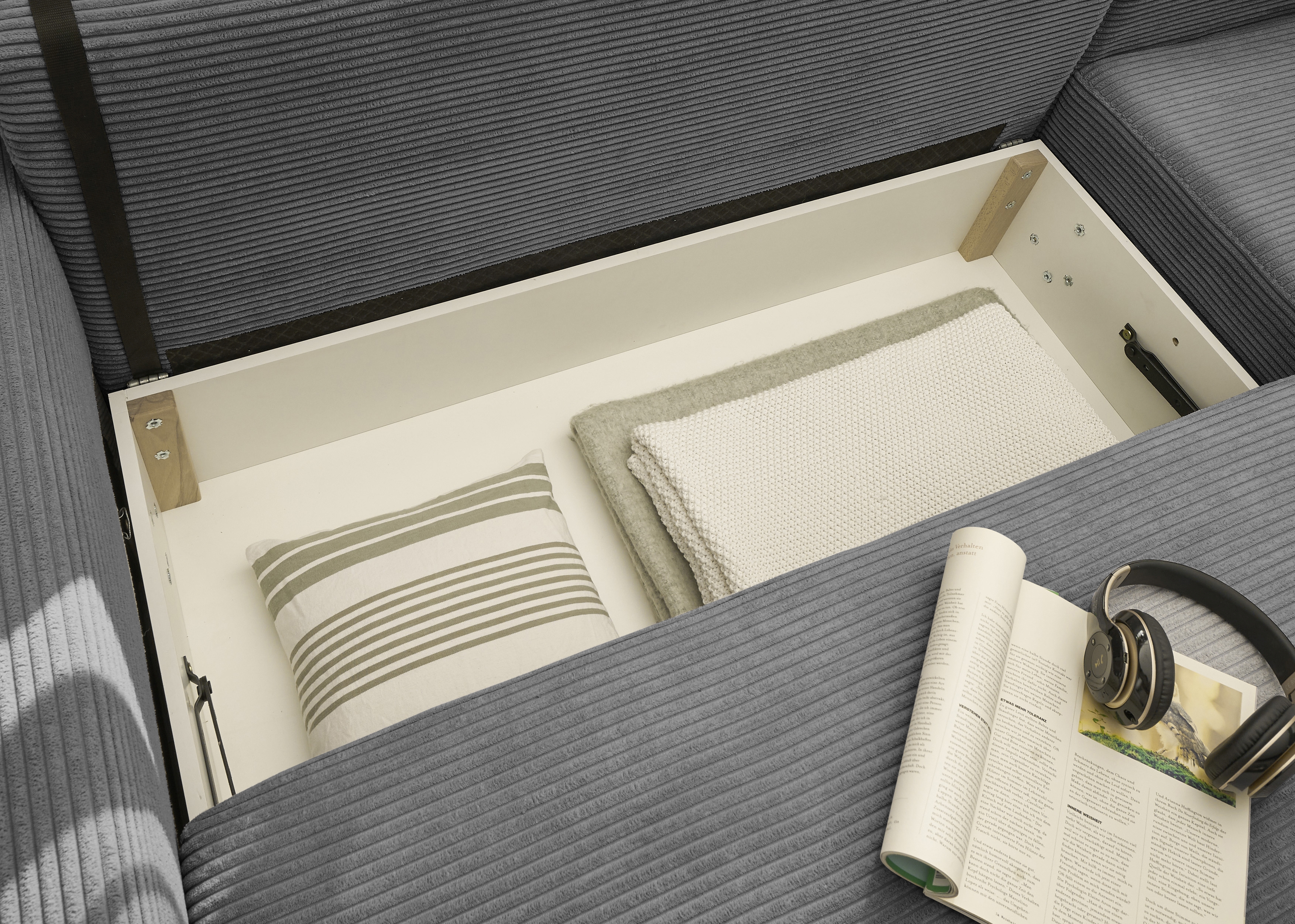 | Equipement canapés: | Dos habillé, Méridienne à droite ou à gauche, incl. coffre de lit, incl. coussins | ||
