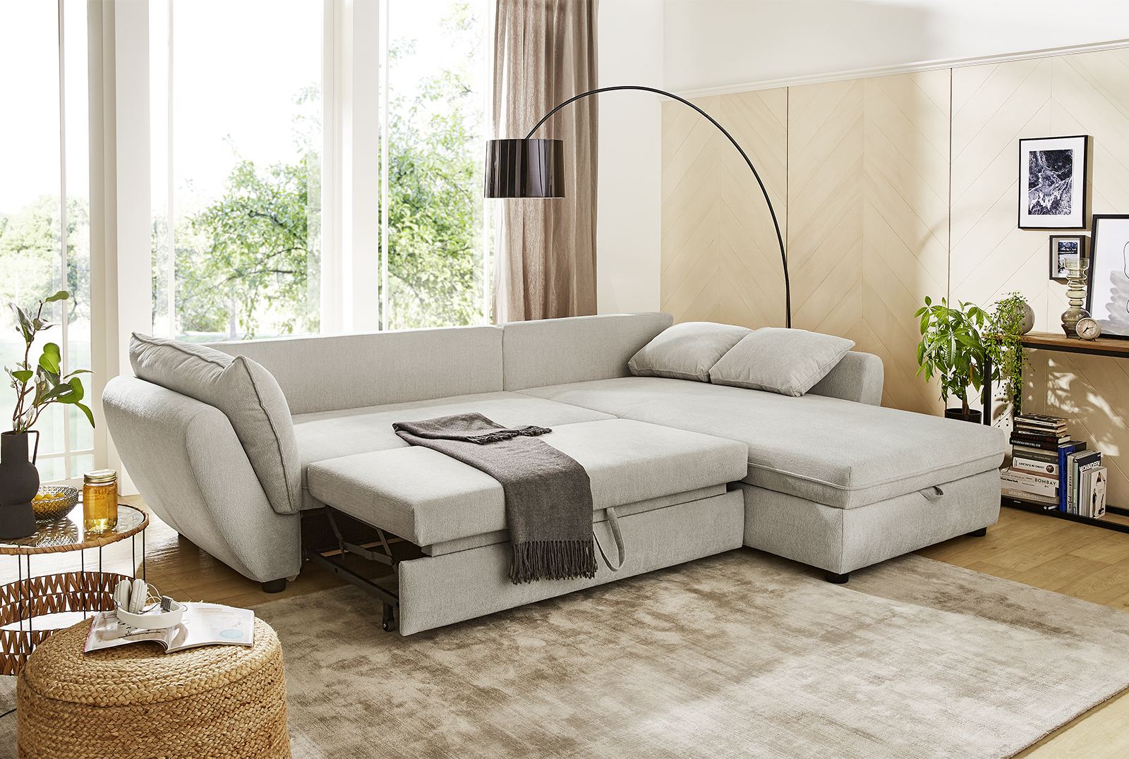 | Equipement canapés: | Méridienne à droite ou à gauche, incl. coffre de lit, incl. coussins | ||