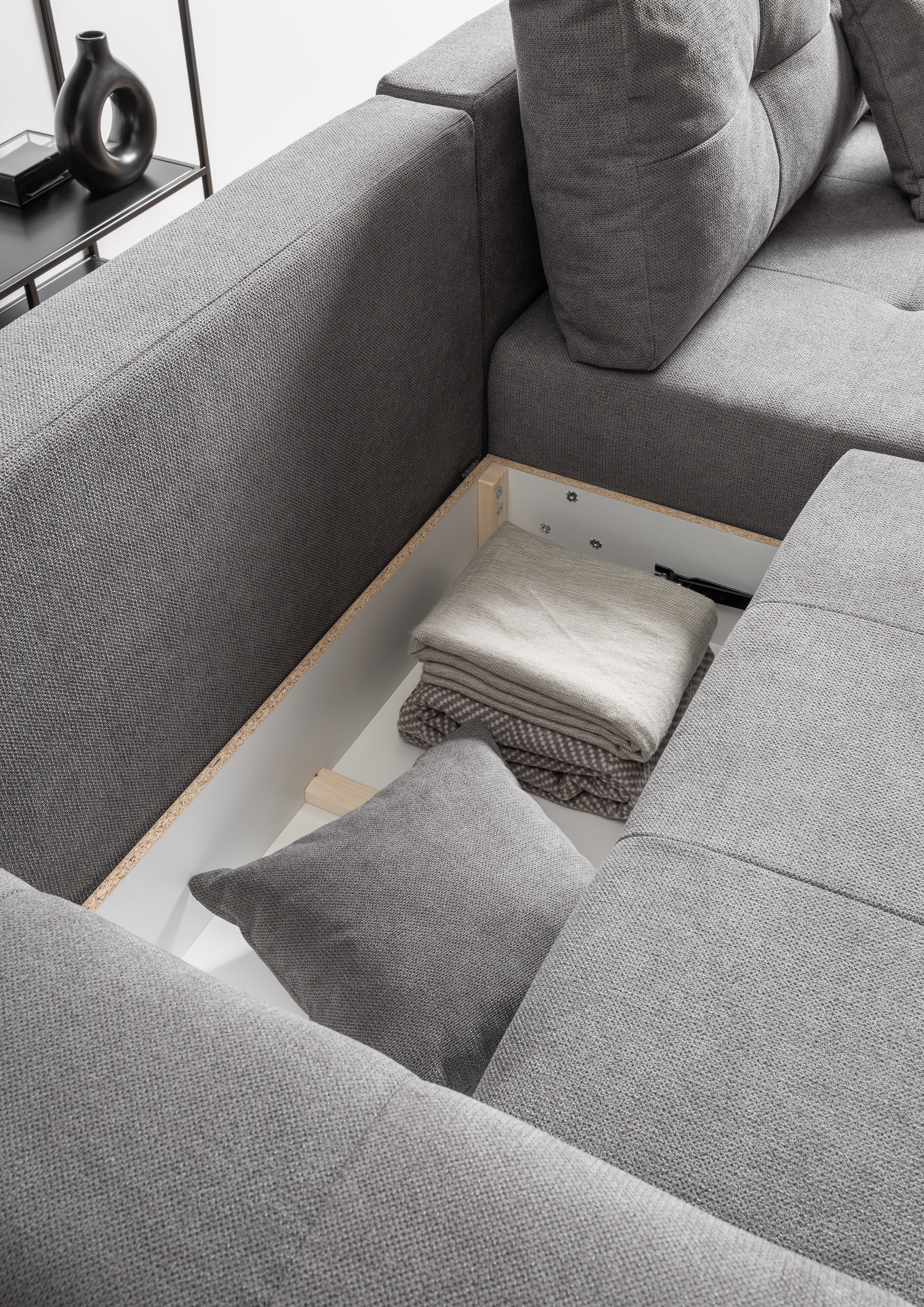 | Equipement canapés: | Dos habillé, incl. coffre de lit, incl. coussins | ||