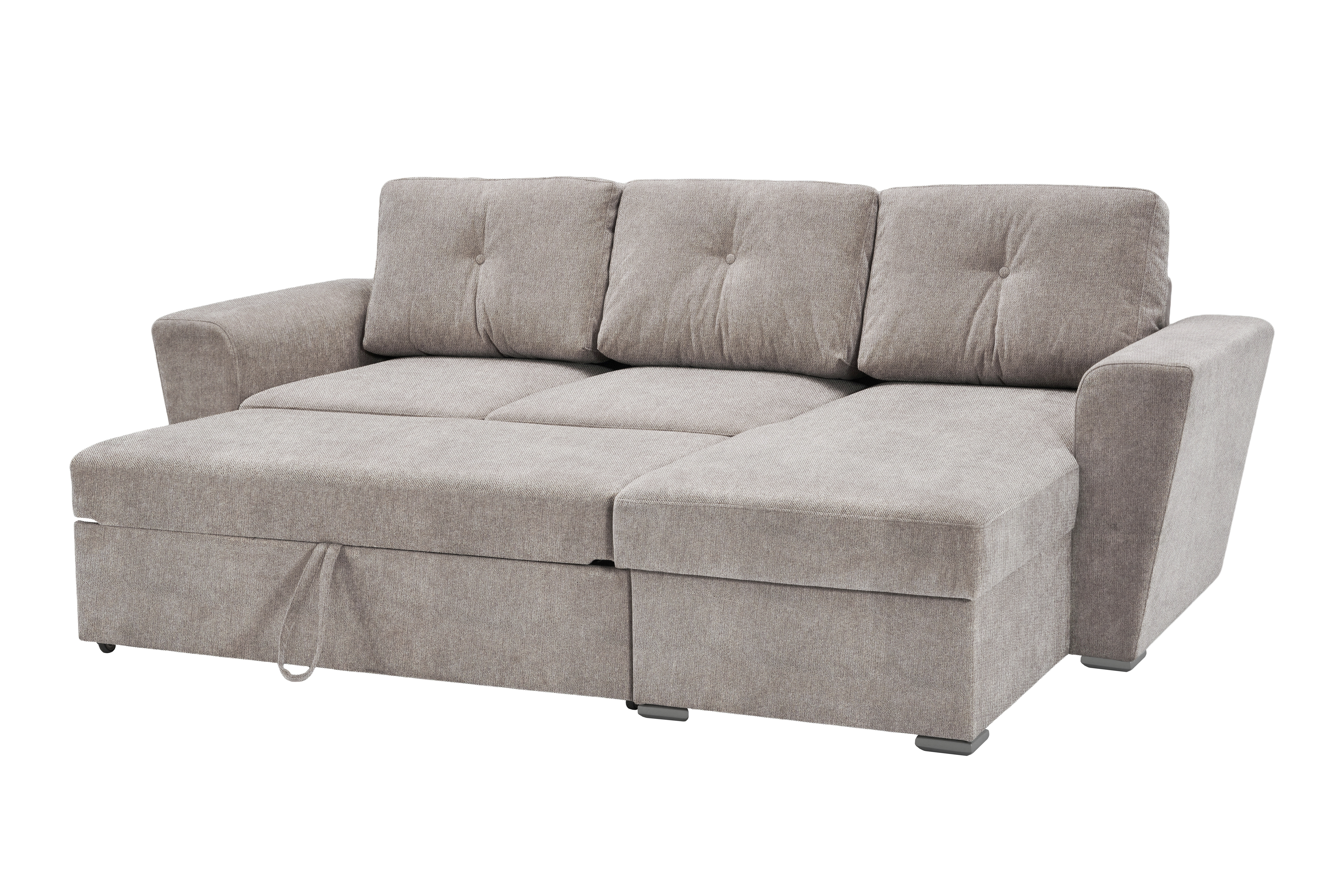 Ce canapé d'angle séduit par sa fonctionnalité pratique et son revêtement facile d'entretien de couleur marron clair. Le tissu Lord 35, 100 % polyester, est résistant et adapté à un usage quotidien. En quelques gestes, le canapé se transforme en un canapé-lit confortable, offrant ainsi une solution flexible pour accueillir des invités pour la nuit. La méridienne intégrée offre un espace de rangement supplémentaire, idéal pour les couvertures, les coussins ou d'autres accessoires de décoration. Grâce à sa conception compacte, ce modèle convient aussi bien aux salons qu'aux petits appartements. Un canapé-lit fonctionnel offrant un excellent rapport qualité-prix.