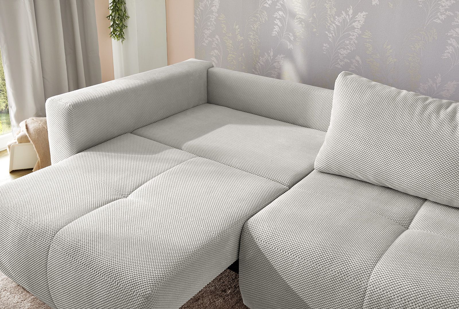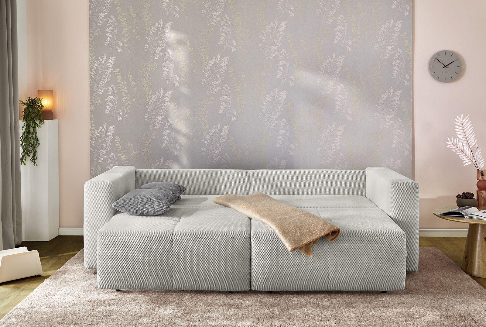Les deux assises peuvent coulisser séparément et permettent de transformer le canapé en lit spacieux en un tour de main.