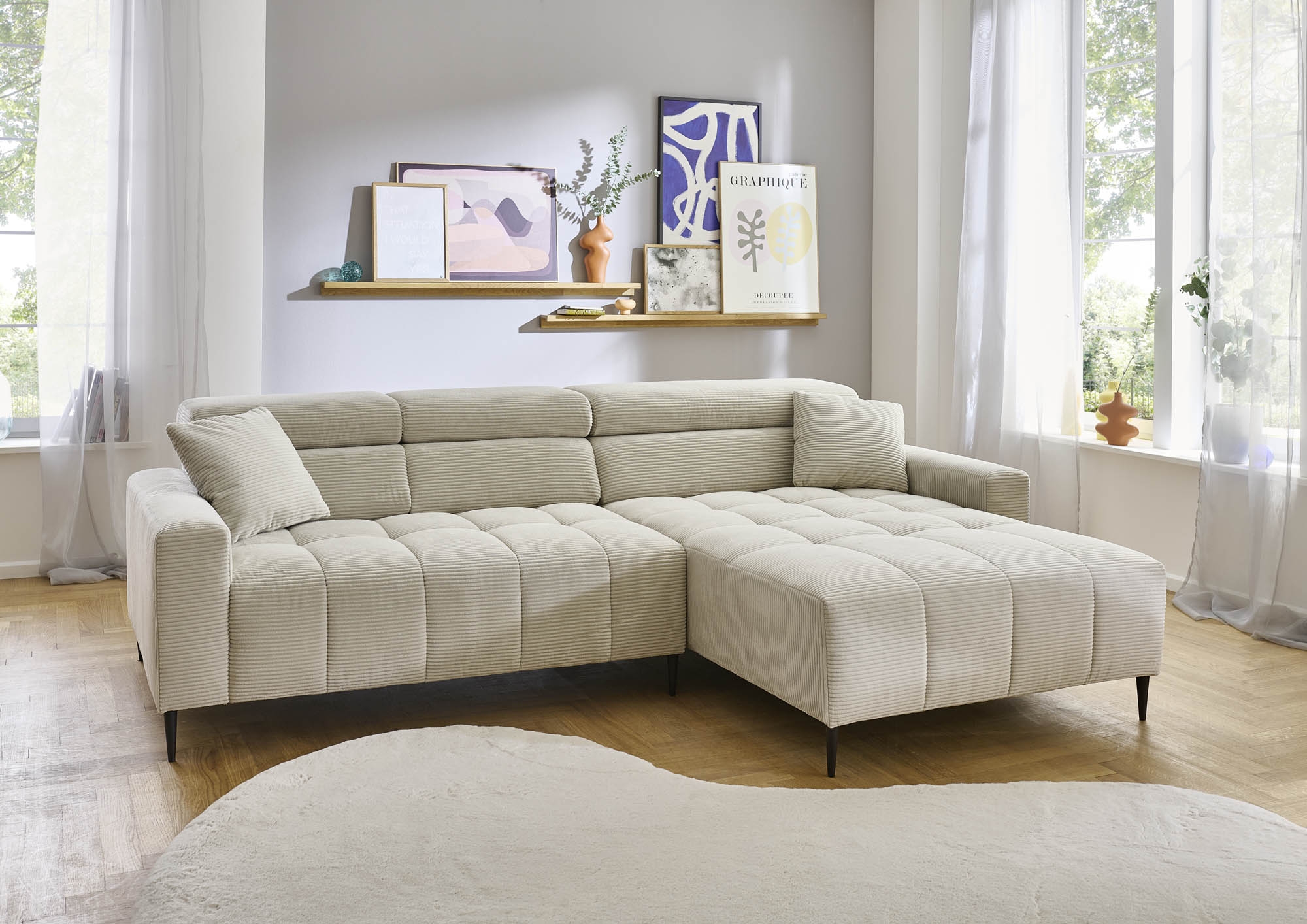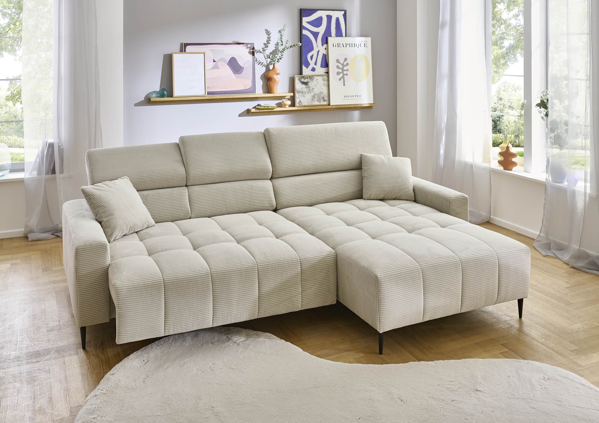 Equipement canapés: | Méridienne à droite, Prolongement de l'assise motorisé, incl. coussins |