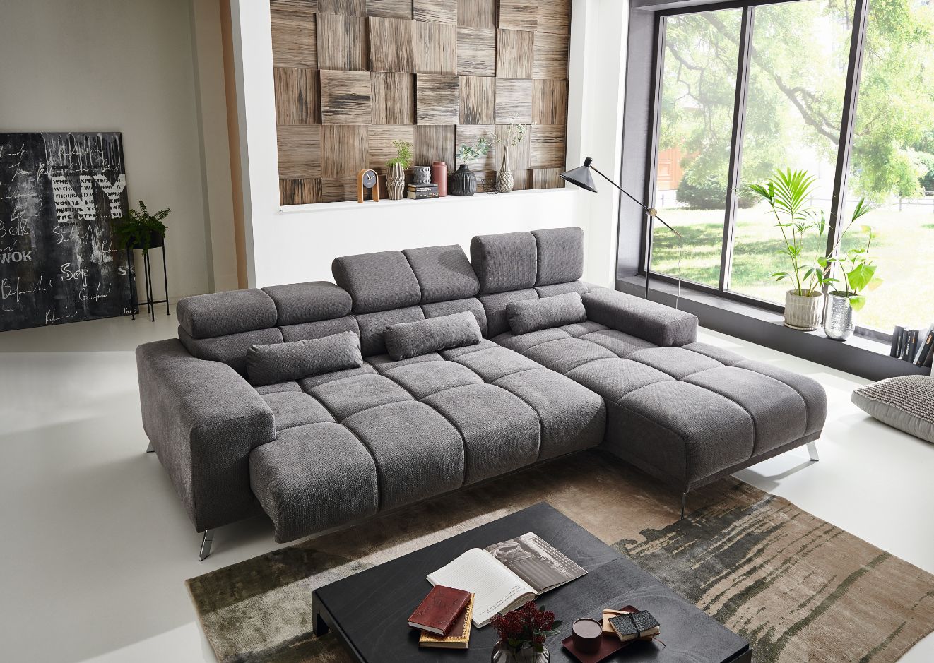| Equipement canapés: | Méridienne à droite, Prolongement de l'assise motorisé, incl. coussins | ||