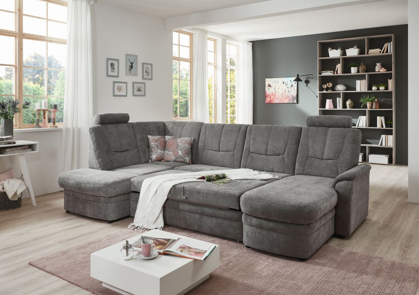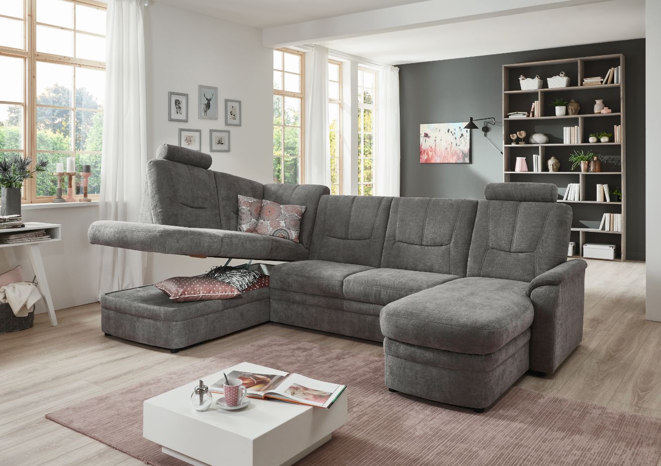 1 élément combiné 1 place à gauche incl. pouf intégré équipé d'un coffre avec couvercle rabattable, 1 appuie-tête à gauche