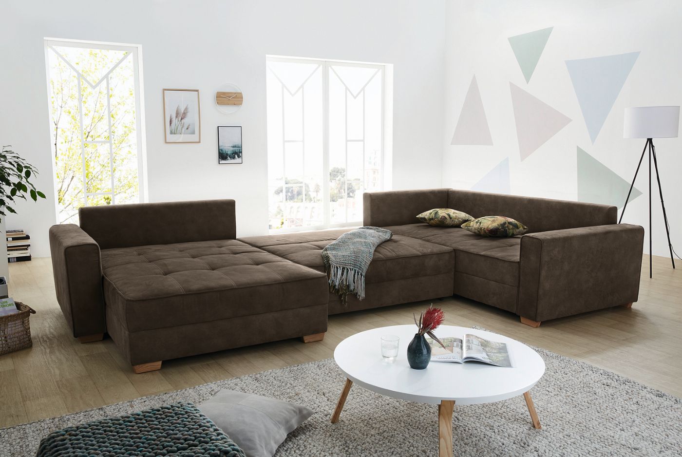 | Equipement canapés: | Dos habillé, Méridienne à droite ou à gauche, incl. coffre de lit, incl. coussins | ||