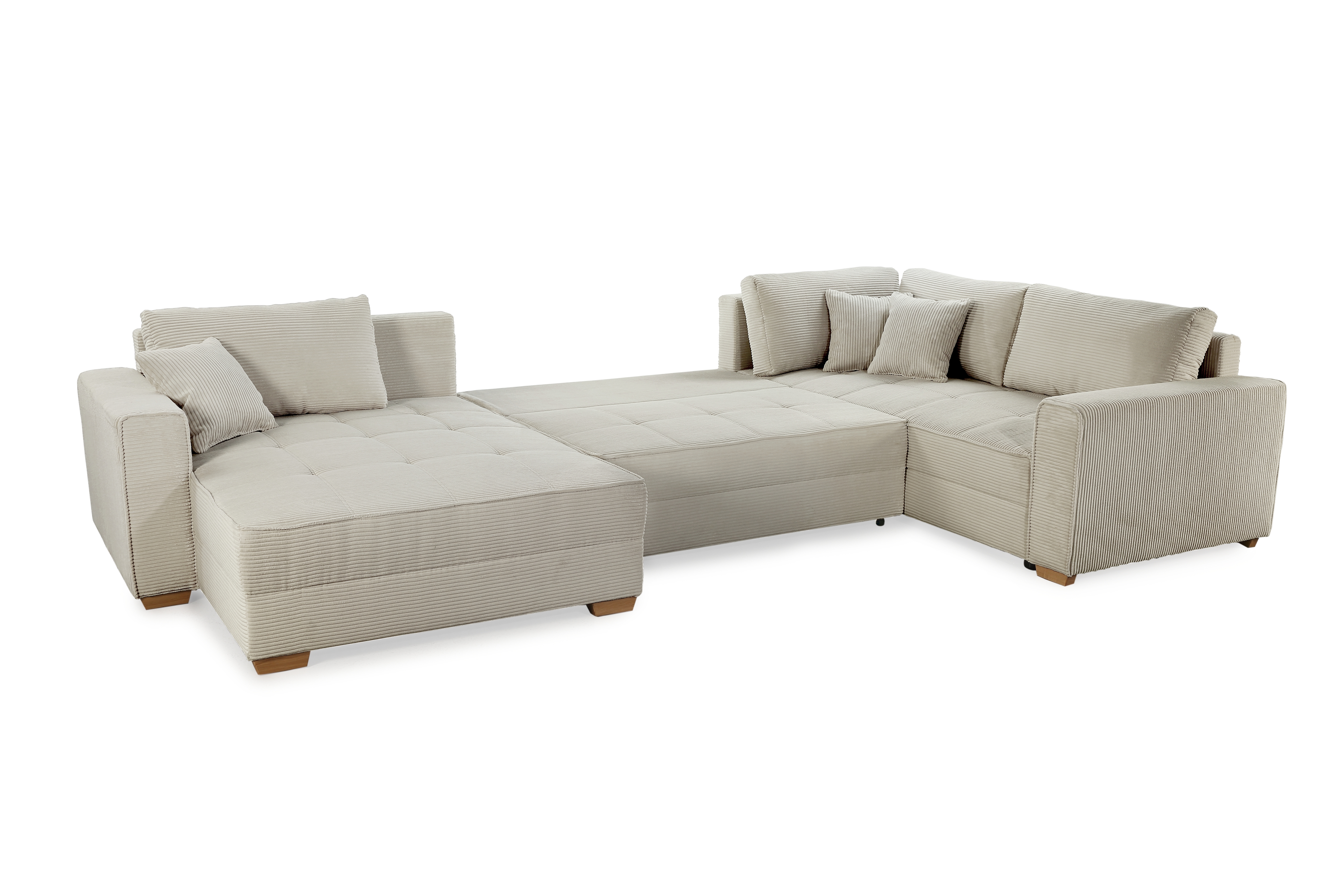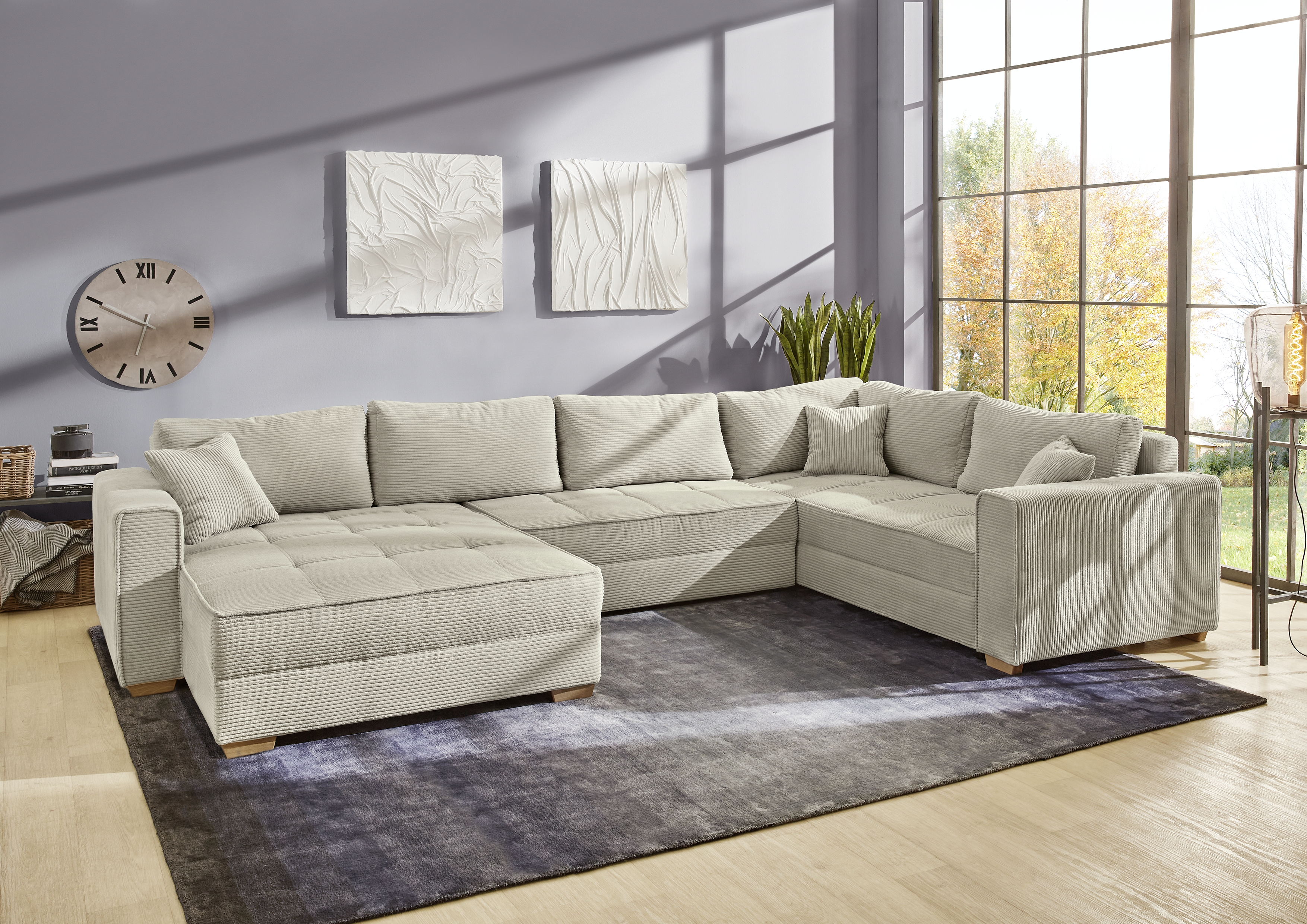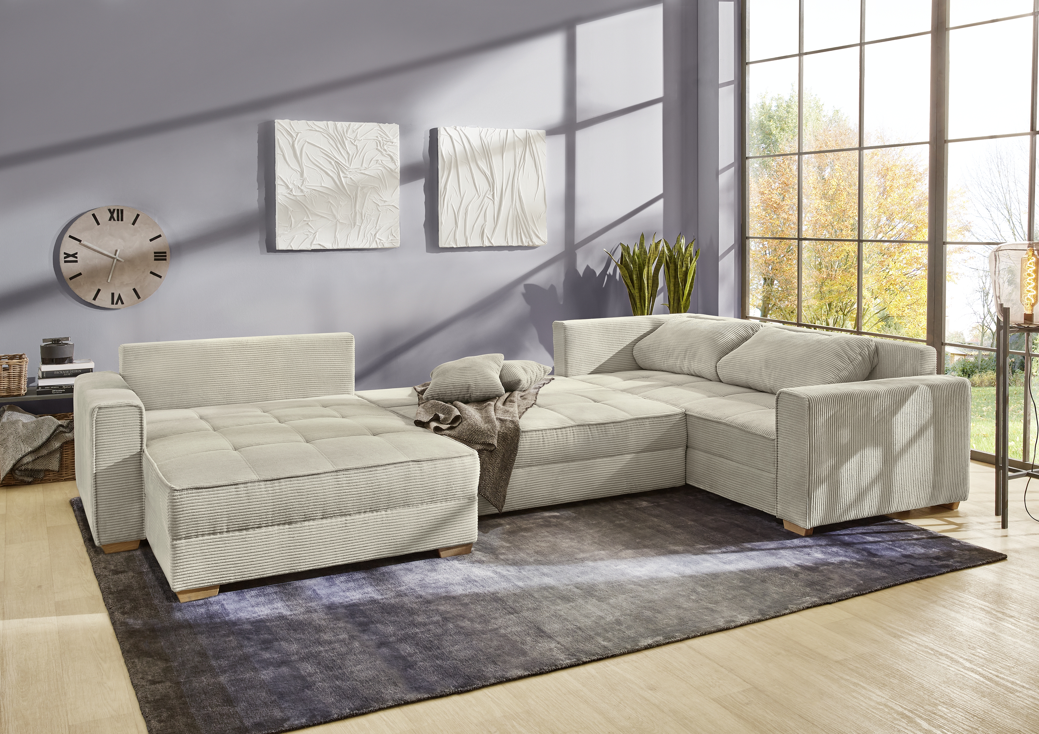 Equipement canapés: | Dos habillé, Méridienne à droite ou à gauche, incl. coffre de lit, incl. coussins |