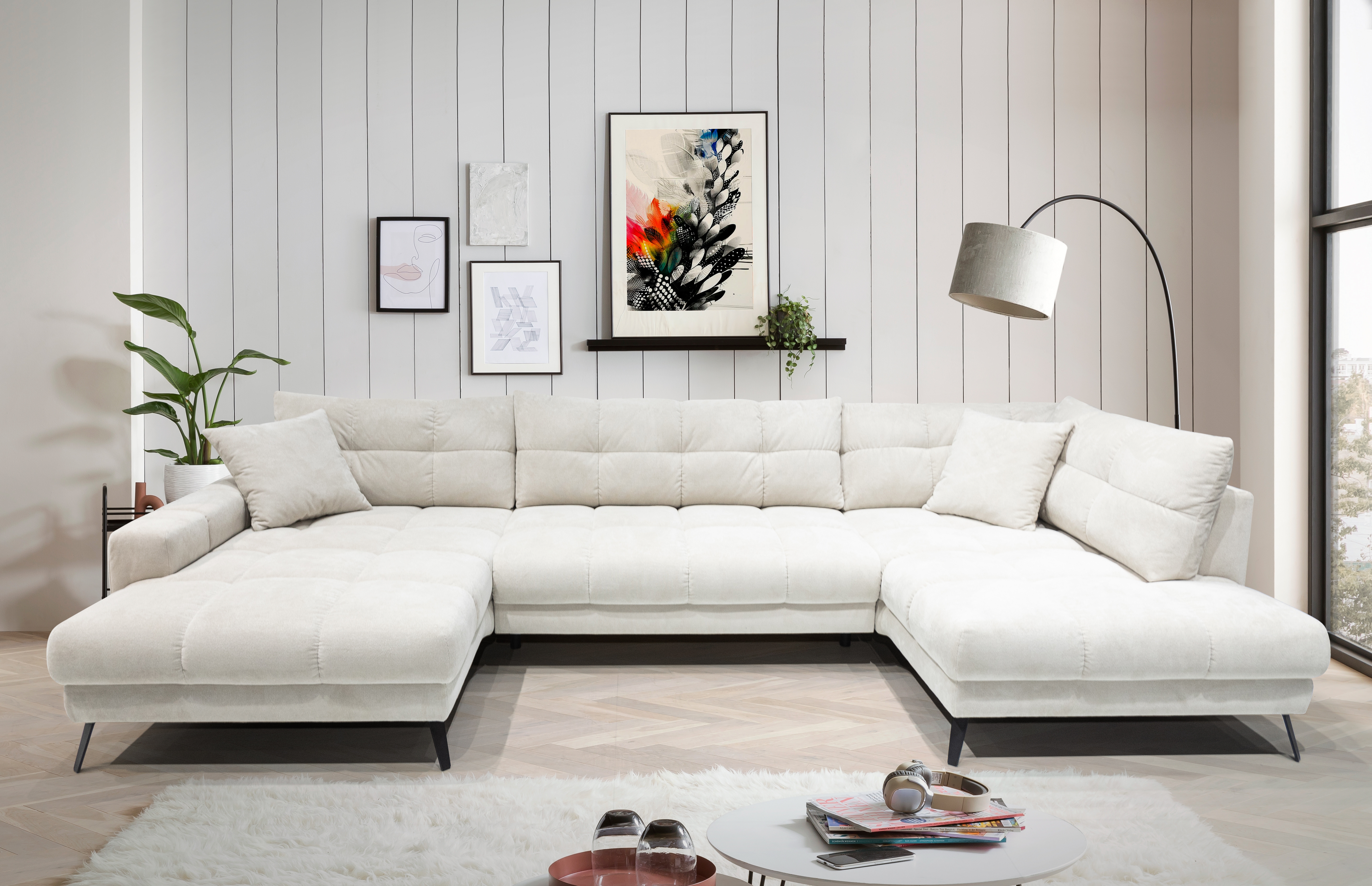 | Equipement canapés: | Dos habillé, Méridienne à droite ou à gauche, incl. coffre de lit, incl. coussins | ||