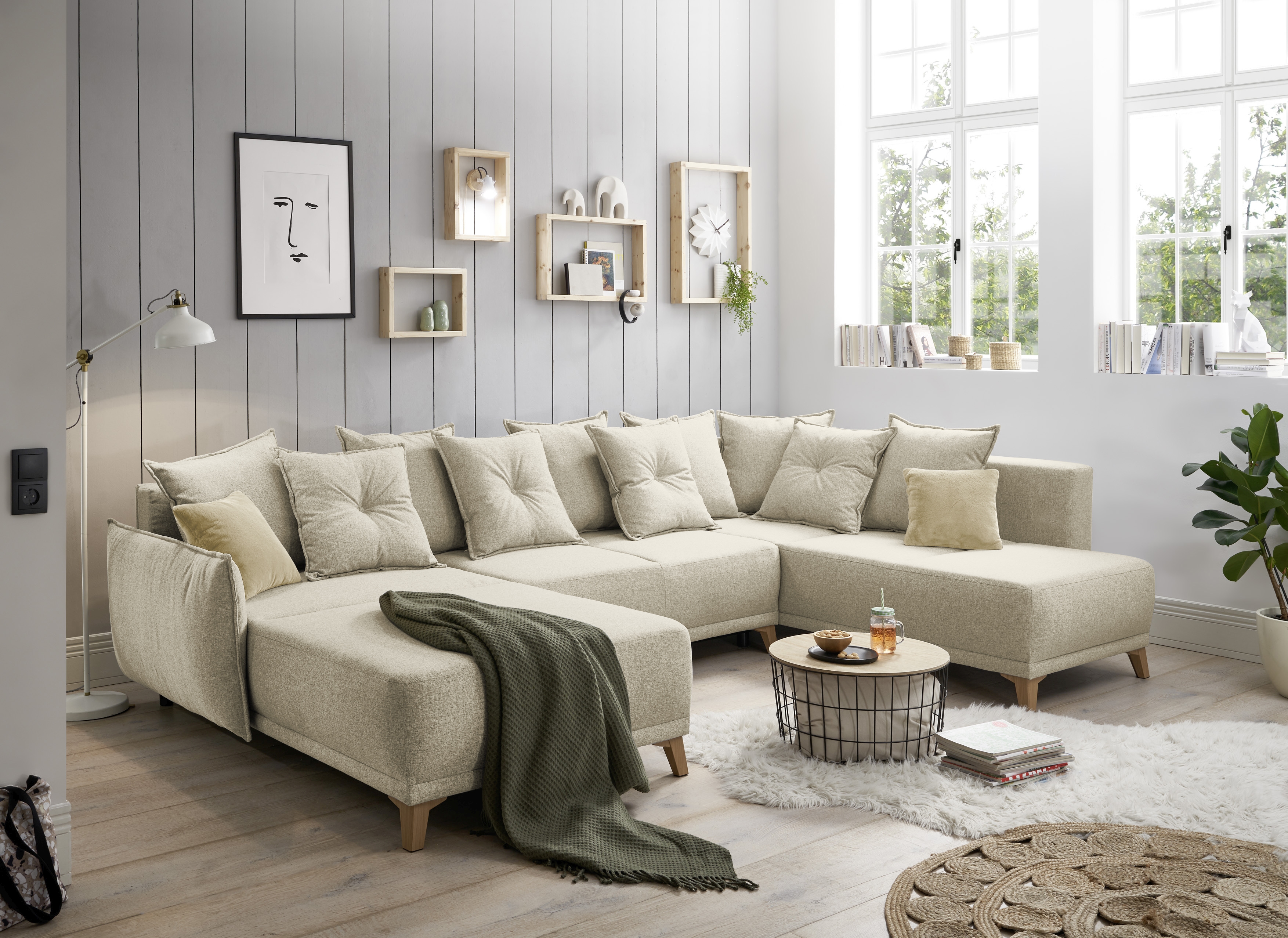 | Equipement canapés: | Dos habillé, Méridienne à droite ou à gauche, incl. coffre de lit, incl. coussins | ||