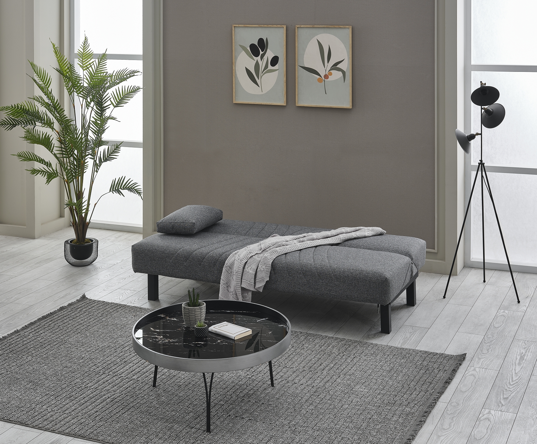 Ce canapé-lit allie fonctionnalité pratique et équipement solide – idéal pour le salon ou la chambre d'amis. Le revêtement en tissu résistant Papermoon 31 est facile d'entretien et adapté à un usage quotidien. L'assise et le dossier sont équipés d'un noyau à ressorts Bonell qui assure un confort uniforme. La fonction lit intégrée permet de le transformer rapidement en surface de couchage, ce qui est pratique lorsque vous avez des invités à l'improviste. Deux coussins décoratifs complètent le canapé sur le plan esthétique et fonctionnel. Le dossier n'est pas rembourré, ce qui permet de placer le canapé contre un mur. Le canapé-lit est livré sans décoration.