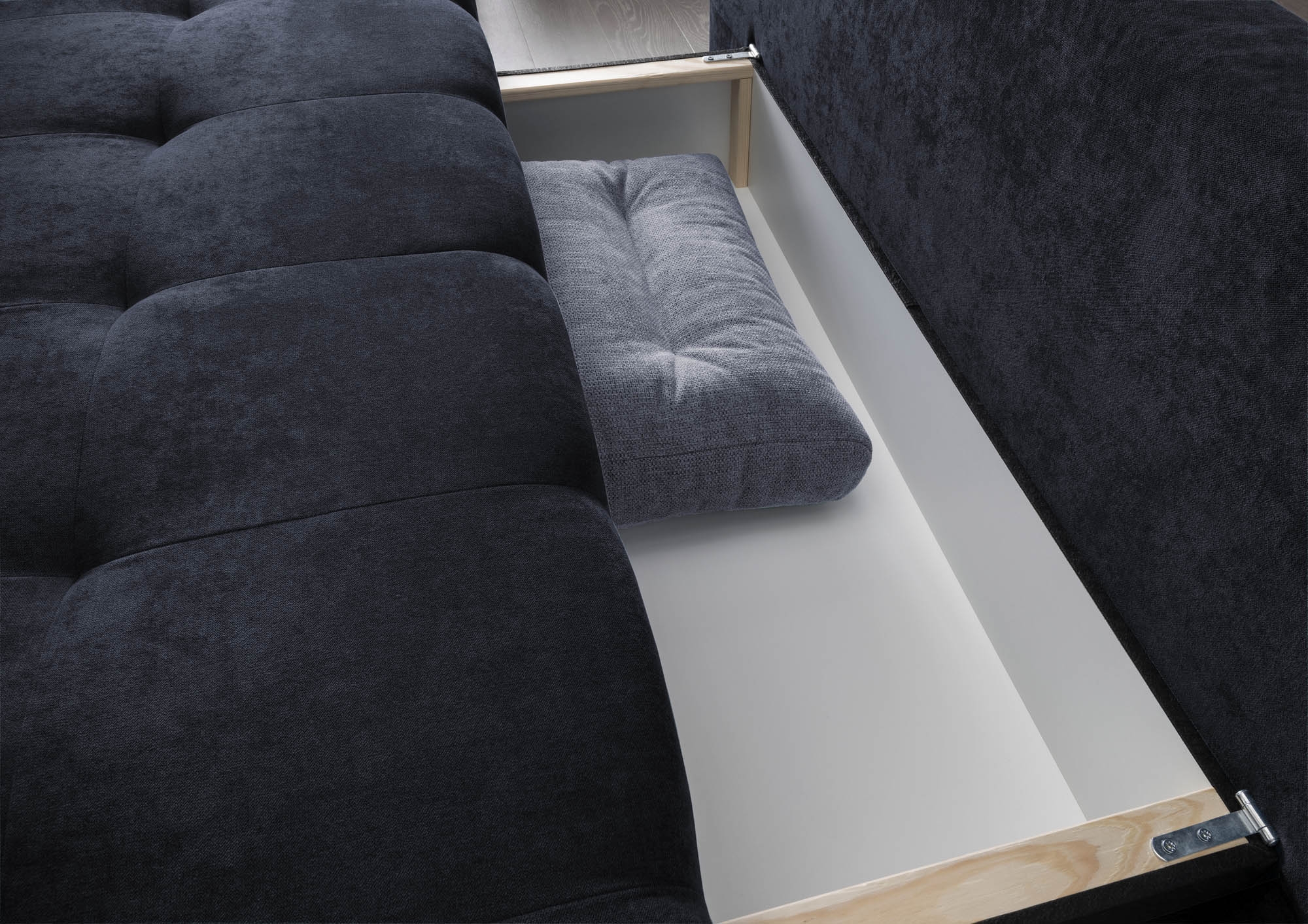 | Equipement canapés: | Dos habillé, incl. coffre de lit, incl. coussins | ||