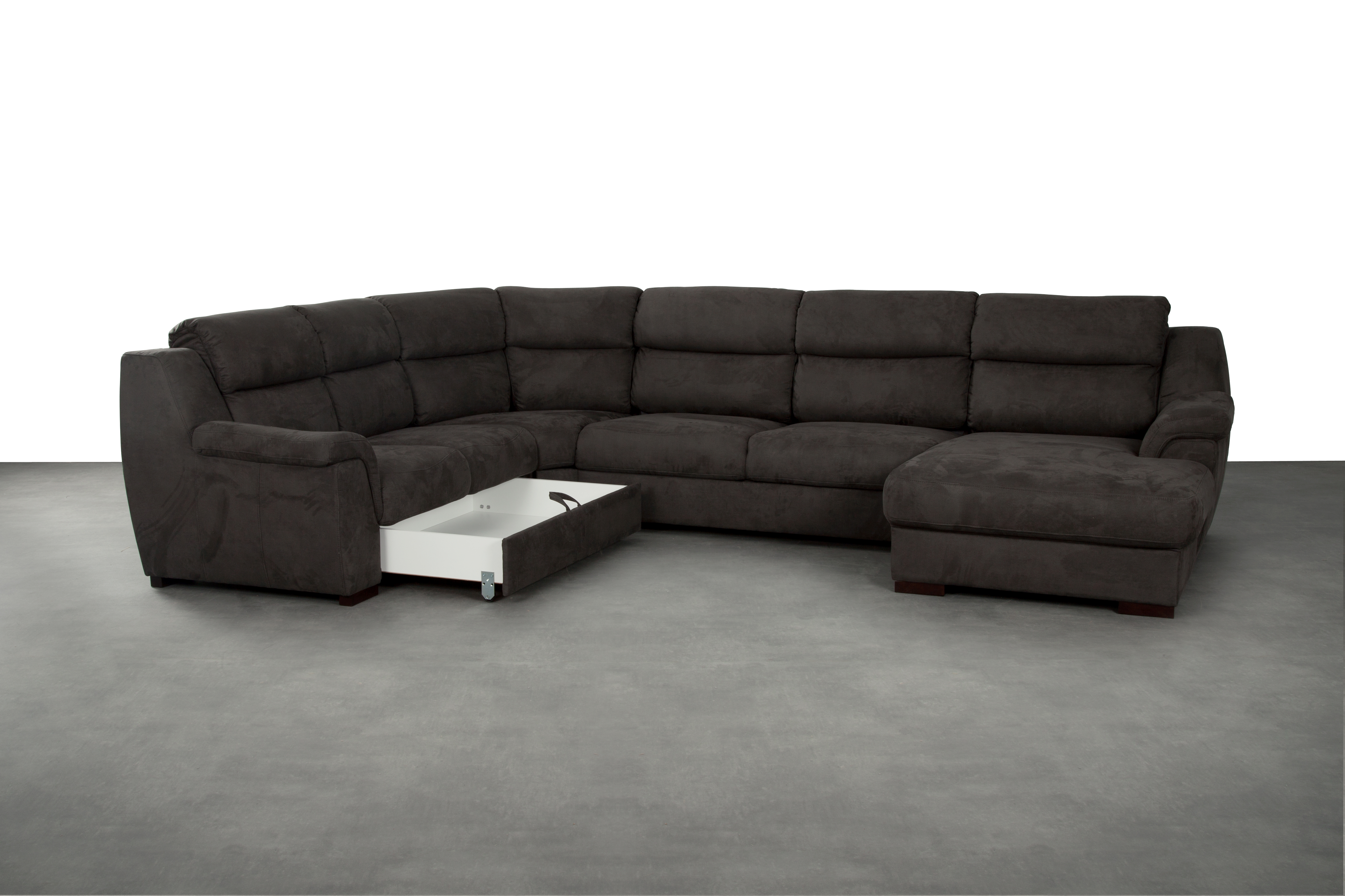 Equipement canapés: | Dos habillé, Méridienne à droite, incl. coffre de lit |