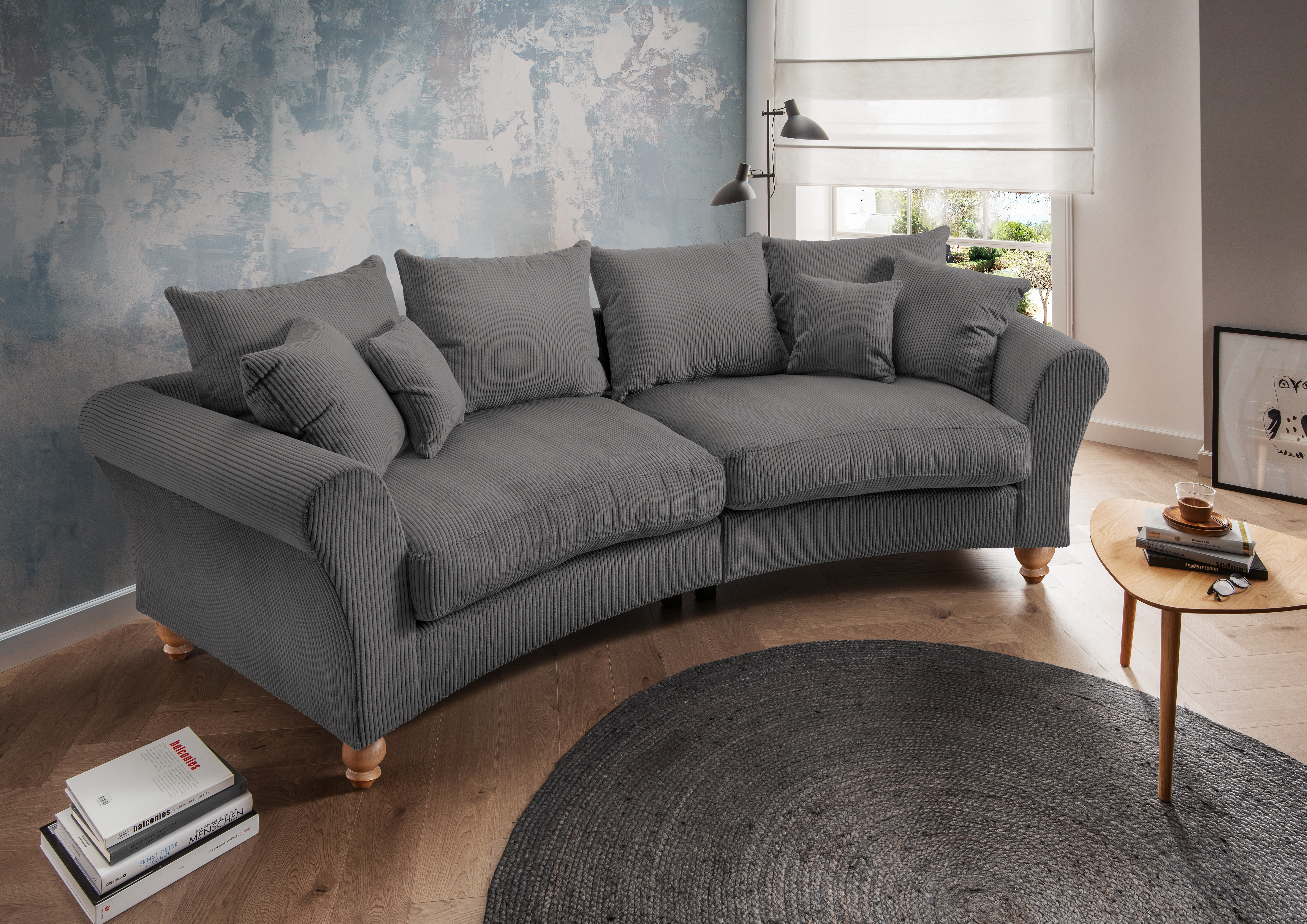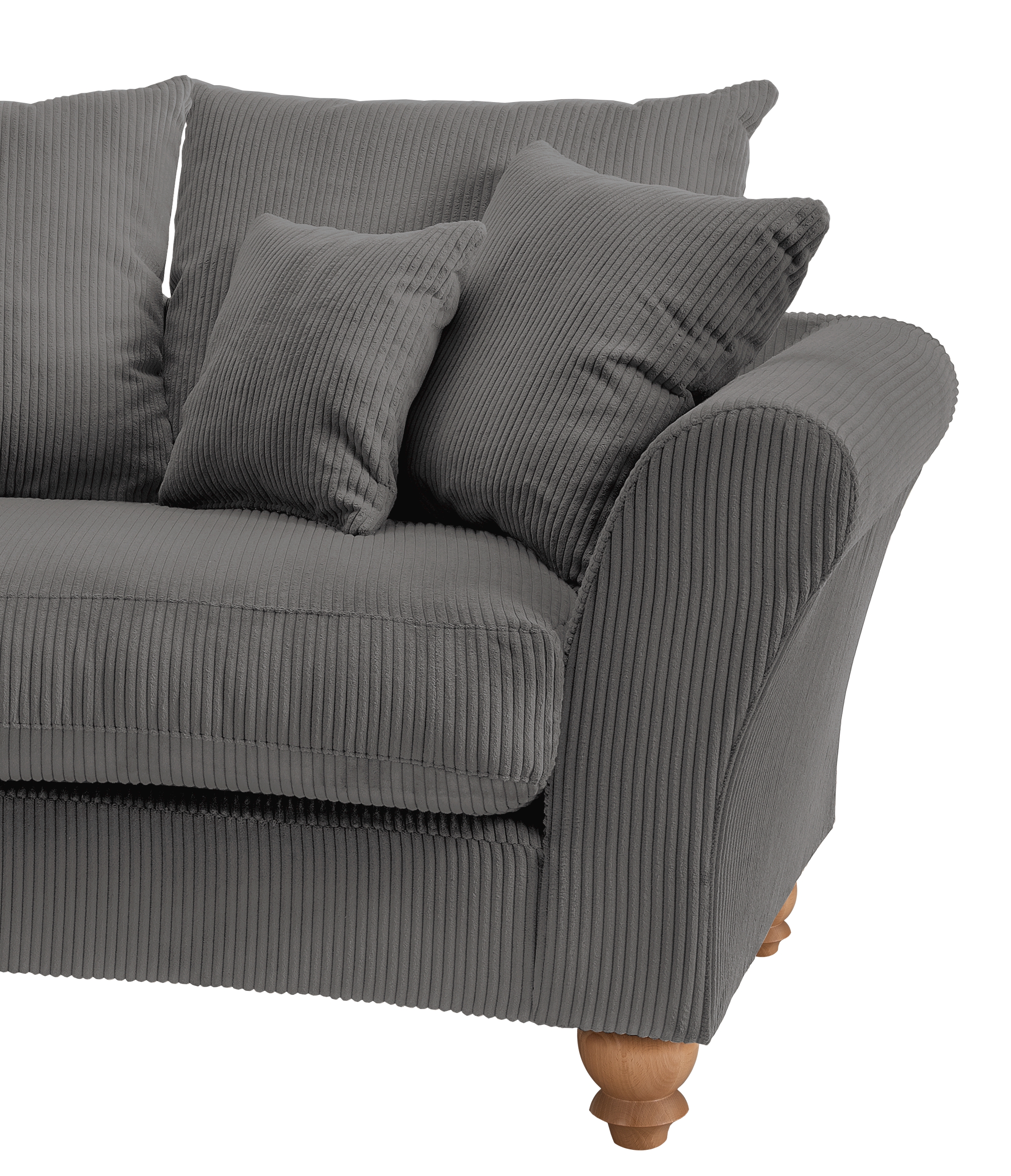 Revêtement : tissu velours Allover 4801 ton gris 100% polyester; coussins décoratifs en velours côtelé ton gris 4802, 100% polyester