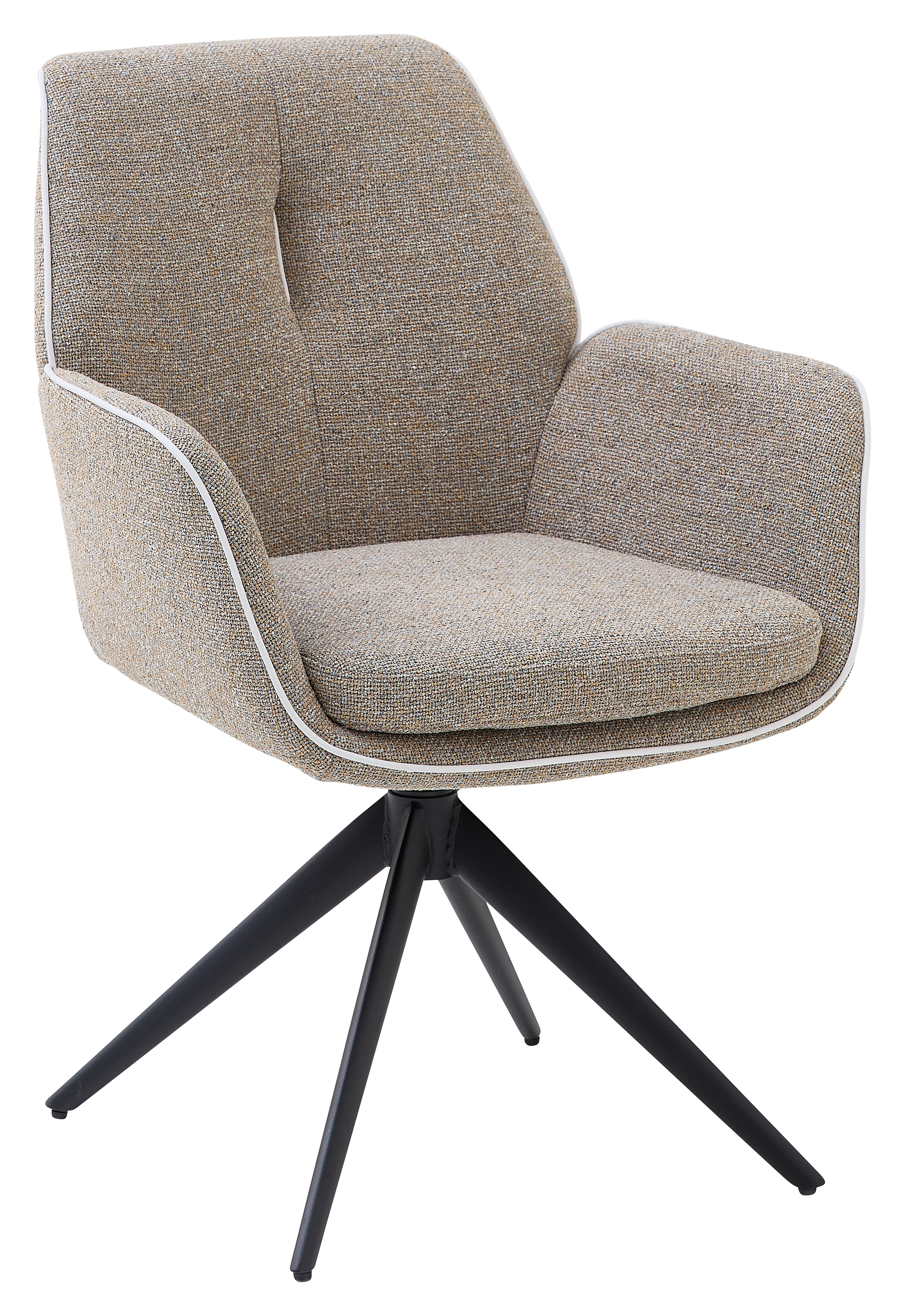 La chaise à quatre pieds avec accoudoirs est un siège polyvalent et fonctionnel pour la salle à manger, combinant confort et design moderne.