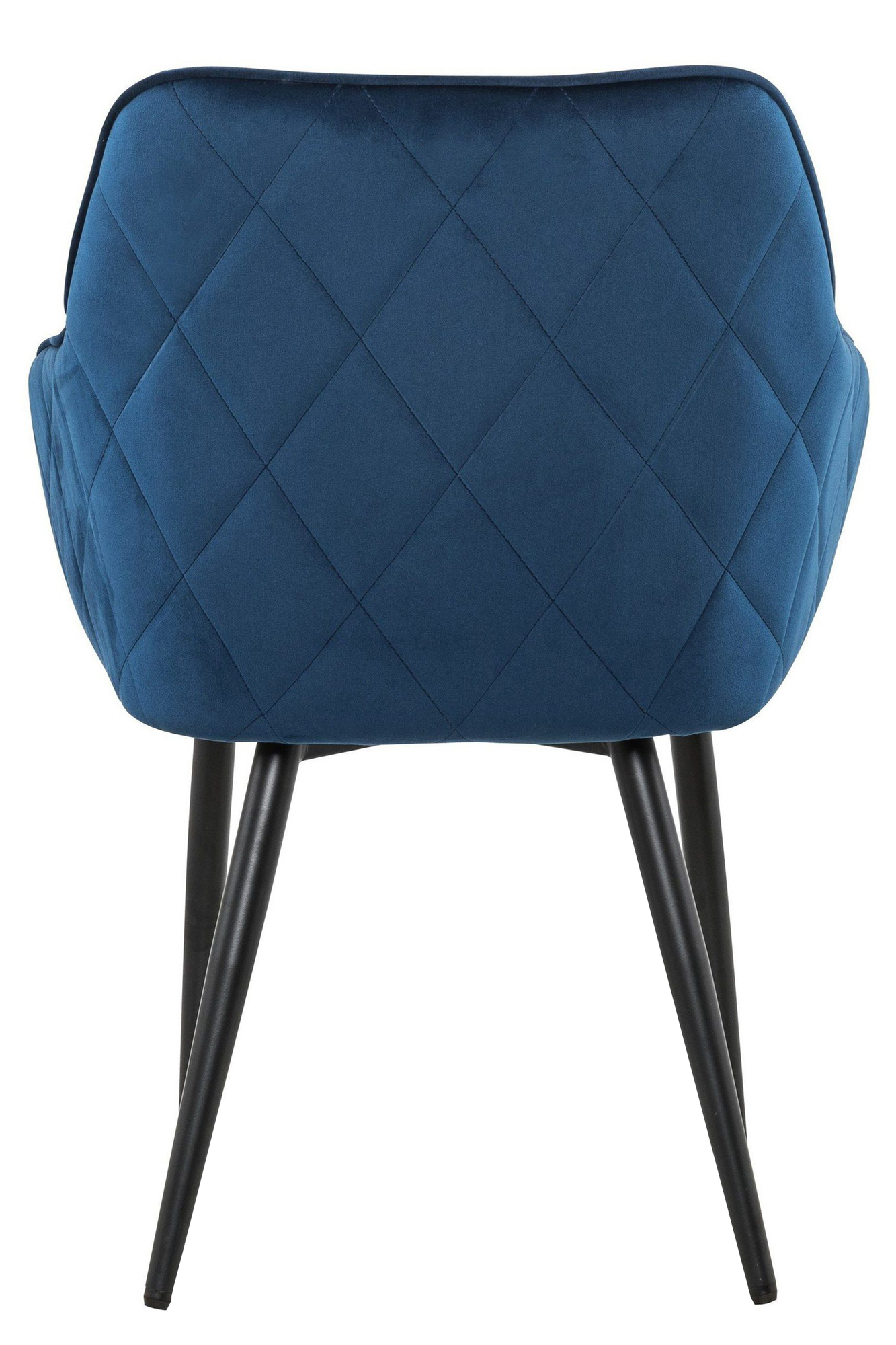 Cette chaise rembourrée tendance séduit par son revêtement en tissu aspect velours et par son rembourrage au niveau de l'assise et du dossier. Les 4 pieds légèrement en biais en métal noir garantissent une excellente stabilité tout en offrant un superbe contraste avec le revêtement de la chaise. Grâce au rembourrage confortable, au dossier et aux accoudoirs, vous bénéficierez d'un confort d'assise haut de gamme. Les surpiqûres en forme de losanges, qui s'étendent sur la partie extérieure de l'assise et du dossier, attirent tous les regards.