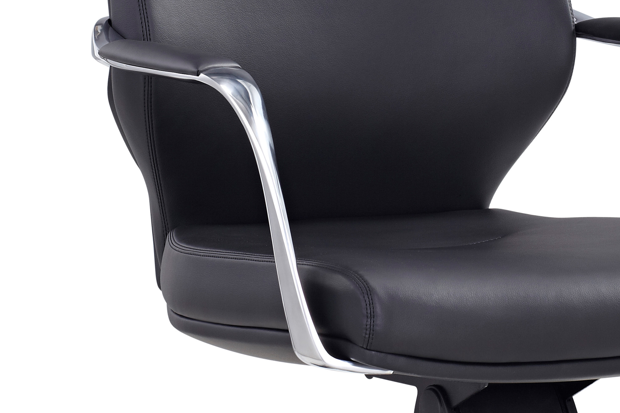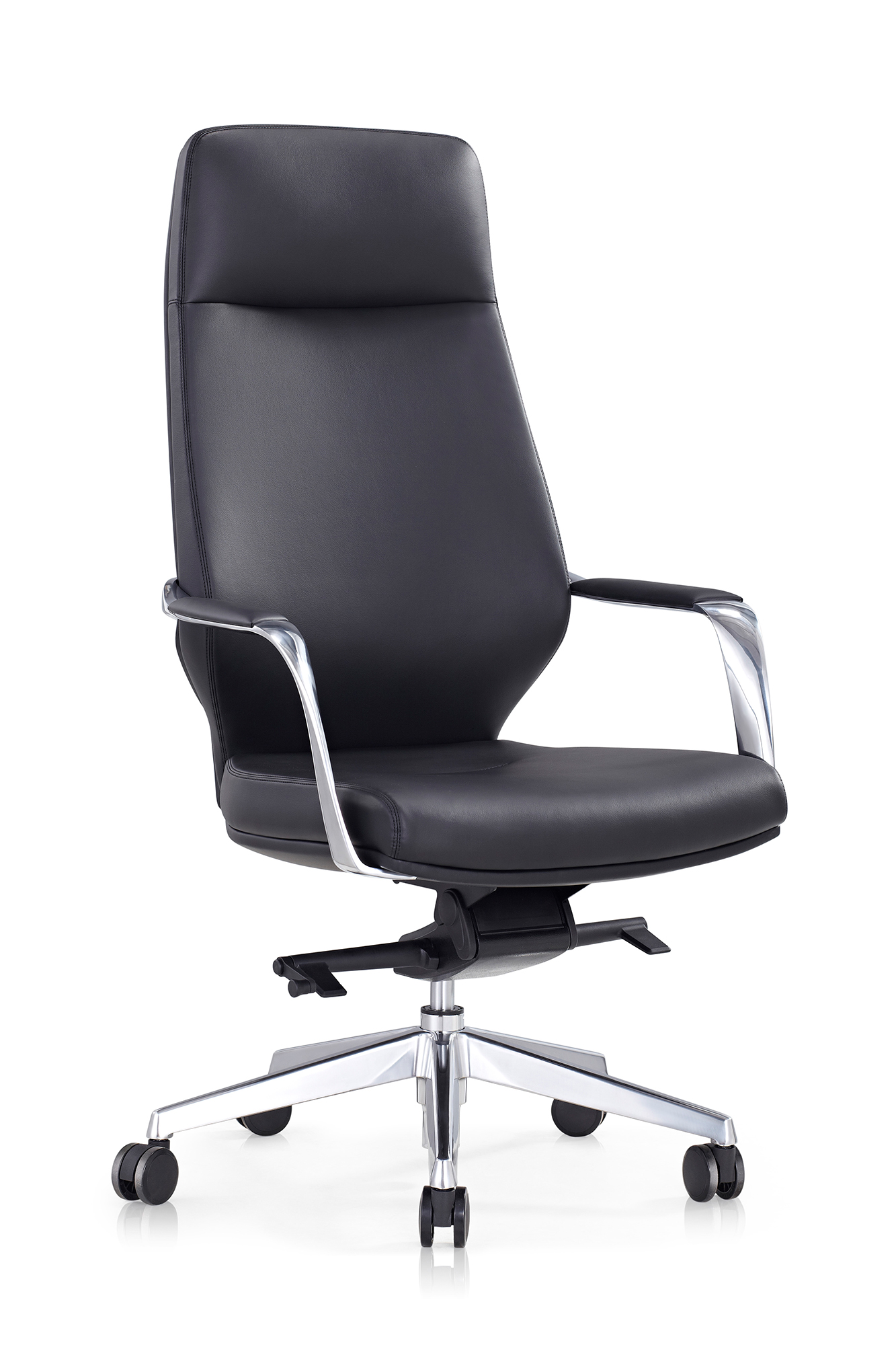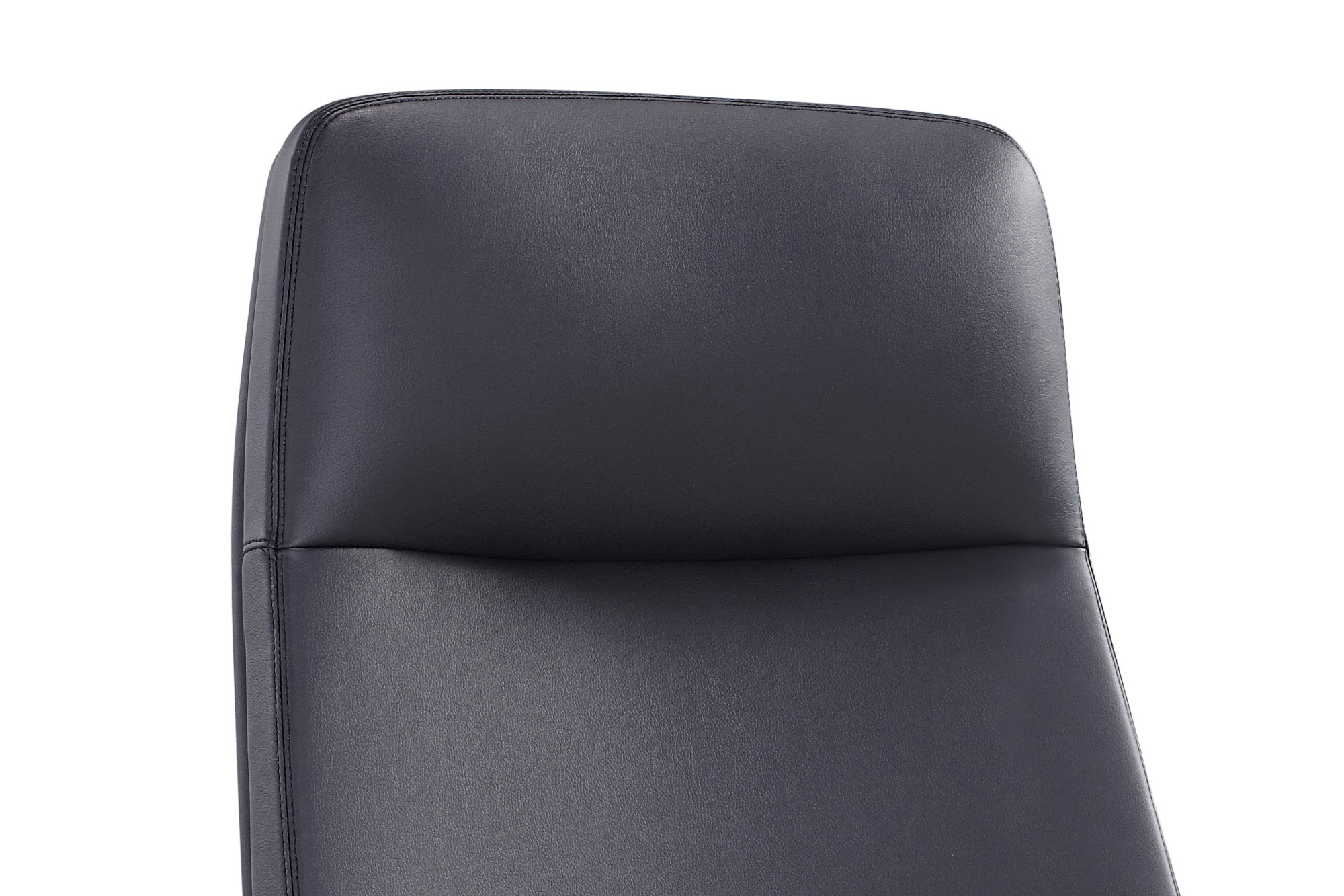 La chaise de bureau se distingue par l'association du ton noir classique et de l'aspect chrome brillant. L’assise, le dossier et les accoudoirs sont en cuir synthétique noir. Le piètement esthétique et stable aspect chrome garantit une assise sûre et stable tout en offrant un contraste parfait avec le cuir synthétique noir. Les 5 roulettes doubles offrent une moindre résistance au roulement et sont de qualité robuste. Grâce au rembourrage agréable, aux accoudoirs à hauteur de travail et au dossier avec appuie-tête et maintien lombaire, vous bénéficierez d’une assise au confort optimal vous permettant d’adopter automatiquement une position saine et ergonomique. La hauteur d’assise de la chaise pivotante est réglable ; elle peut aussi tourner à 360 degrés. Le mécanisme d’inclinaison et de rotation intégré vous permettra de trouver facilement votre position préférée. Vous apprécierez le design sophistiqué de cette chaise de bureau. Le revêtement en cuir synthétique du fauteuil de direction est très facile d’entretien et robuste. Les petites saletés peuvent facilement être enlevées avec un chiffon légèrement mouillé. Le piètement peut être nettoyé avec un chiffon en coton sec ou même légèrement humide.