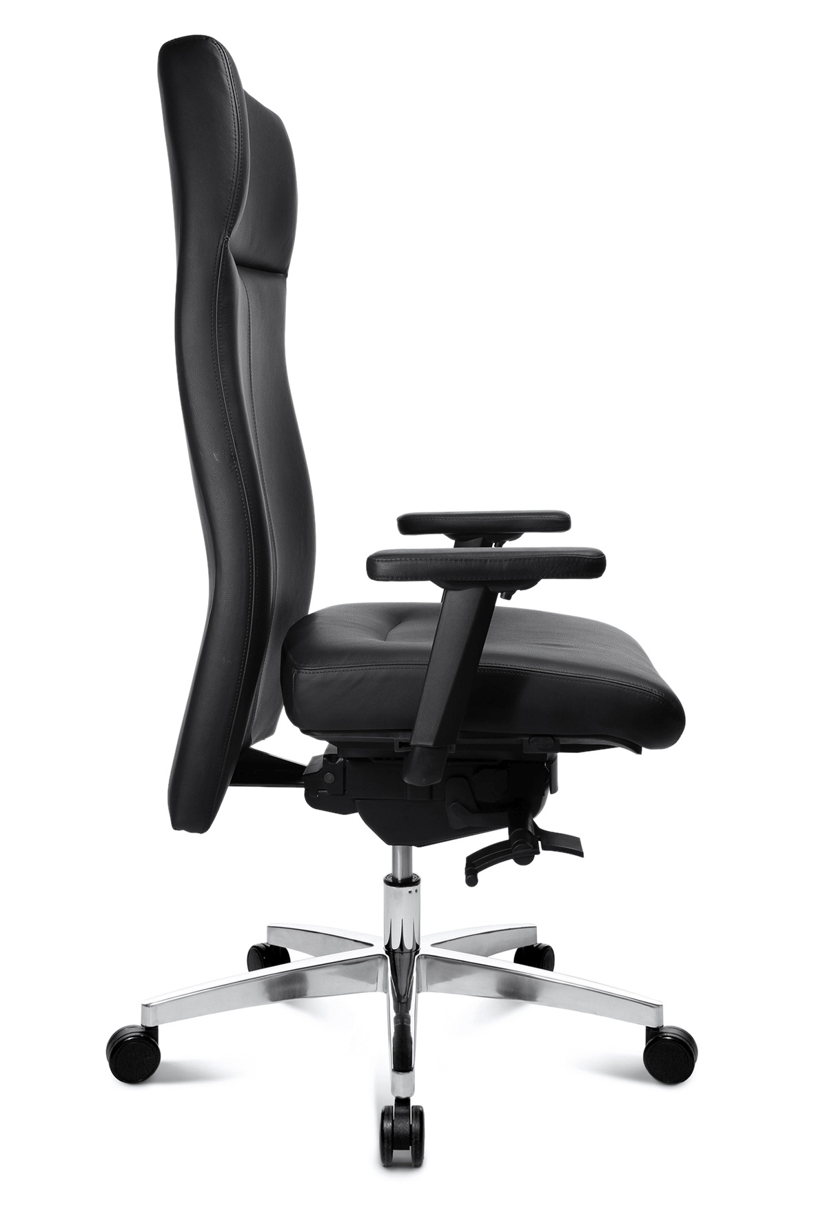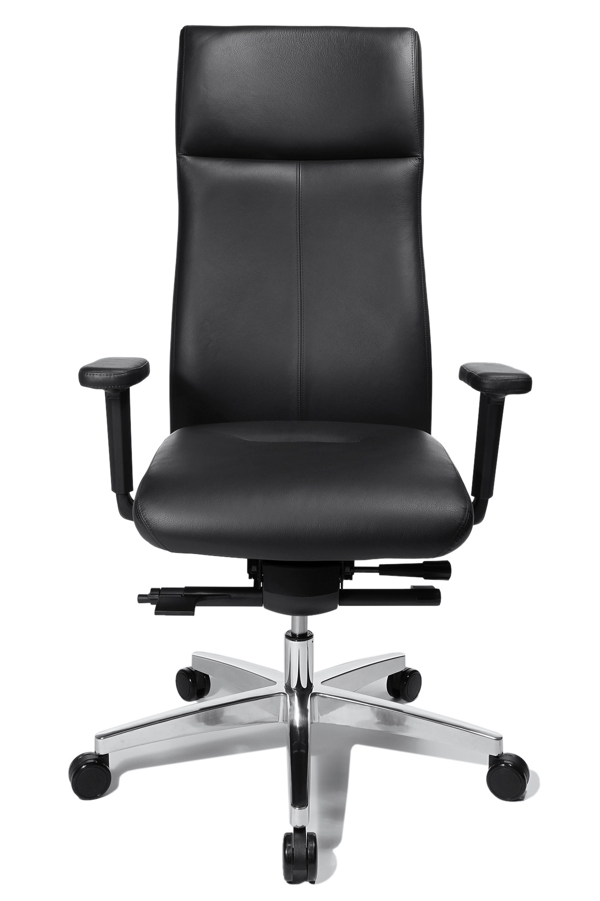 Assise ergonomique confortable en cuir véritable, incluant articulation Sitness et réglage de la profondeur d'assise