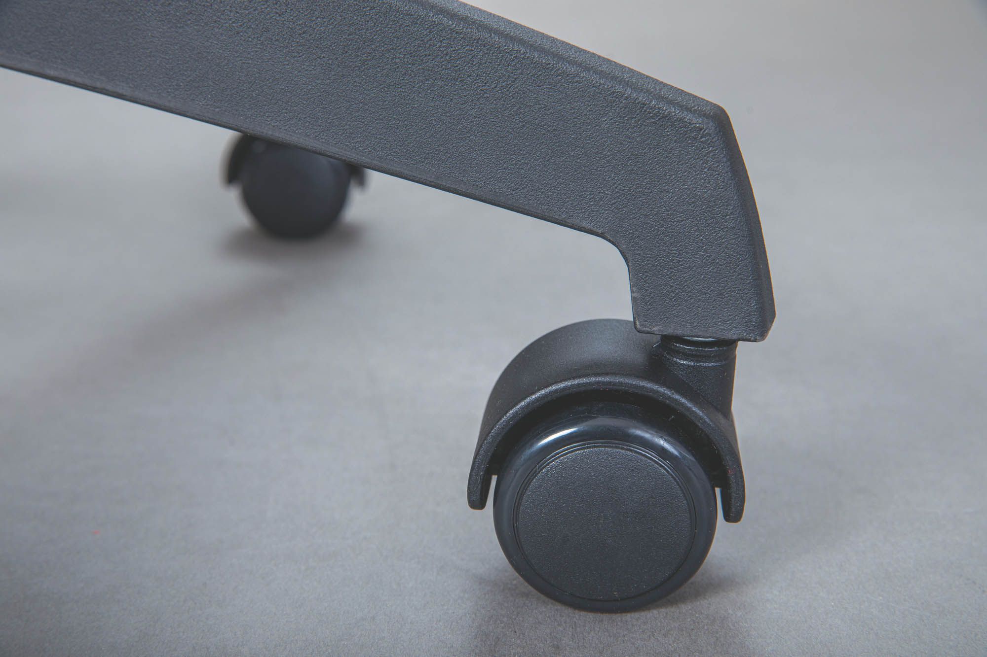 Le piètement en plastique noir est équipé de roulettes de sécurité autofreinées offrant une grande stabilité.