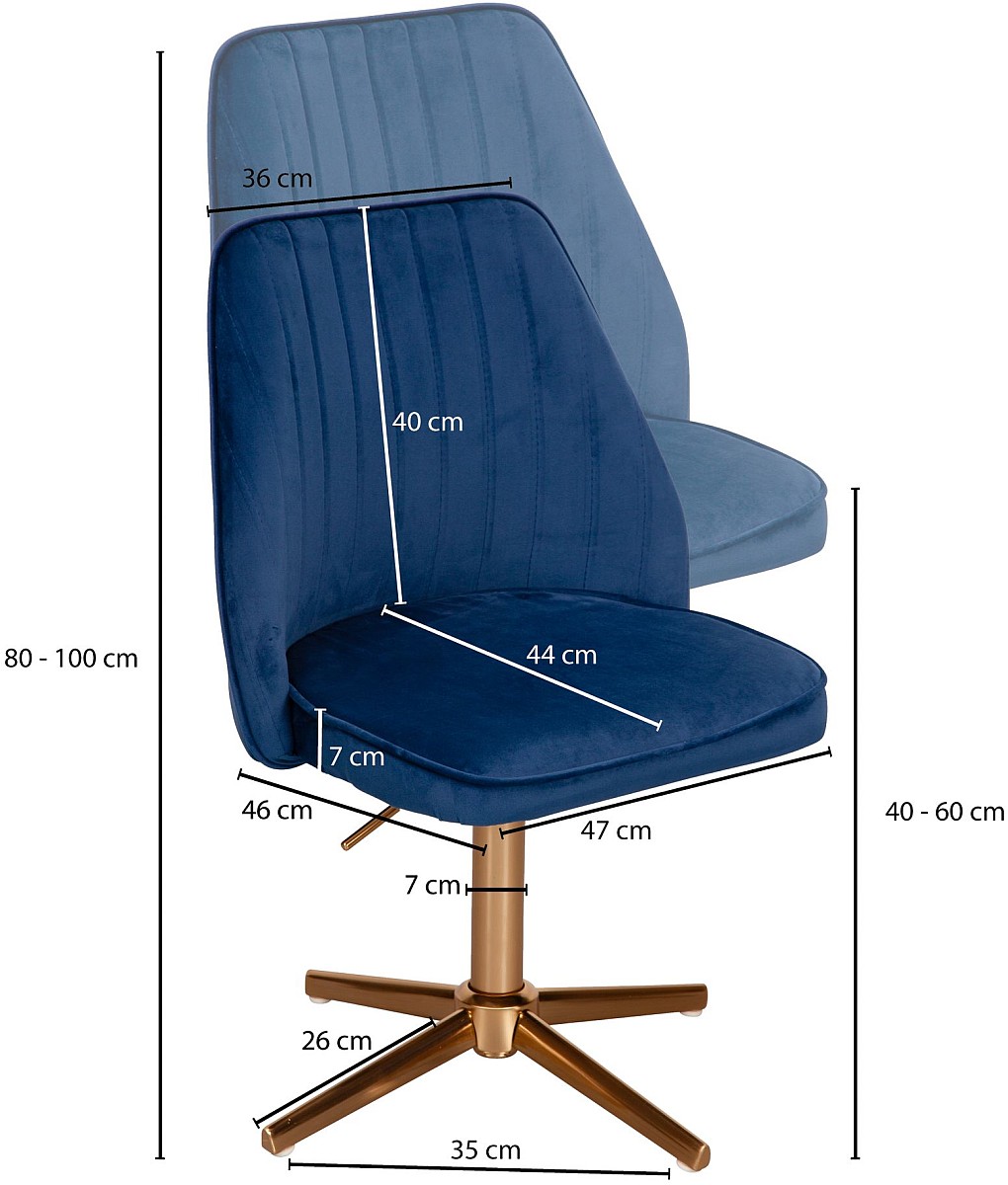 DIMENSIONS ✔ Hauteur : 80 - 100 cm // Largeur : 60 cm // Profondeur : 60 cm // Hauteur d'assise : 40 - 60 cm // Assise (L x P) : 47 x 44 cm // Vous trouverez plus de dimensions sur l'image correspondante
