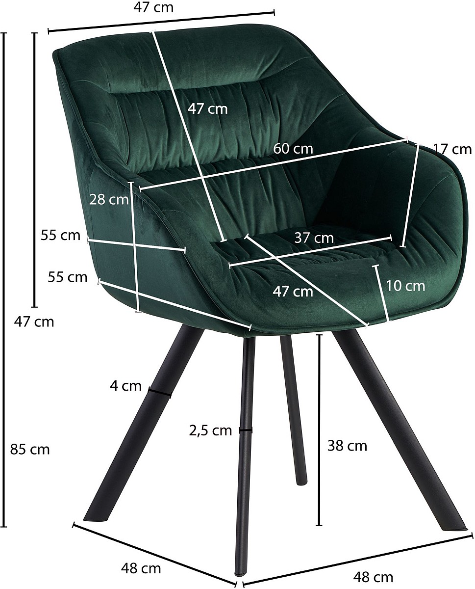 DIMENSIONS ✔ Largeur : 60 cm // Hauteur : 85 cm // Profondeur : 64 cm // Hauteur d'assise : 48 cm // Surface d'assise (LxP) : 37 x 47 cm // Poids maxi conseillé : 110 cm // Vous trouverez d'autres dimensions sur l'image correspondante.