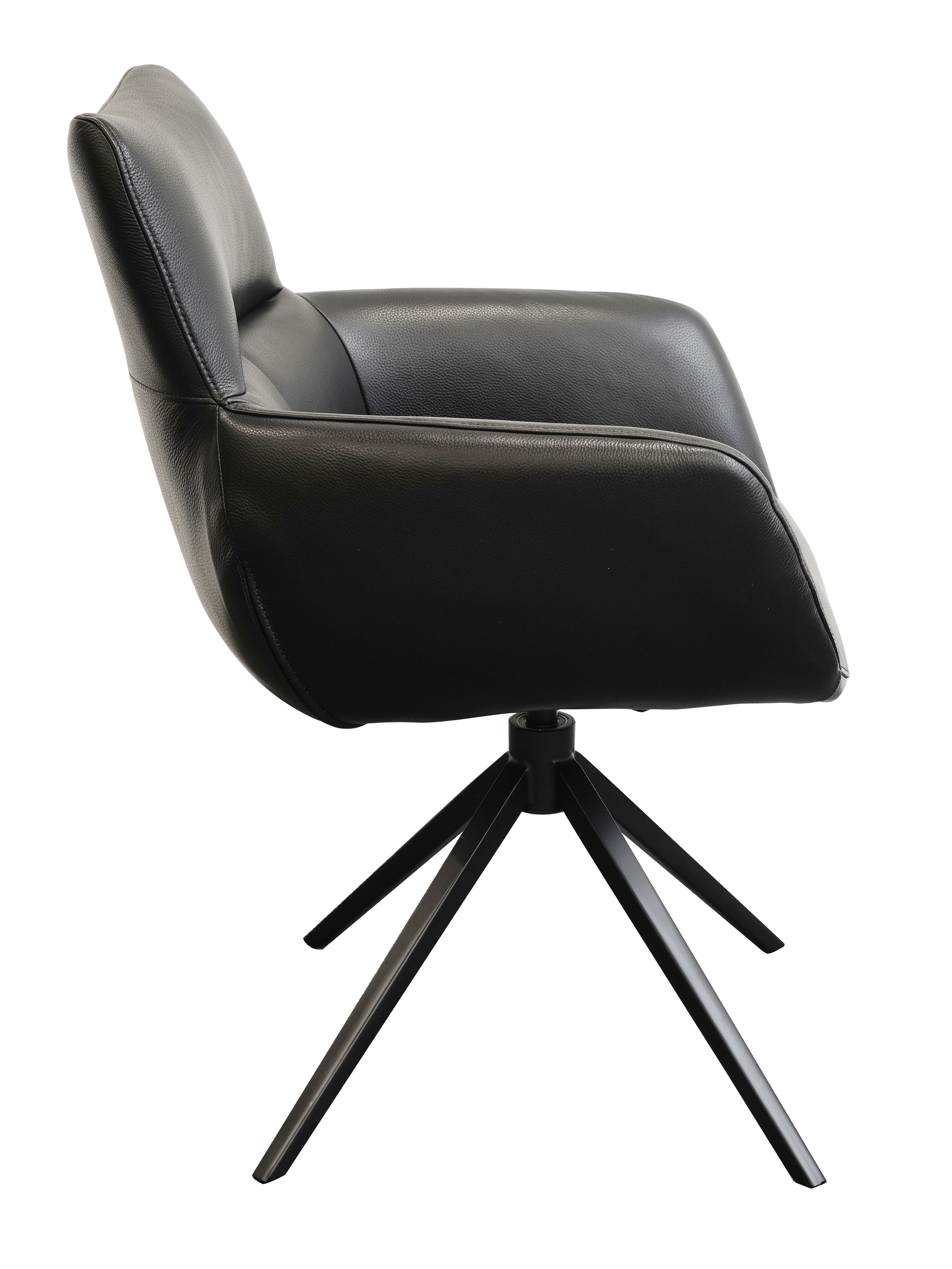 Cette chaise séduit par son design moderne et son grand confort d'assise. La structure en métal thermolaqué assure stabilité et sécurité, tandis que le revêtement en cuir de haute qualité offre un confort d'assise agréable. La fonction pivotante à 360° avec retour automatique permet une grande liberté de mouvement et ramène automatiquement la chaise dans sa position initiale. Les accoudoirs augmentent encore le confort et font de cette chaise le choix idéal pour les salles à manger ou les salons.