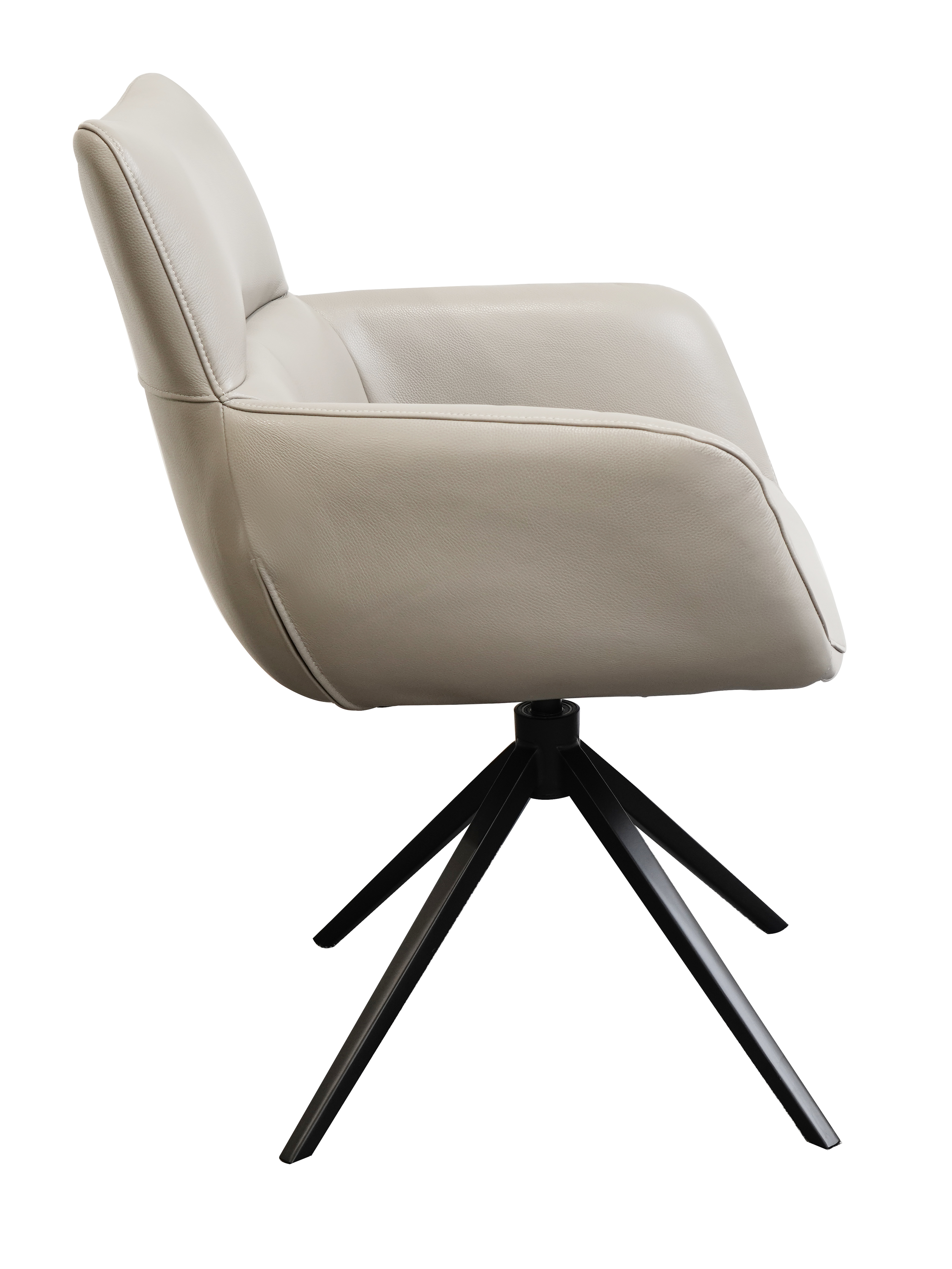 Cette chaise séduit par son design moderne et son grand confort d'assise. La structure en métal thermolaqué assure stabilité et sécurité, tandis que le revêtement en cuir de haute qualité offre un confort d'assise agréable. La fonction pivotante à 360° avec retour automatique permet une grande liberté de mouvement et ramène automatiquement la chaise dans sa position initiale. Les accoudoirs augmentent encore le confort et font de cette chaise le choix idéal pour les salles à manger ou les salons.