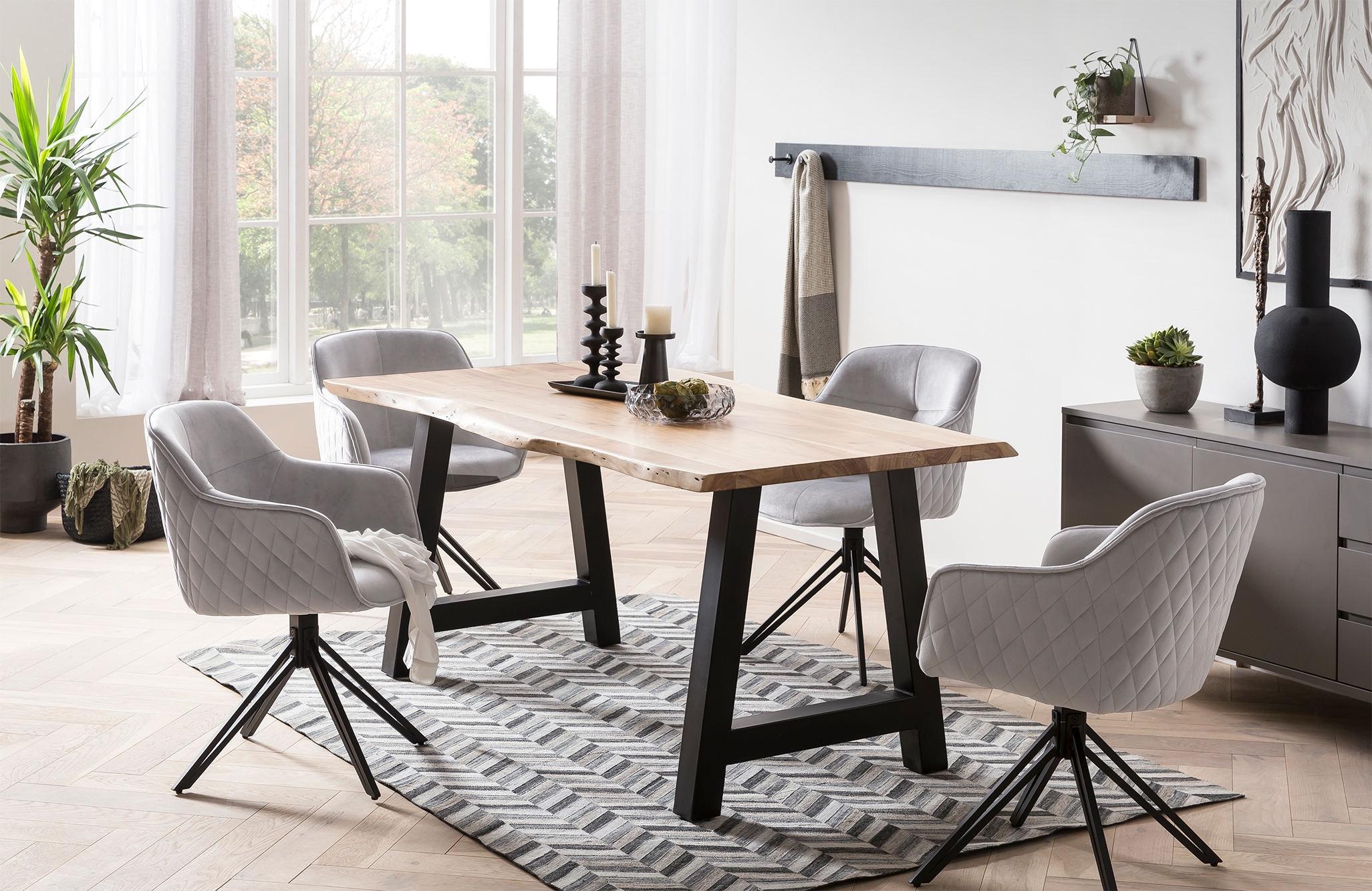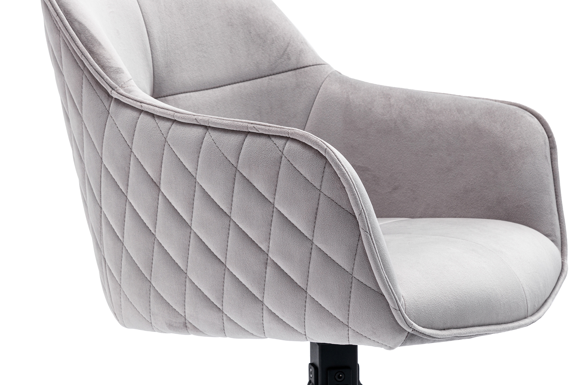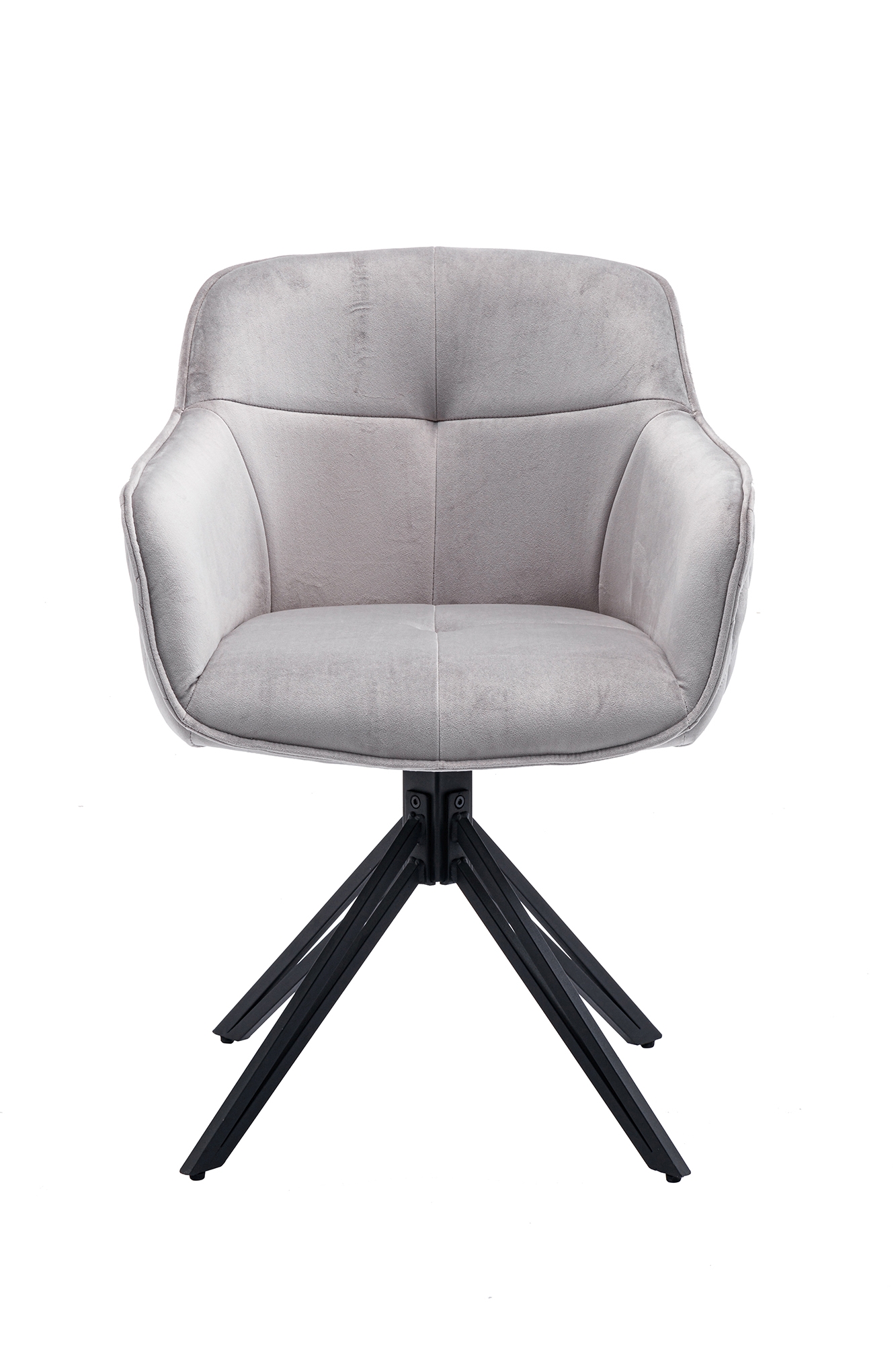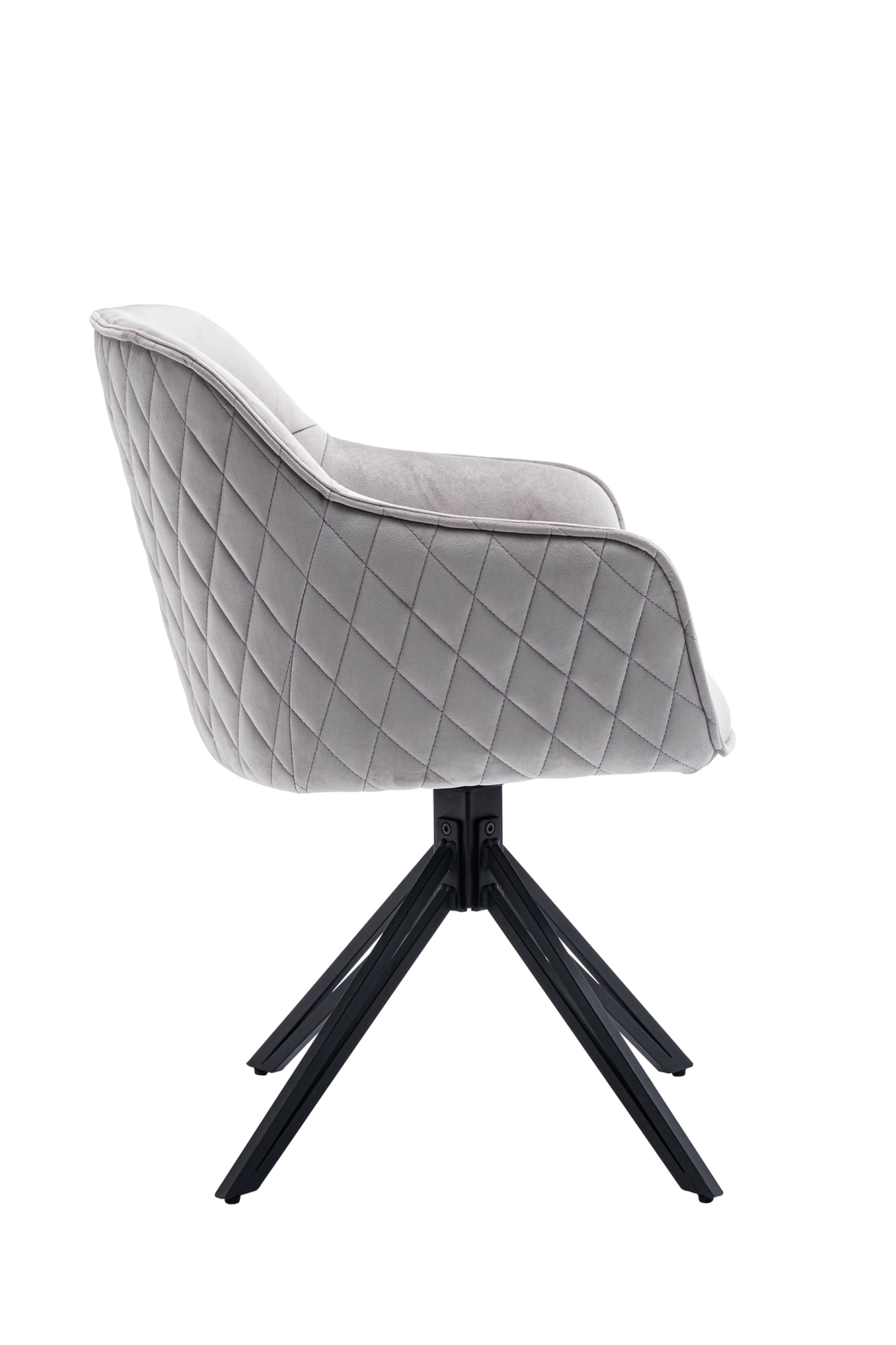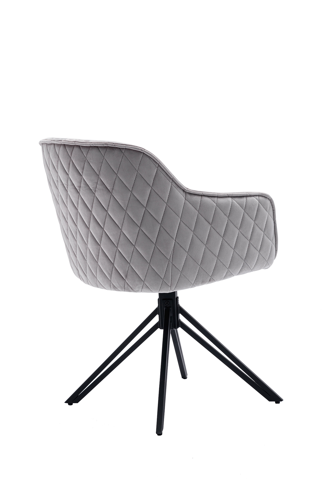 La chaise à accoudoirs stylée avec fonction pivotante à 360° enrichira votre intérieur grâce à son confort d’assise particulièrement souple. La coque pivote à 360° et revient à sa position d’origine grâce au repositionnement automatique. Le look vintage de cette chaise confortable attirera tous les regards dans la pièce. Le piètement design original en métal noir et les surpiqûres en forme de losanges dans le dos sont quelques-uns des détails de ce fauteuil qui attestent d’une finition soignée. Les pieds en métal noir offrent un contraste intéressant avec le revêtement en velours de l’assise tout en garantissant une excellente stabilité. Une chaise originale en tout point pour votre intérieur !
