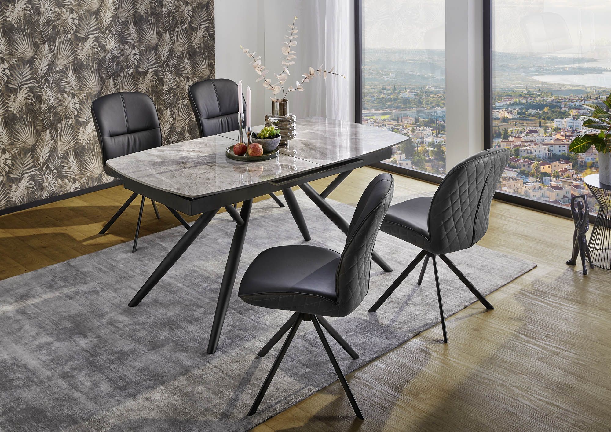 Revêtement : Assise et face avant du dossier en cuir véritable ton noir, face arrière du dossier en microfibre ton anthracite 100% polyester