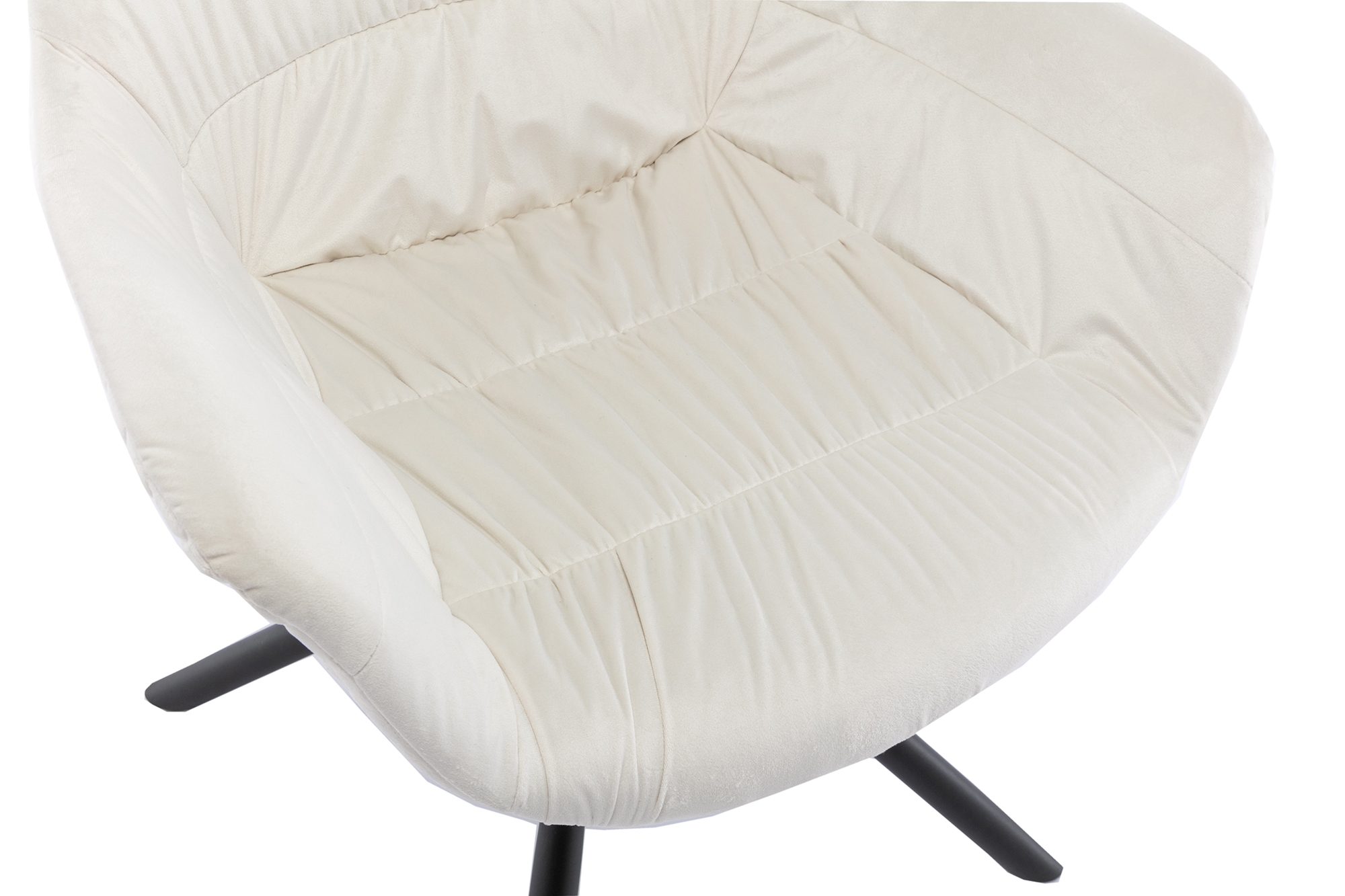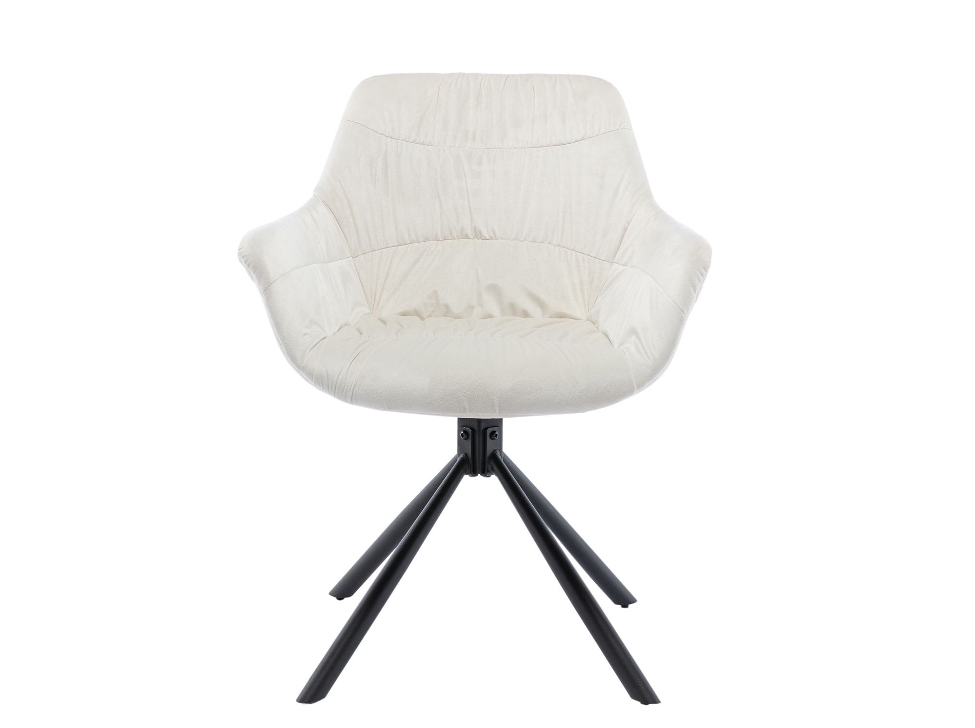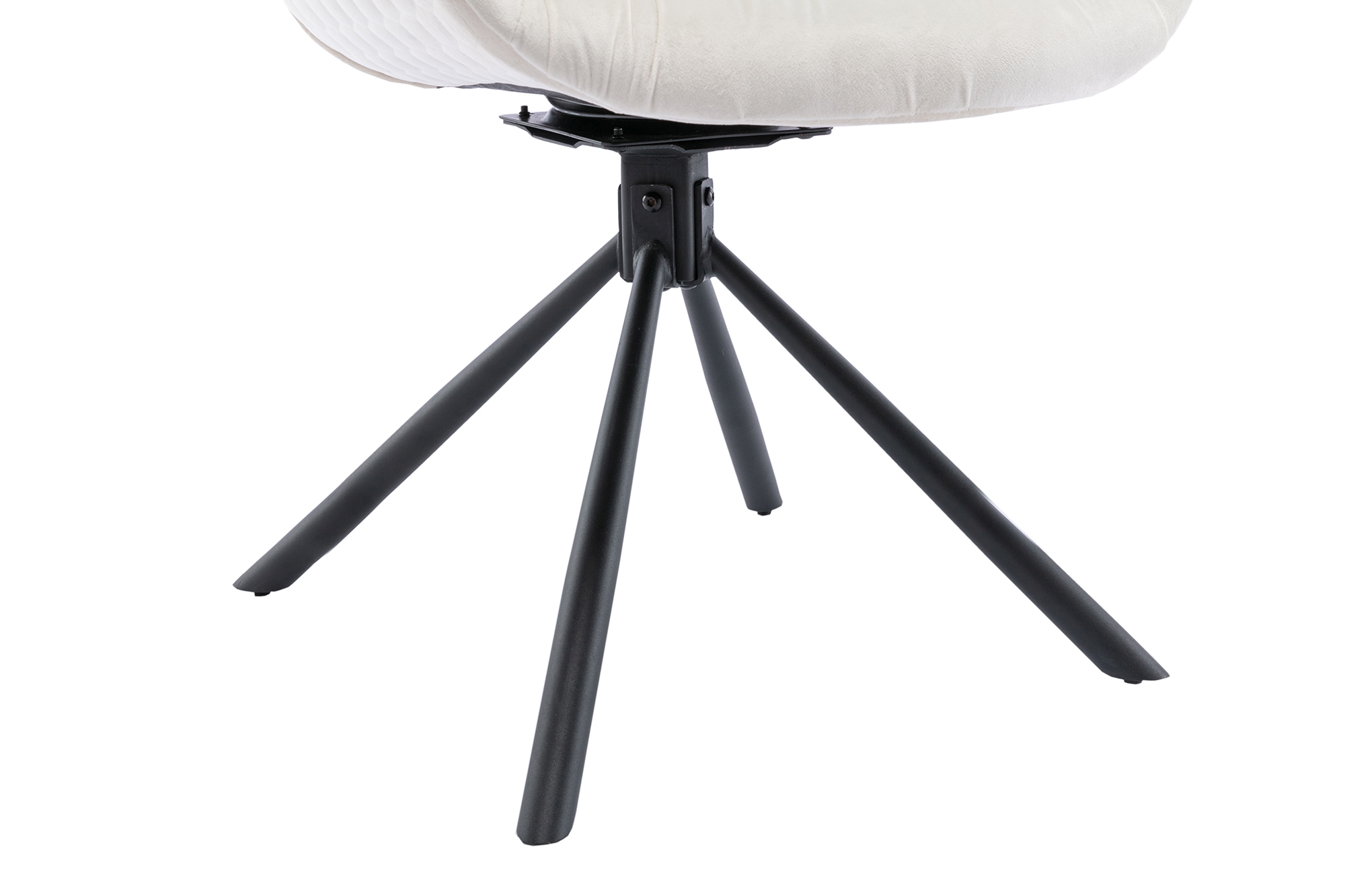 La chaise à accoudoirs tendance séduit par son revêtement en tissu aspect velours et son piètement avec fonction pivotante à 360° en métal finition époxy ton noir. Le piètement garantit une excellente stabilité et s’harmonise parfaitement avec le revêtement de la chaise. Grâce à la coque confortable et aux accoudoirs, vous bénéficierez d'un confort d'assise exceptionnel. Les surpiqûres horizontales au niveau de l'assise et du dossier ainsi que l'aspect nid d’abeilles dans le dos attireront tous les regards dans la pièce. Grâce à sa forme originale, cette chaise rembourrée peut aussi être utilisée comme chaise de réunion. Peu importe où il sera placé, vous allez adorer ce siège confortable… et vos invités aussi vont le plébisciter !