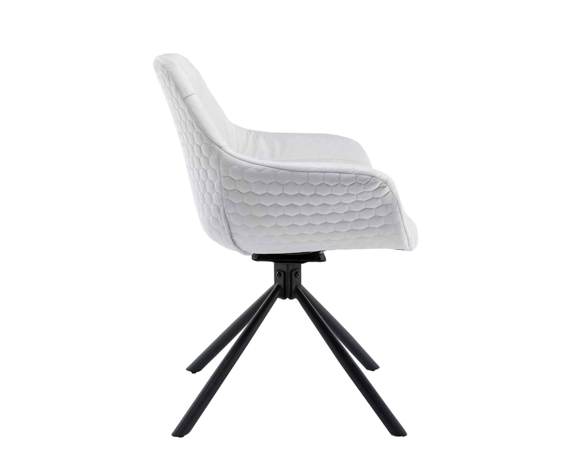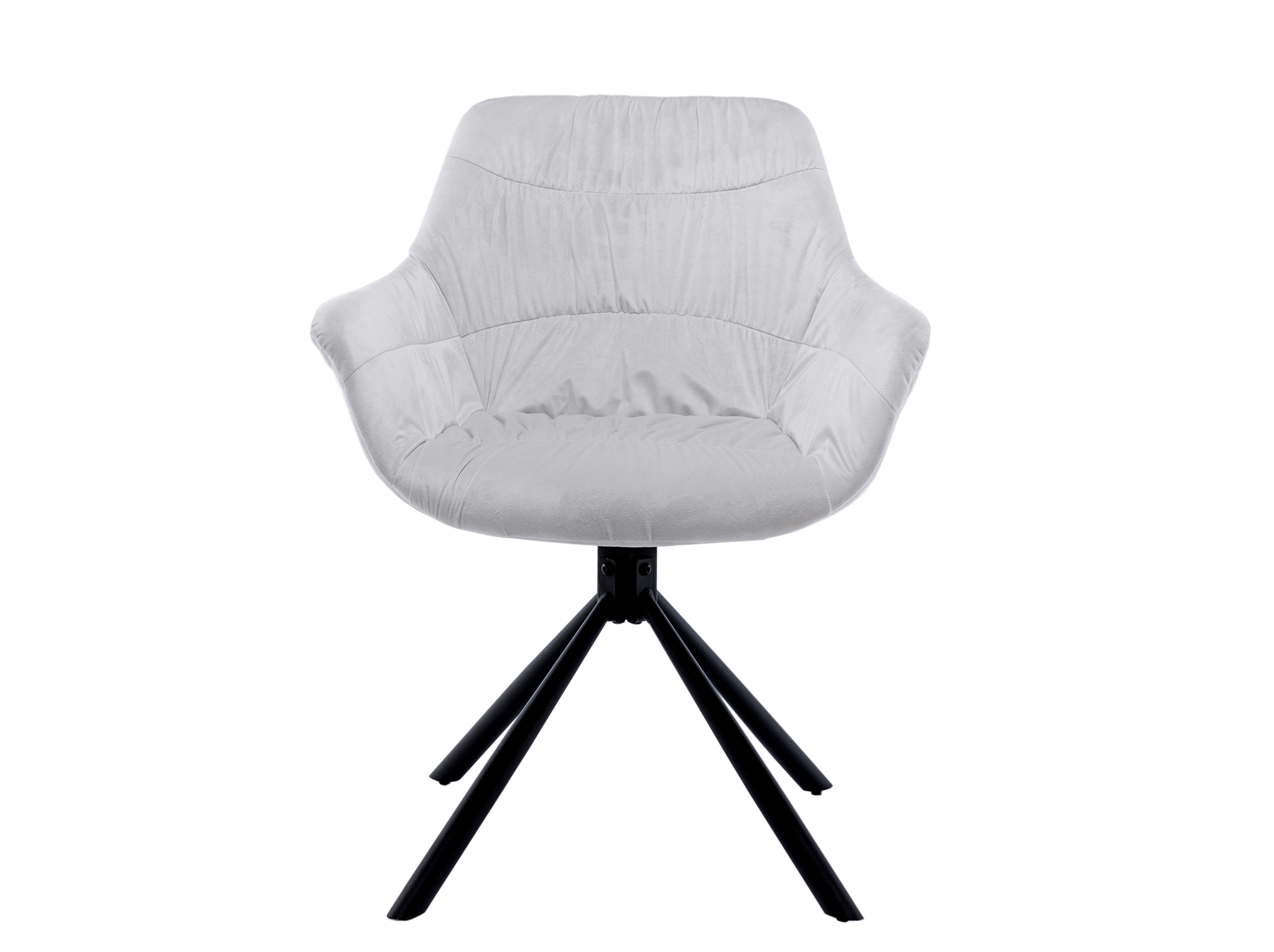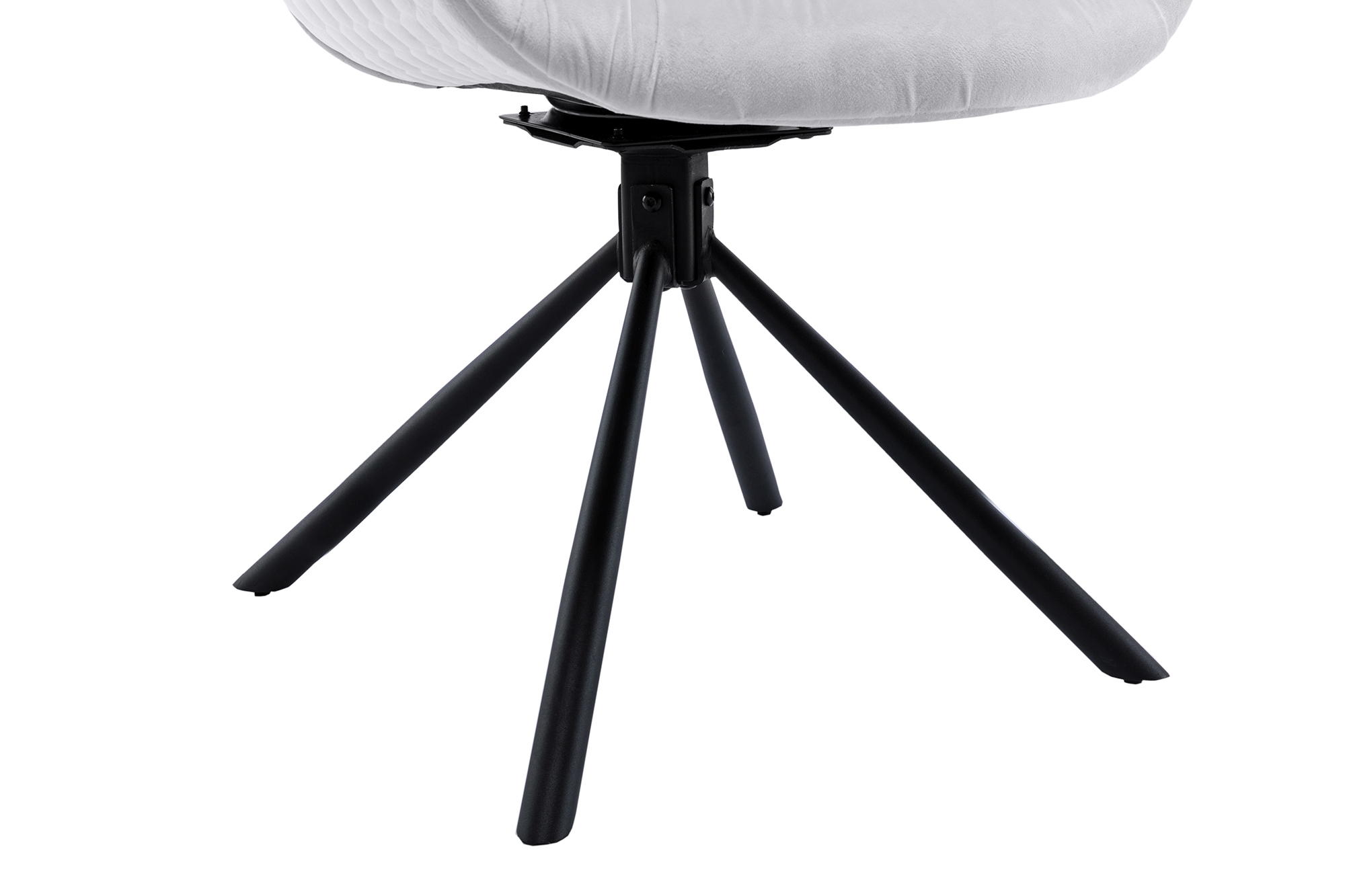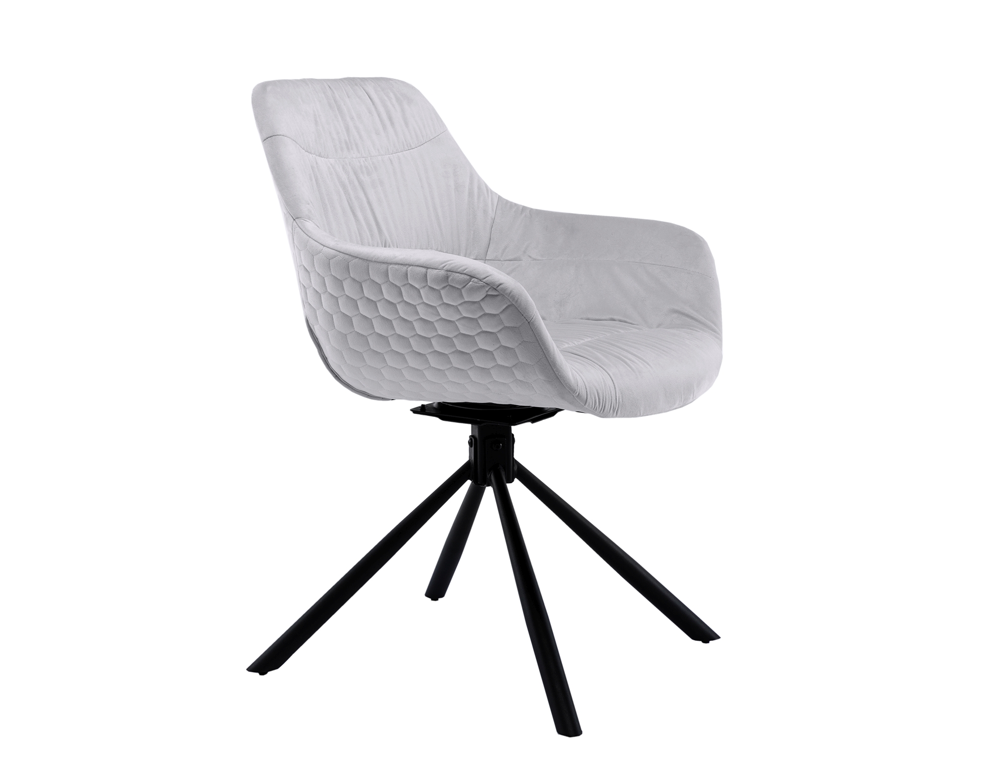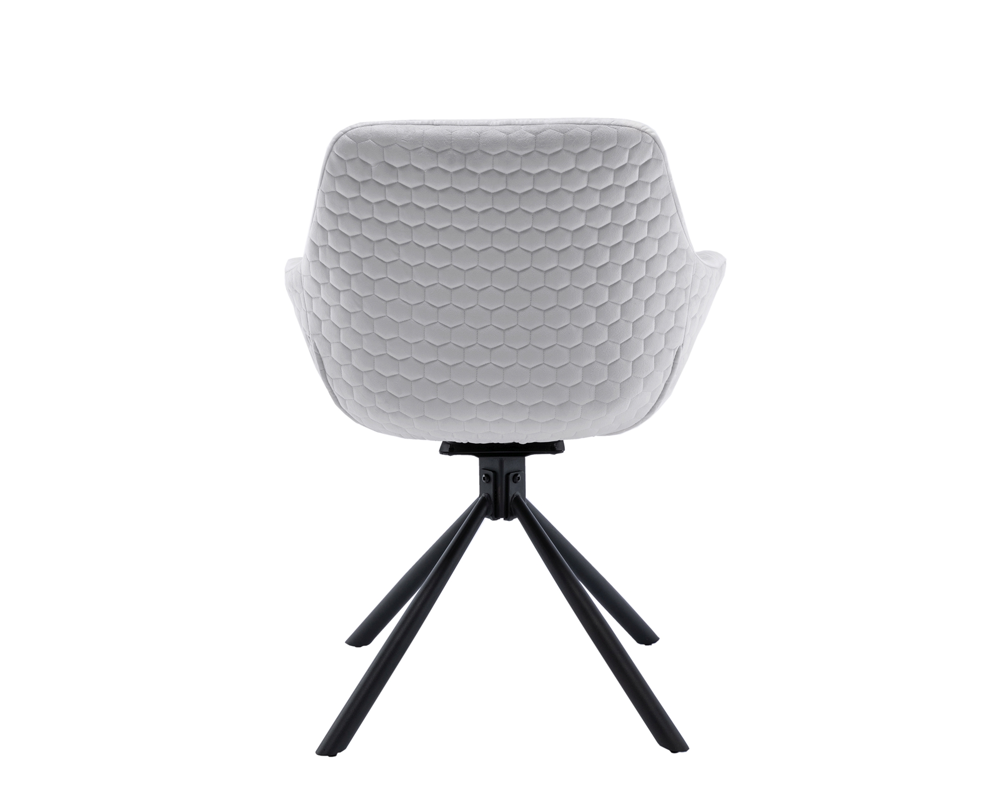 La chaise à accoudoirs tendance séduit par son revêtement en tissu aspect velours et son piètement avec fonction pivotante à 360° en métal finition époxy ton noir. Le piètement garantit une excellente stabilité et s’harmonise parfaitement avec le revêtement de la chaise. Grâce à la coque confortable et aux accoudoirs, vous bénéficierez d'un confort d'assise exceptionnel. Les surpiqûres horizontales au niveau de l'assise et du dossier ainsi que l'aspect nid d’abeilles dans le dos attireront tous les regards dans la pièce. Grâce à sa forme originale, cette chaise rembourrée peut aussi être utilisée comme chaise de réunion. Peu importe où il sera placé, vous allez adorer ce siège confortable… et vos invités aussi vont le plébisciter !