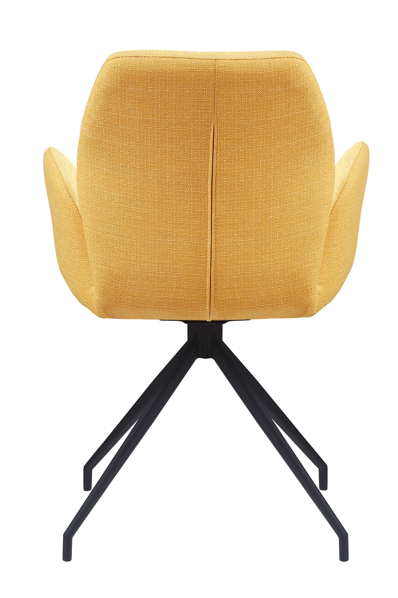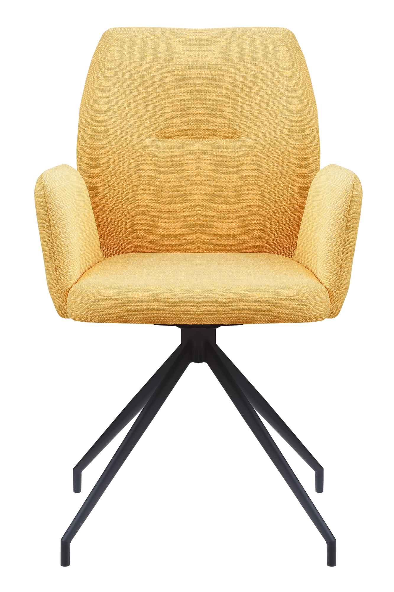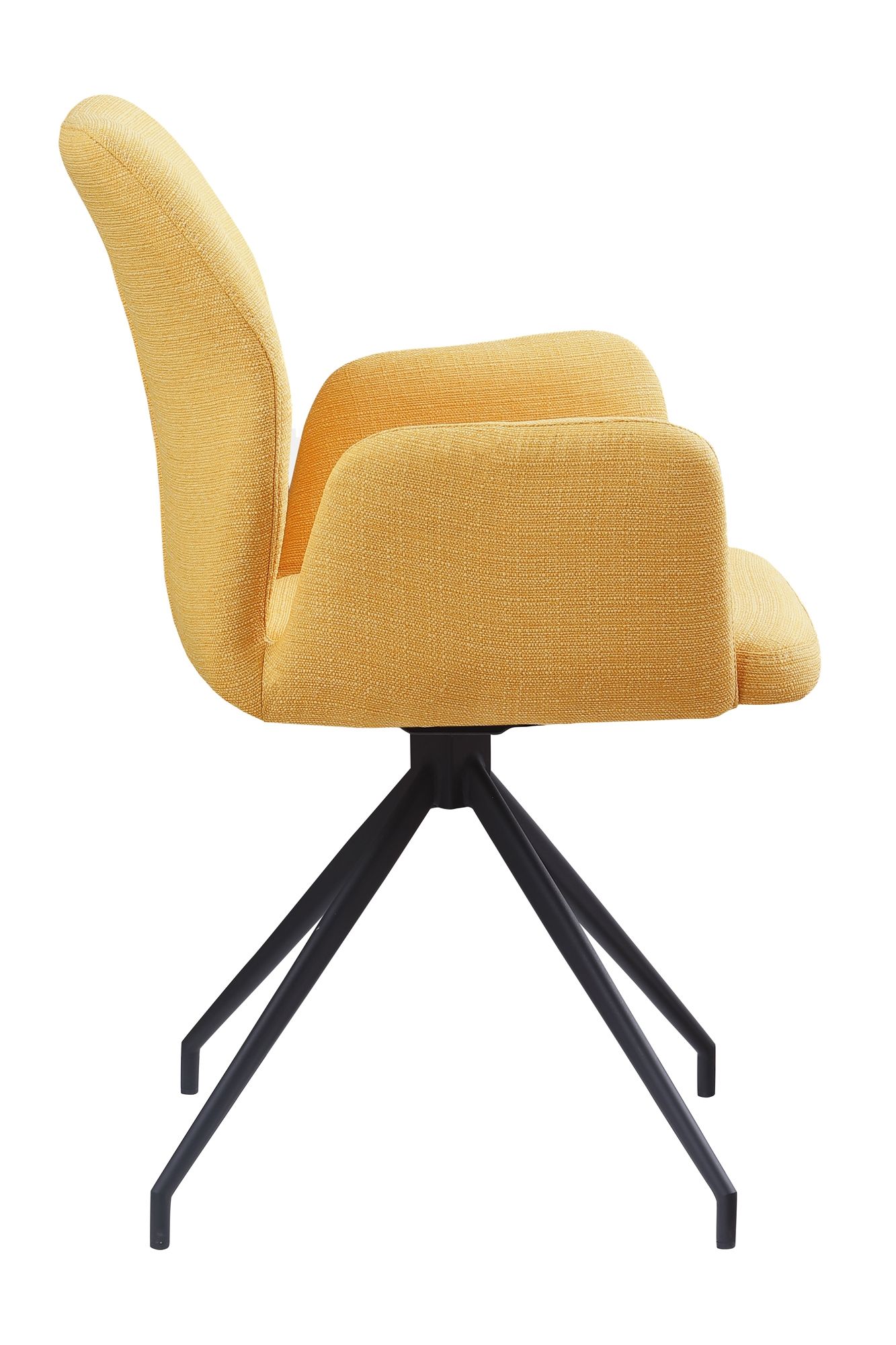 Un modèle qui séduit par son aspect tendance et l'excellente qualité des finitions : grâce à son design moderne, la chaise à accoudoirs pivotante à 180° s'intégrera facilement dans votre intérieur. Elle peut en effet s'utiliser de façon polyvalente comme chaise de salle à manger, pour la coiffeuse ou le télétravail. La chaise rembourrée séduit par ses formes tendance avec un dossier ergonomique pourvu d'une couture décorative, une assise droite et des accoudoirs légèrement évasés. Elle dispose d'un garnissage agréable pour un excellent confort d'assise. Le siège est revêtu d'un élégant tissu texturé robuste proposé dans de nombreux coloris unis au choix. Le piètement design tout en finesse en métal finition époxy est un autre point fort de cette chaise. Grâce au mécanisme pivotant intégré, le fauteuil permet une assise dynamique.